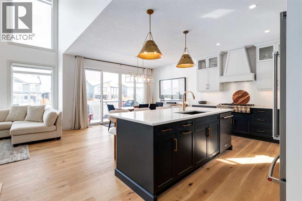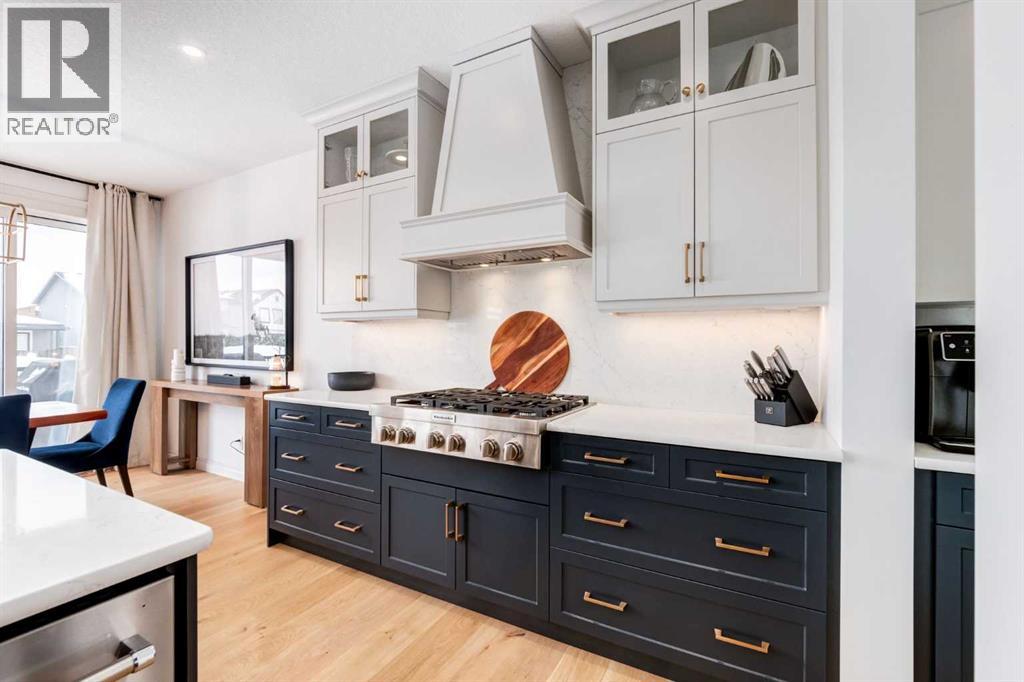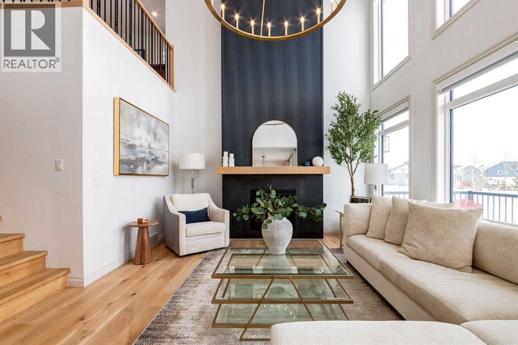 Welcome to this exceptional estate home in the sought after community of Rockland Park, masterfully built by Morrison Homes, offering a perfect blend of luxury and functionality and backing onto greenspace for added privacy and a serene setting. From the moment you step inside, you are welcomed by rich hardwood floors that flow throughout the main level, setting the tone for the home’s exceptional craftsmanship. A spacious office/den, enclosed by striking double glass doors, provides the perfect space to work or unwind. As you continue, the home opens dramatically into a breathtaking open-to-above living room, where soaring ceilings and a stunning floor-to-ceiling fireplace with custom panelling create a true showpiece. Expansive windows flood the space with natural light, while motorized blinds throughout add an extra layer of comfort and convenience. The beautifully appointed kitchen is truly the heart of the home, showcasing custom cabinetry with elegant gold hardware and upgraded stainless steel appliances, perfect for the chef in the family. A custom wood hood fan serves as a striking focal point, while the butler’s pantry, complete with a beverage fridge, and a separate walk-in pantry offer exceptional storage and functionality, adding both style and convenience. The space flows effortlessly into the spacious dining area and out onto the full width deck, creating the perfect setting to gather with family and friends. A functional mudroom with built-in lockers and a 2-piece powder room featuring premium finishes completes the main level. Upstairs features a bright and versatile bonus room open to below, a well designed laundry room with a folding counter, two generously sized secondary bedrooms, and a luxurious primary retreat complete with a spa-inspired ensuite and a custom walk-in closet with built-ins. The fully finished basement further expands your living space, offering a theatre area, a wet bar complete with sink and fridge and an additional bedroom or gym, featuring a large walk-in closet, upgraded electrical, and gym-ready flooring. Additional highlights include dual furnaces and two air conditioning units for year-round comfort. As a standout feature, this home was selected by Morrison Homes to be professionally photographed for the BILD Awards, an acknowledgment of its exceptional design and craftsmanship. This is a rare opportunity to own a truly turn-key, highly upgraded estate home, still under warranty, in one of Calgary’s most desirable new communities. OPEN HOUSE SATURDAY & SUNDAY, APRIL 25TH & 26TH FROM 1-4PM! (id:63190)