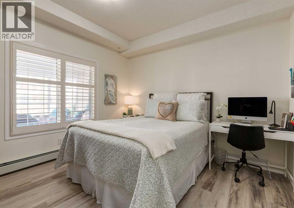 Rare opportunity to own in the highly sought-after Sierras of Tuscany, a vibrant 40+ adult living community offering a true resort-style lifestyle. This immaculate one-bedroom unit presents an exceptional entry price point and the convenience of condo living at its finest—no need to leave the building with the incredible amenities at your doorstep. The bright, open-concept layout features luxury vinyl plank flooring throughout, California shutters, and a cozy corner fireplace that anchors the living space. The well-designed kitchen flows seamlessly into the dining and living areas, creating an inviting space to relax or entertain. Enjoy year-round use of the fully enclosed balcony/sunroom, perfect for morning coffee or quiet evenings. The spacious primary bedroom includes a walk-in closet, while the in-suite laundry and storage room add everyday functionality. Heated underground parking and a large separate storage unit are also included. This well-managed building is known for its unmatched amenities, including an indoor saltwater pool and hot tub, fitness centre, bowling alley, billiards and games room, movie theatre, library, craft and woodworking rooms, Panorama Room/ballroom/party room, guest suites, and even a car wash. Ideally located just steps to green space and the Tuscany LRT station, with quick access to Crowchild Trail and Stoney Trail, plus nearby shopping and amenities. Condo fees include all utilities—heat, water, sewer, and electricity—offering outstanding value and peace of mind. An immaculate, move-in-ready home in one of NW Calgary’s most desirable adult communities—this is a must see. (id:63190)