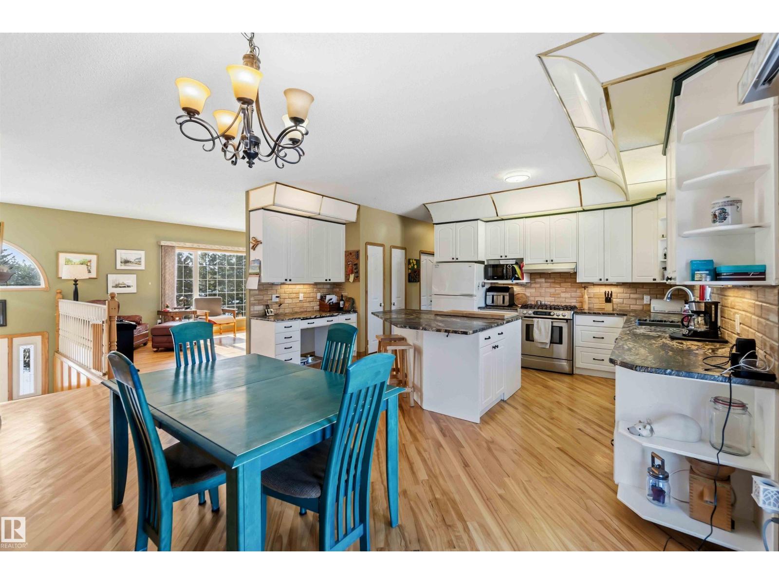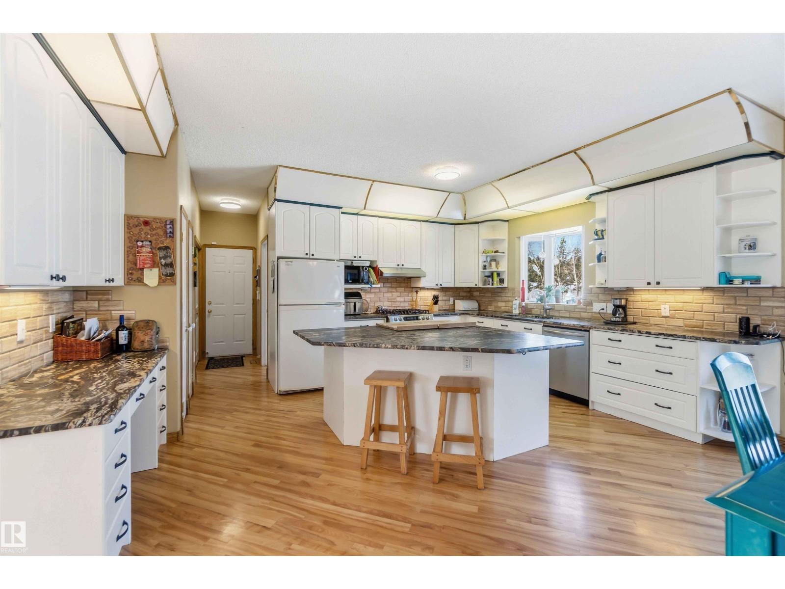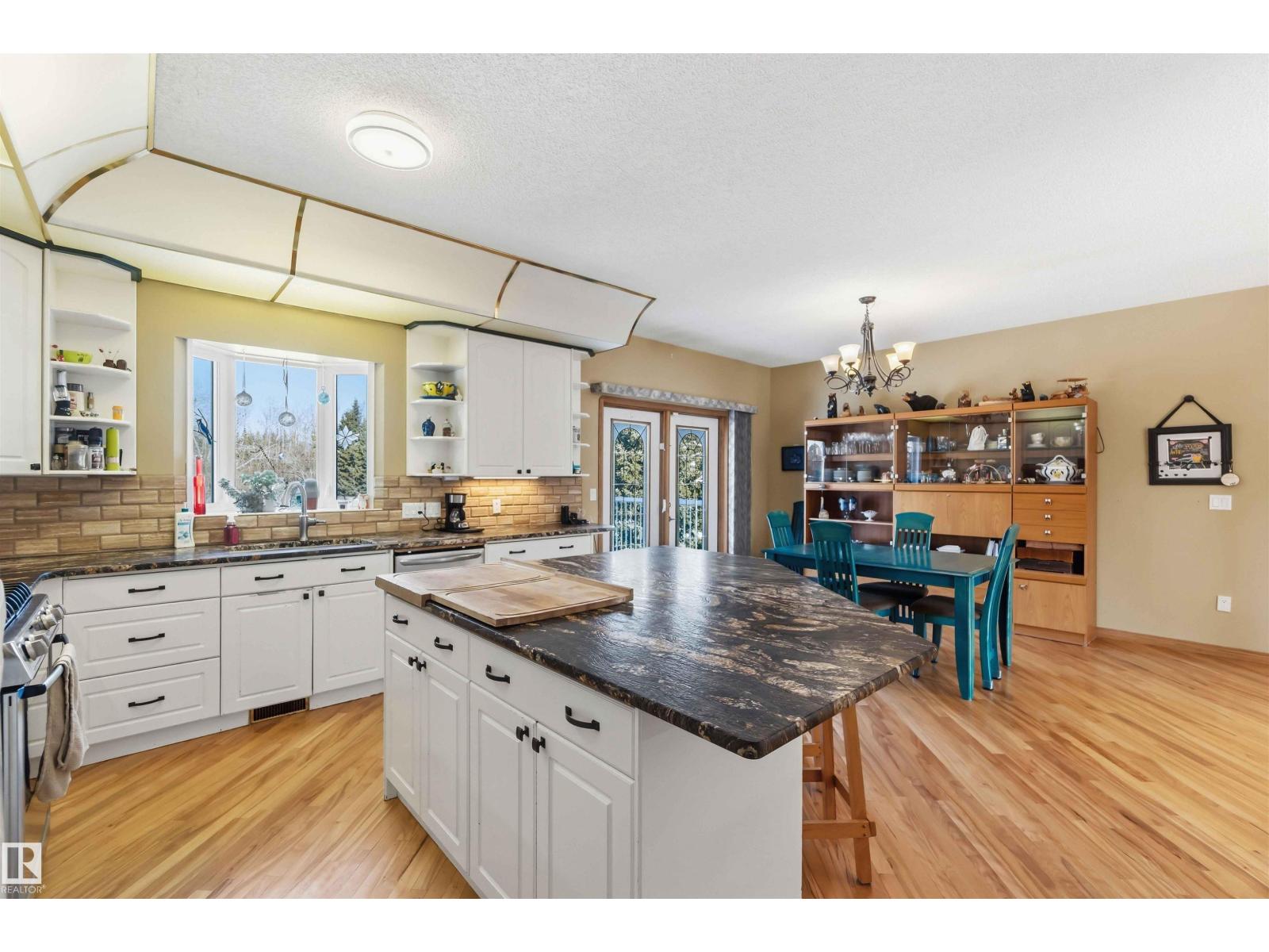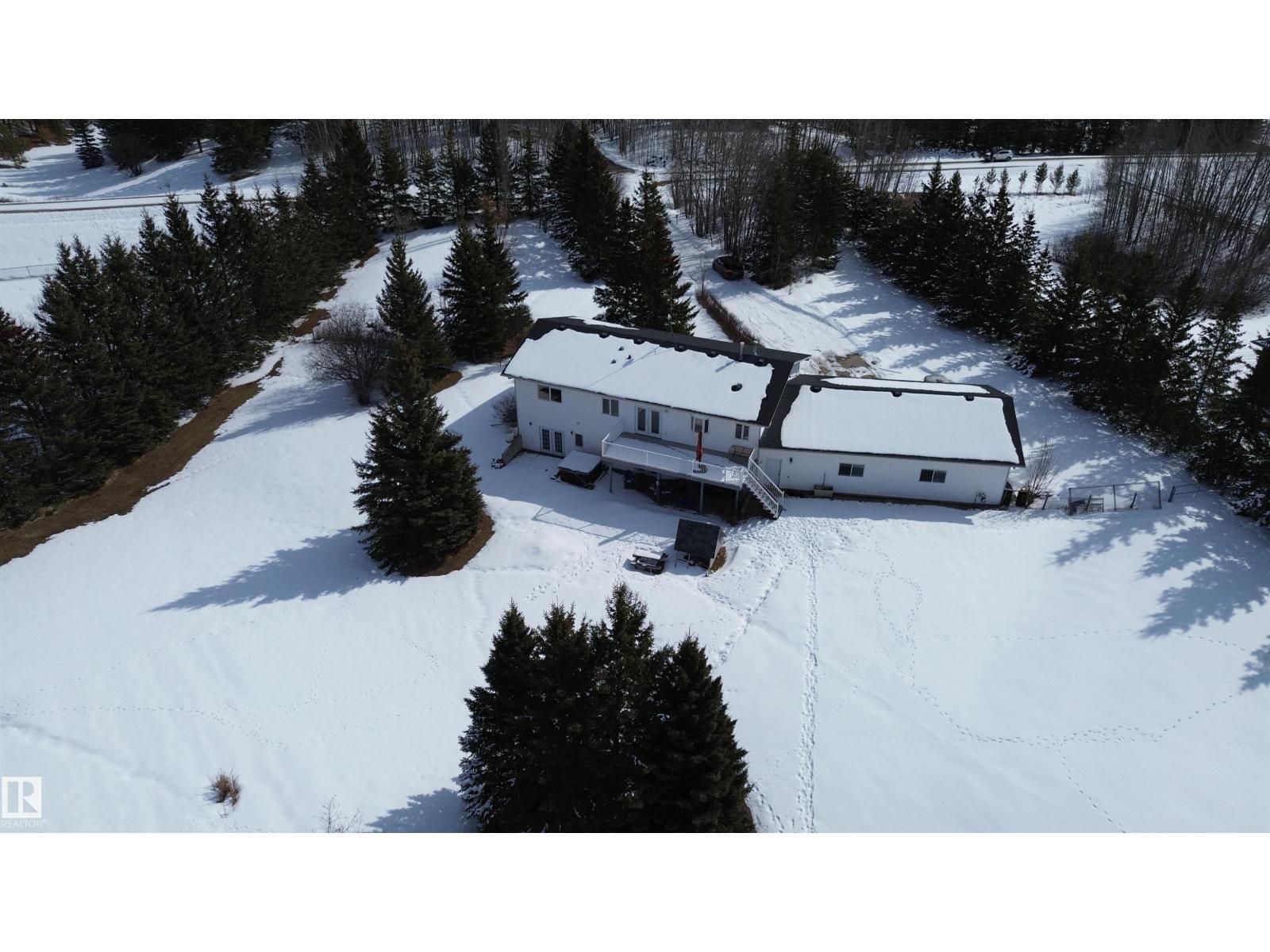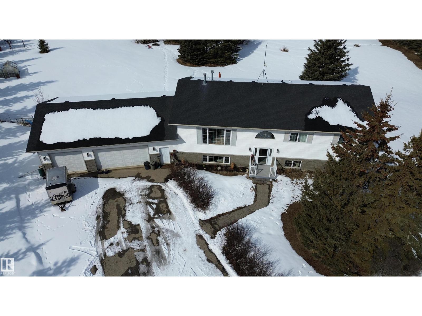 3.19 TREED & PRIVATE ACRES! CUSTOM BUILT WALK-OUT BILEVEL WITH ALMOST 3600 SQ FT OF LIVING SPACE! MASSIVE 45X28' TRIPLE HEATED GARAGE! PAVEMENT RIGHT TO YOUR DOOR! SECONDS FROM STONY PLAIN AND SPRUCE GROVE! WELCOME TO LOT 27 IN WESLAKE ESTATES. THIS INCREDIBLE HOME HAS 6 BEDROOMS, 3 BATHS, AND A WALK-OUT BASEMENT. THE UPGRADED KITCHEN HAS GRANITE LEATHER TEXTURED COUNTERTOPS, CUSTOM CABINETRY, GAS RANGE, BIRCH HARDWOOD FLOORS, MARBLE BACKSPLASH, AND A SINGLE LEVEL ISLAND. DINING AREA IS OPEN TO KITCHEN WITH GARDEN DOOR ACCESS TO 12X30' REAR DECK. LIVING AREA HAS A GAS FIREPLACE AND 9' CEILINGS. HOME HAS MAIN FLOOR LAUNDRY WITH SINK. MASSIVE PRIMARY BEDROOM HAS A WALK-IN CLOSET, ENSUITE IS 4 PIECE WITH JETTED TUB AND SHOWER. MAIN FLOOR ALSO HAS 2 MORE BEDROOMS AND A FULL BATH. WALK-OUT BASEMENT HAS SLAB HEATING, A HUGE REC ROOM, 2ND KITCHEN, OFFICE, 3 BEDS, AND A BATH. HOME HAS AC, DUAL SEPTIC FIELDS, WELL WATER, POWERED RV PAD AND GREENHOUSE. YARD HAS A FIREPIT AREA AND CUSTOM MASONARY PIZZA OVEN (id:63190)