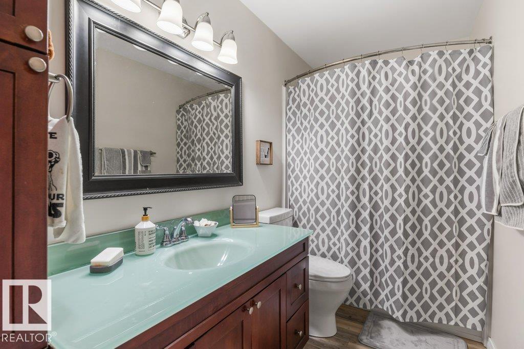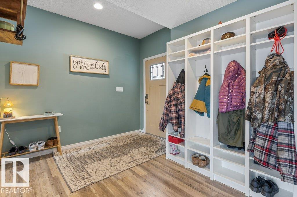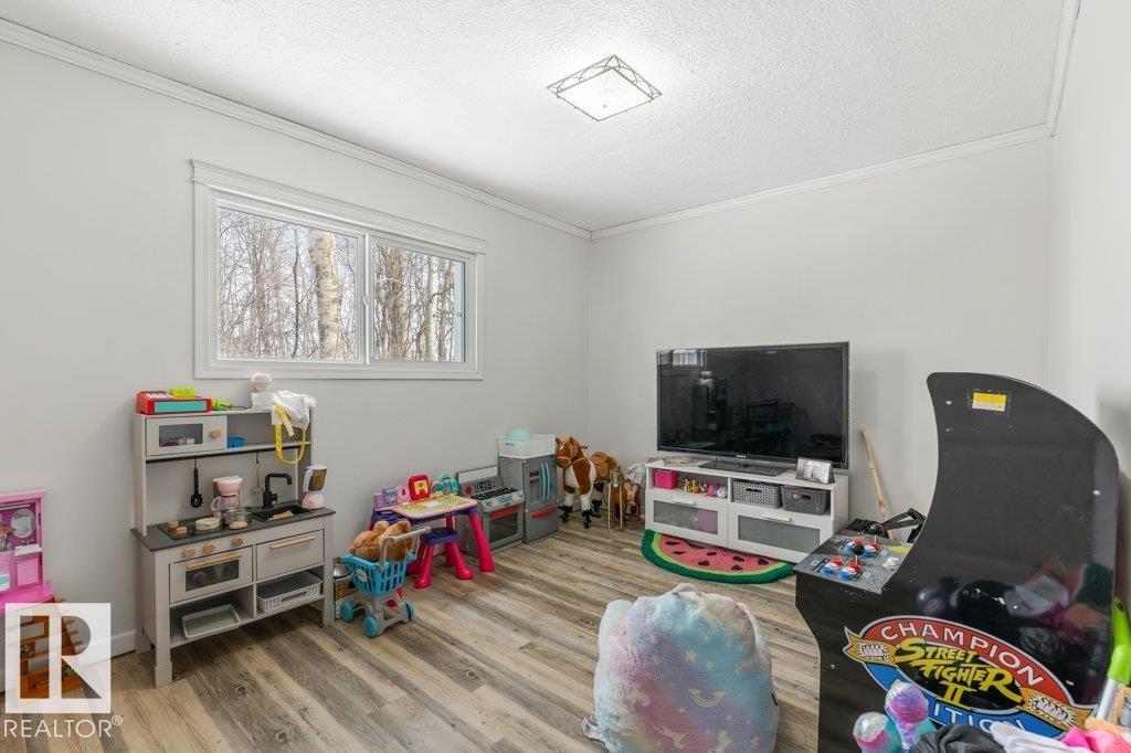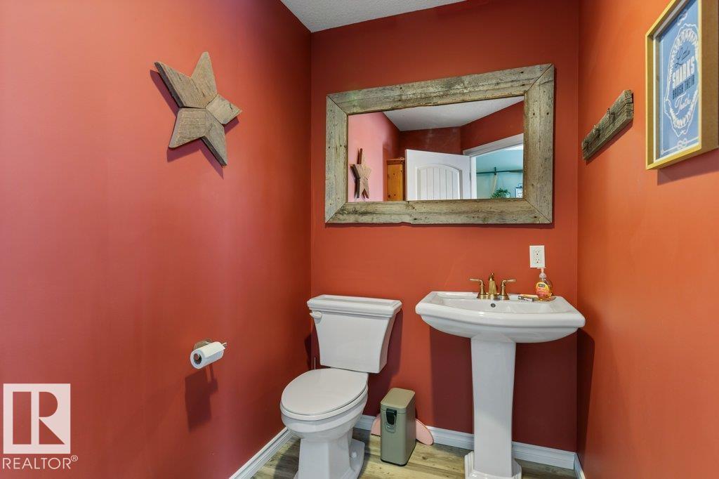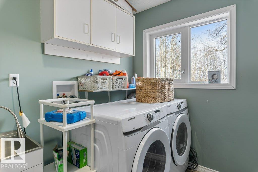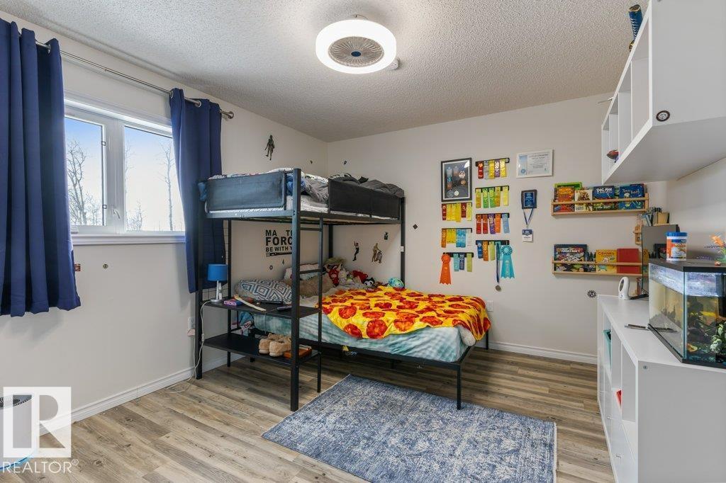 Fabulous, private 3.14 acre over 2400 sq. ft. 2 storey split with triple attached garage and huge SHOP. Just 4 minutes north of Highway 37 and only 30 minutes to Edmonton. This beautifully renovated 5-bedroom home offers 2 bdrms on the main and 3 upstairs, 2.5 baths , and convenient upper-level laundry. Upgrades include newer flooring, cabinets, windows, metal roof, and decks. The spacious primary suite features a private balcony and 4 pce ensuite. The original bungalow was taken to the studs and expanded in 2017 with a full second storey and triple attached heated garage with in-floor heat and 2 HE hydronic heaters. The impressive shop is equipped with Sol-Ray radiant tube heating and thick 7–8 inch concrete floors. The home and garage offer 200 amp service, with 100 amp to the shop. The treed yard provides privacy and plenty of space for family living and outdoor enjoyment. Exceptional country living at its finest! (id:63190)