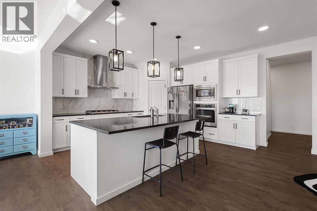 WALKOUT BASEMENT | FACING THE PARK. Welcome to this beautifully designed home in the highly sought-after community of Rockland Park, offering over 3,200 sq ft of thoughtfully planned living space, including a fully finished walkout basement. Perfectly positioned facing a park, this home offers both scenic views and enhanced privacy, while the south-facing backyard allows natural light to pour in throughout the day.The main floor showcases a spacious and functional layout, anchored by a large kitchen featuring ample cabinetry, a well size pantry, and seamless flow into the dining and living areas. The open-concept design is ideal for both everyday living and entertaining, complemented by expansive windows and access to the elevated balcony.Upstairs, you’ll find a well-balanced layout with a generous primary retreat complete with a 5-piece ensuite and walk-in closet, along with two well-sized secondary bedrooms. A bright bonus/family room open to below adds an airy, modern touch, while the convenient upper-level laundry enhances everyday functionality.The fully finished walkout basement extends your living space with a large recreation room, full bathroom, and direct access to the backyard, making it perfect for guests, a home gym, or additional entertainment space.Thoughtfully equipped for the future, this home includes valuable upgrades such as solar panel conduits, A/C rough-in, and a water softener.Combining an exceptional location, smart layout, and long-term efficiency, this is a rare opportunity to own a move-in ready home in one of Calgary’s most exciting and growing communities. Schedule a private showing today and come see it before it’s too late. Some photos are virtually staged. (id:63190)