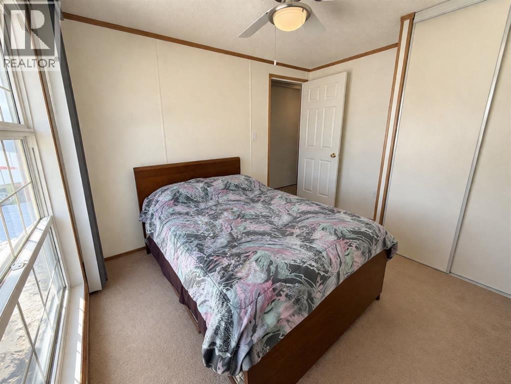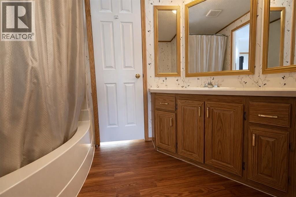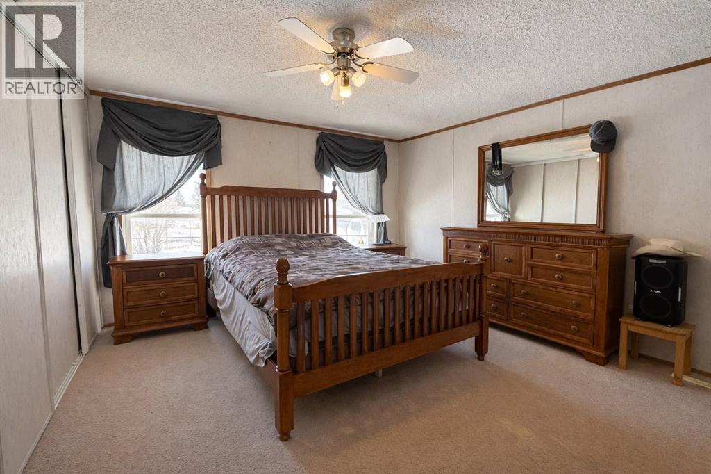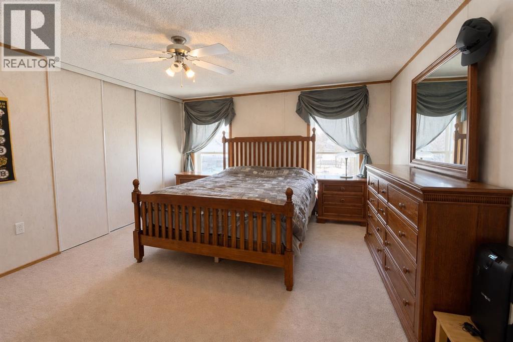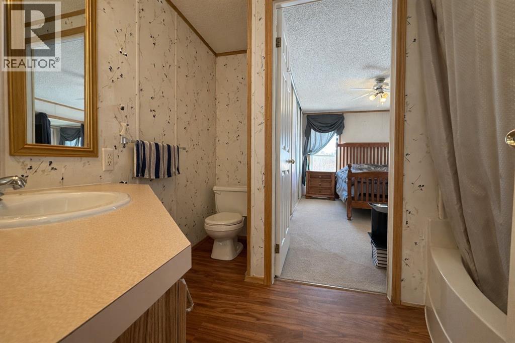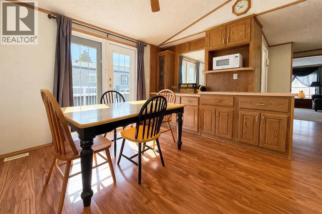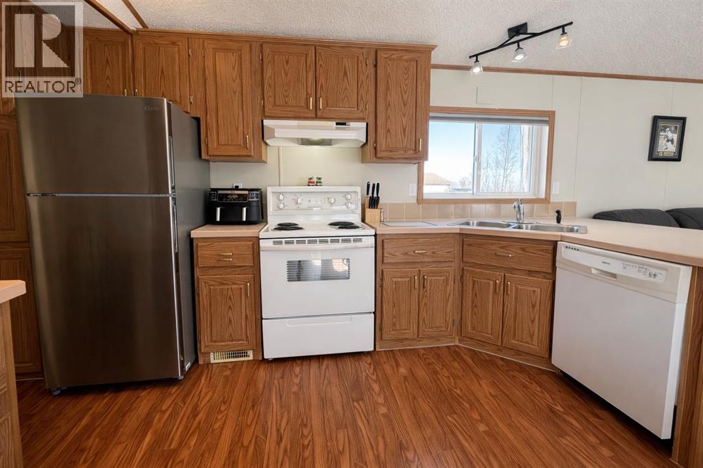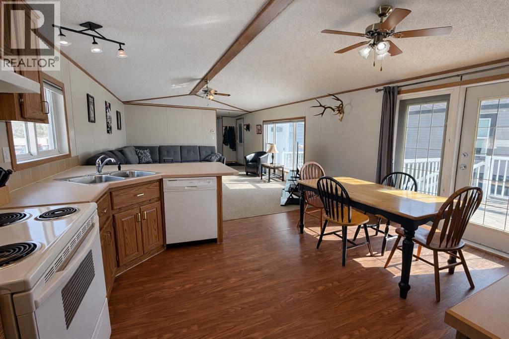 Welcome to this well-maintained mobile home in the quiet community of Edgerton, ideally located directly across from a park and playground with convenient sidewalks right out front. This property offers excellent functionality with a spacious heated front addition that serves as a dual-entry porch—perfect for coats, boots, and extra storage, keeping your main living space clean and organized year-round. Step inside to an inviting open-concept layout featuring vaulted ceilings that create a bright and airy feel throughout. The large living room is filled with natural light from a generous south-facing window and flows seamlessly into the dining area and kitchen, where you’ll find ample cupboard and counter space for everyday living. Patio doors off the dinning room provide direct access to the deck, making it easy to enjoy outdoor living. The home features a thoughtful layout with a rear entry that includes laundry and access to the back deck. The primary bedroom is privately situated and offers convenient access to a four-piece bathroom—creating a semi-ensuite feel—along with two windows that bring in plenty of natural light. Two additional bedrooms provide flexibility for family, guests, or a home office, including one with an oversized window that enhances the bright and welcoming atmosphere. A second four-piece bathroom serves as the main/guest bath. Outside, you’ll appreciate the aluminum-railed decks for low-maintenance enjoyment, as well as a rear parking pad with alley access for added convenience. A great opportunity for affordable living in a family-friendly location—just steps from green space and outdoor amenities. (id:63190)