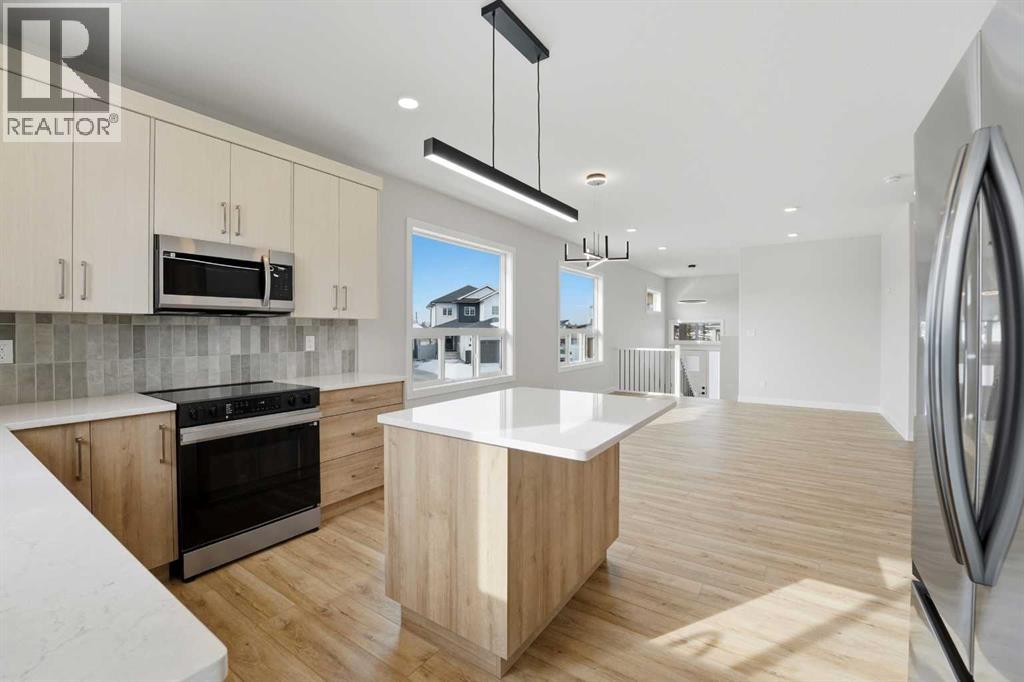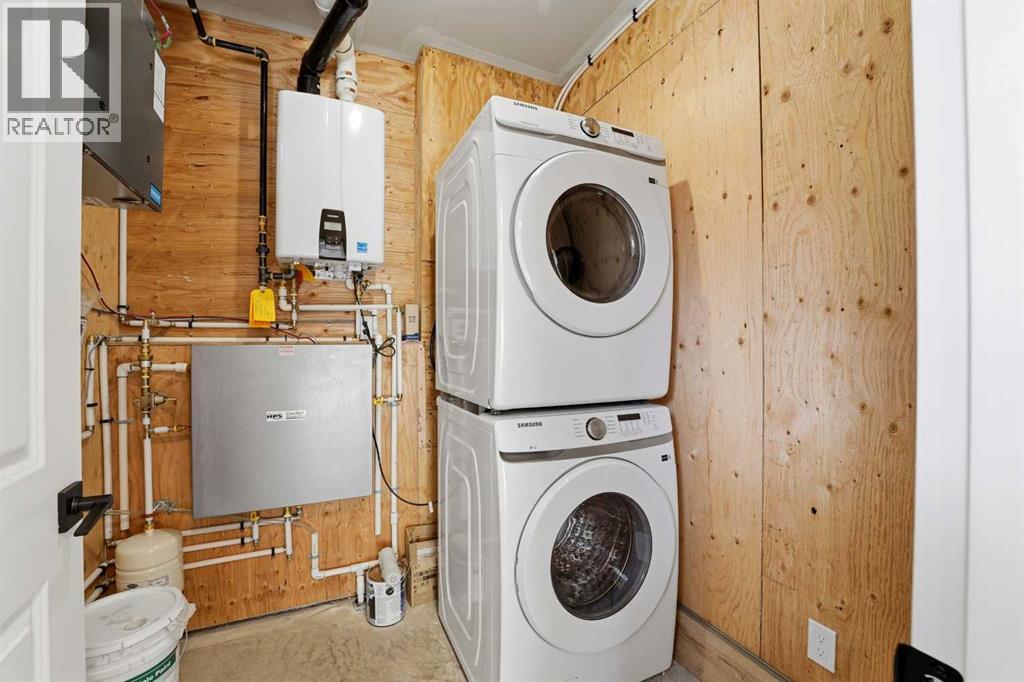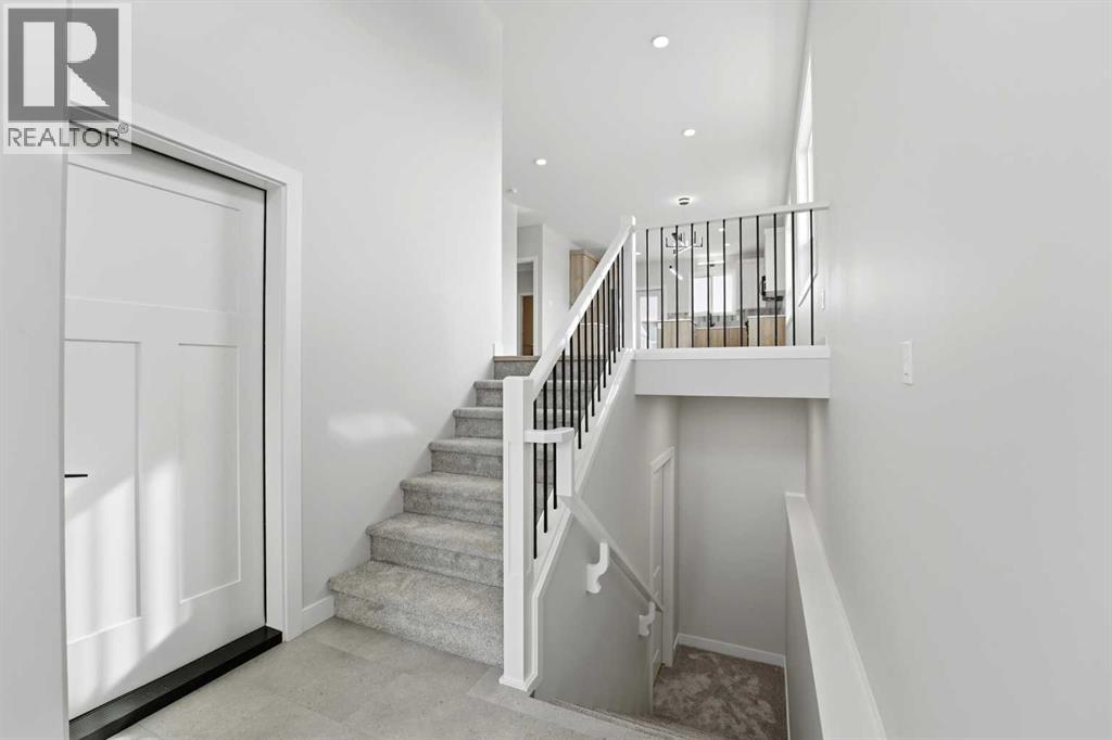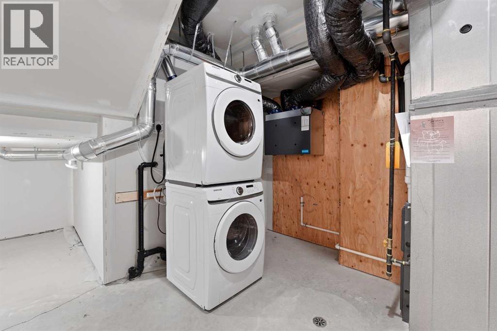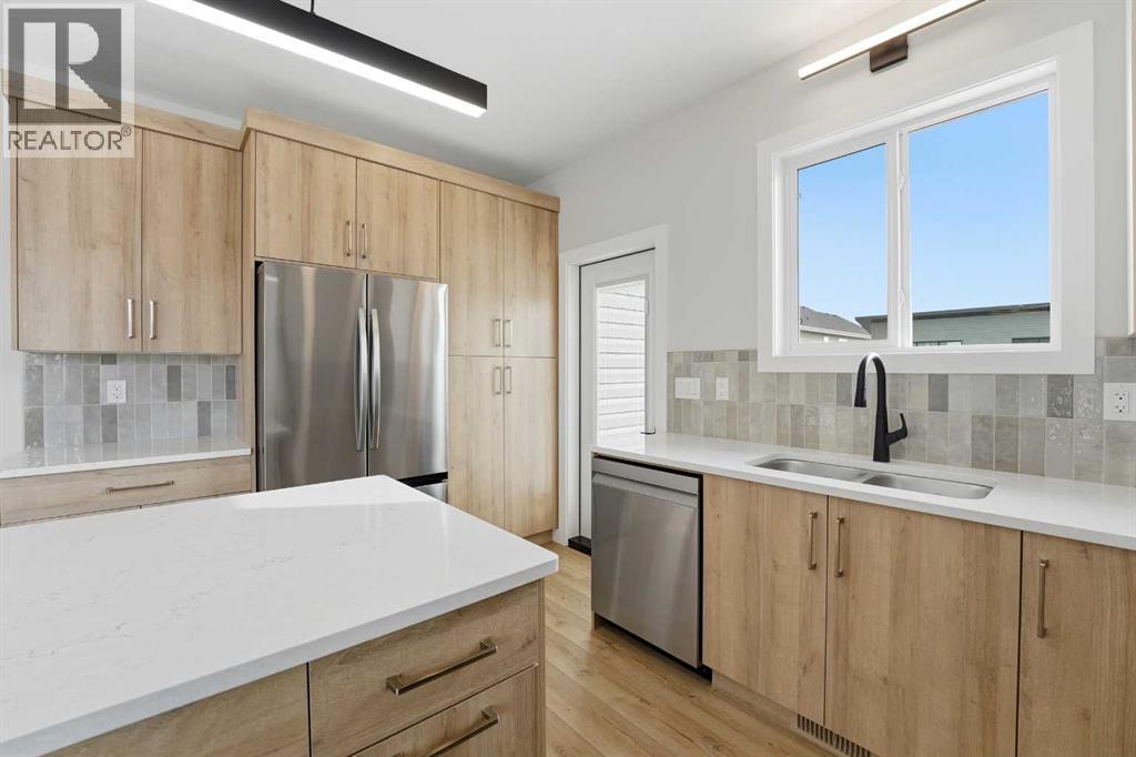 A brand new, Larkaun Homes legally suited house with a front attached double car garage in Evergreen! The front entryway greets you with luxury vinyl plank tile overlooking the wrought iron railings. The open style floor plan features luxury vinyl plank flooring throughout the living room, kitchen and dining room. Two toned kitchen cabinets are accented by crown mouldings, full tile backsplash, pot/pan drawers, stainless steel appliances, quartz countertops, an eating bar island and a patio door with built in blinds to moisture shield upper deck with aluminum railings. There are three bedrooms on the main floor. The king sized primary bedroom has a walk in closet and a 3 piece ensuite with a large glass door shower. The upper suite has its own laundry area in the basement. Enter through the basement into the fully contained suite. There is a large front entryway, an open style floor plan. The kitchen features crown mouldings, full tile backsplash, stainless steel appliances and a pantry. There are two additional bedrooms, a 4 piece bathroom and a laundry area in the utility room. All warmed by underfloor heat. 9' ceilings upstairs and downstairs. The backyard has a two car gravel parking pad. Located in desirable Evergreen, within walking distance to the park and path system. (id:63190)