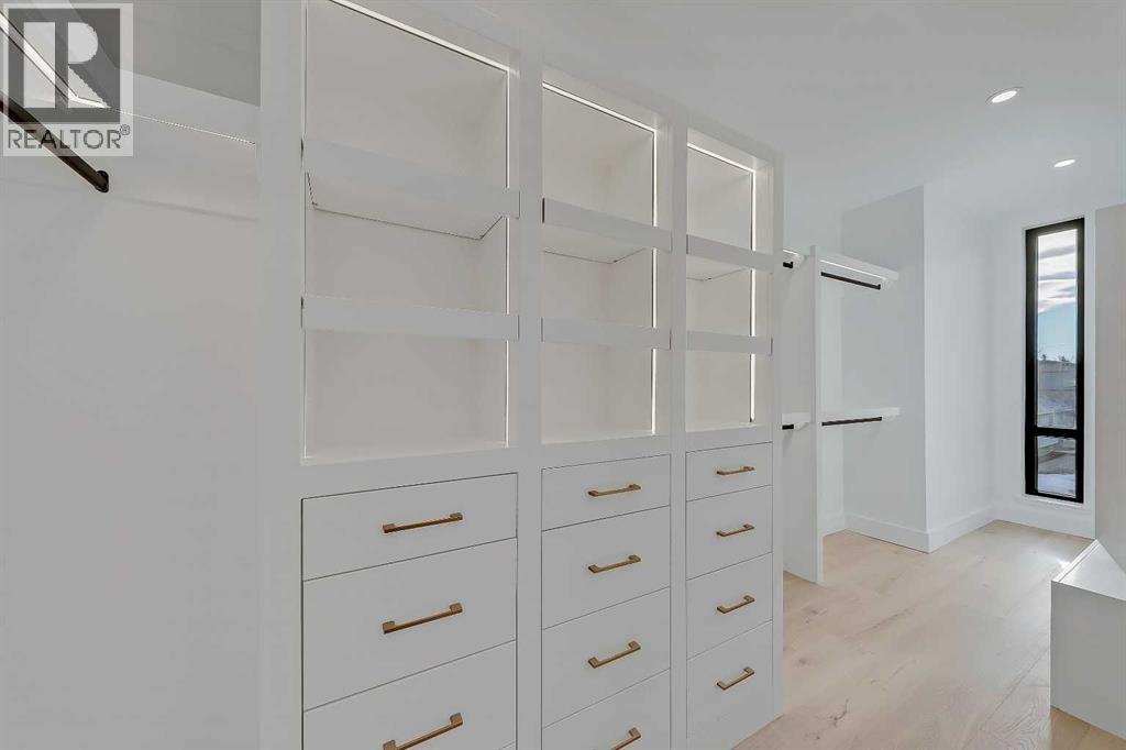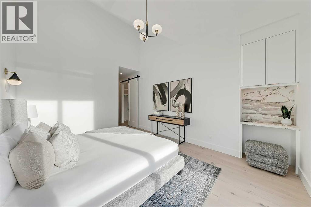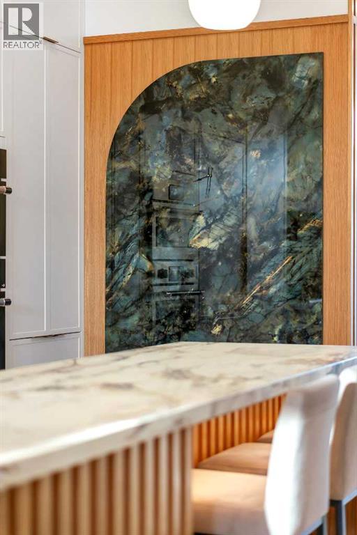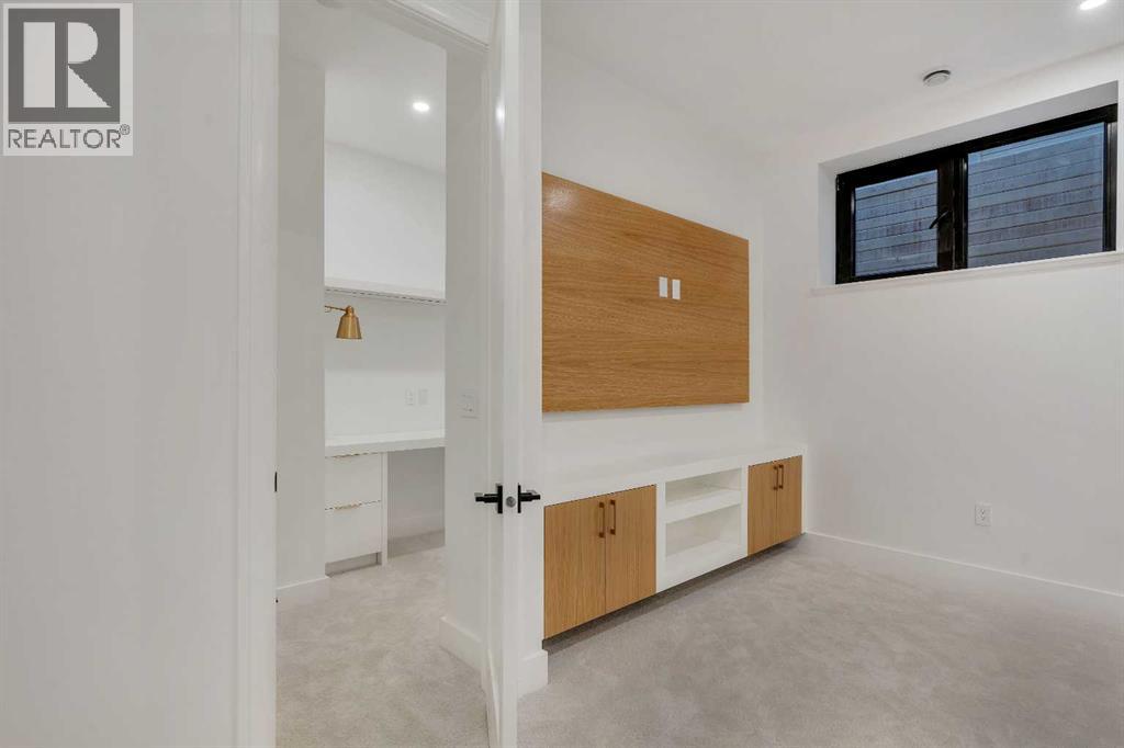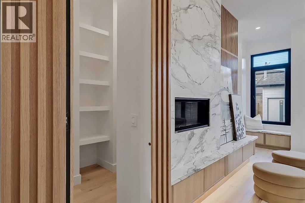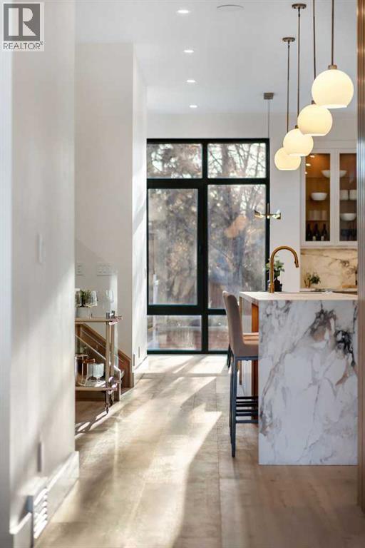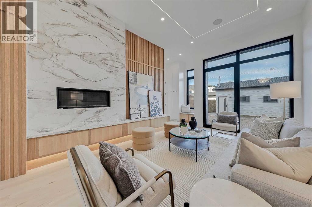 Architectural distinction meets contemporary luxury in this newly built custom home designed by JTA Design and expertly built by Brick Developments. Located in the heart of Inglewood, one of Calgary’s most iconic inner-city communities, the residence features steep-pitched rooflines, timeless brick detailing, and expansive windows that blend modern design with enduring architectural character.Steps from the Bow River pathways and surrounded by Inglewood’s renowned shops, restaurants, music venues, and breweries, the location offers an exceptional inner-city lifestyle.The open-concept main floor is designed for elevated living & entertaining, showcasing high ceilings, wide-plank hardwood flooring, and curated designer finishes. The chef’s kitchen features full-height custom cabinetry, HONED PORCELAIN countertops, backsplash & hood fan, a stunning PORCELAIN feature wall with built in clock, concealed walk-in pantry, waterfall island, and a premium THERMADOR appliance package including gas cooktop, wall oven, integrated refrigerator & dishwasher, and a beverage fridge. The dining area includes a statement chandelier and built-in buffet with wine storage and glass custom cabinetry, while the living room offers a custom media wall, inset gas fireplace, and full-height quartz surround overlooking the private backyard. A mudroom, powder room, and striking full-height GLASS WALL staircase complete the main level.Upstairs, the primary suite features vaulted ceilings, an expansive walk-in closet with custom built-ins, offering refined storage & functionality, and a spa-inspired ensuite with heated floors STEAM SHOWER, dual vanities, and freestanding soaker tub. A spacious laundry room with quartz counter, built-in cabinetry, and sink, along with two additional bedrooms—each offering PRIVATE ENSUITES with HEATED tile floors and walk-in closets nicely round off this level.The fully developed basement features radiant in-floor heating, soaring 10-FT ceilings, and an expan sive recreation area with a built-in media centre. A custom wet bar with sink & microwave drawer, dedicated home gym, fourth bedroom, three-piece bathroom, and a discreet pocket office with built-in workstation complete the level. Outside, the home is professionally landscaped and complemented by a fully finished garage with gas rough-in for a future heater. This is an exceptional opportunity to own a thoughtfully designed architectural home in one of Calgary’s most sought-after inner-city communities. (id:63190)