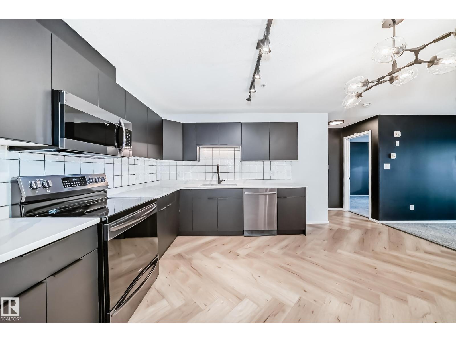 Welcome to this STUNNING, FULLY RENOVATED 2 bed, 2 full bath condo in the Ravines at Hermitage. This condo is COMPLETELY UPDTAED top to bottom with high-end finishes, and a bright open-concept floor plan that offers both style and function. Features include high end lighting fixtures, modern fresh paint colour, and luxury vinyl plank flooring in a striking herringbone pattern. The designer kitchen showcases charcoal appliances, dark modern cabinets, and quartz countertops w/lots of counter space, it's perfect for entertaining. Enjoy the Gorgeous views of the RIVER VALLEY, and quick the access to Hermitage Park’s trails system and green space. Also included is your TITLED UNDERGROUND PARKING and STORAGE CAGE which is ideally located near the elevator. The complex is extremely well managed and feature a social room with a full kitchen, pool table, shuffle board and lounging area with access to a patio that backs onto the ravine . Modern and stylish condo in an excellent location. this is the one! (id:63190)