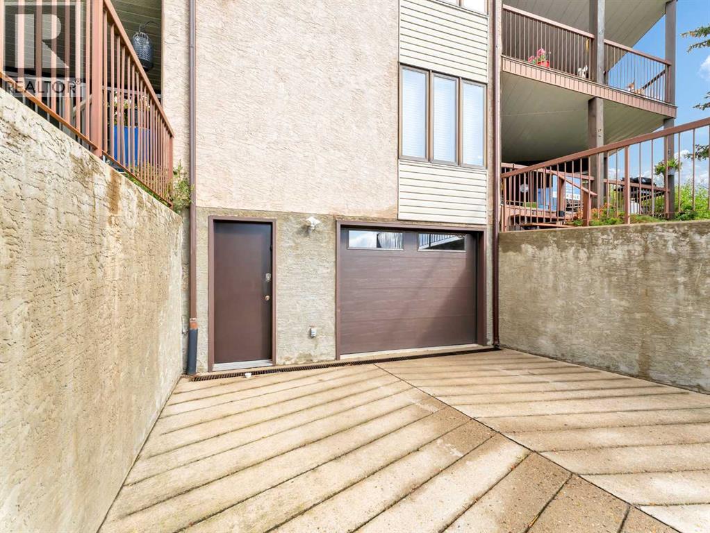 Welcome to this beautifully updated adult-living condo offering over 2,500 sq. ft. of thoughtfully designed living space. Pet-friendly with restrictions and board approval, this home also features an attached garage, private driveway, and its own ground-level entrance. The main floor offers a spacious living room centered around a cozy wood-burning fireplace, with direct access to a private deck overlooking stunning coulee views. Updated vinyl flooring flows into the generous formal dining area, highlighted by a striking feature wall. The renovated eat-in kitchen is both stylish and functional, featuring granite countertops, tile backsplash, maple cabinetry, and newer fingerprint-resistant appliances. Down the hall, you’ll find convenient main floor laundry, a full 4-piece bathroom, and two oversized bedrooms, including the primary suite with a walk-in closet and private 3-piece ensuite. The fully developed lower level provides even more living space with a large family room, two versatile rooms ideal for a home office, gym, or hobby space, abundant storage, and direct access to the attached garage. Move-in ready and designed for easy living, this home offers an ideal blend of comfort, space, and low-maintenance living. Condo fees of $533/month include common area and grounds maintenance, reserve fund contributions, and snow removal. Average utilities are approximately $260/month. (id:63190)