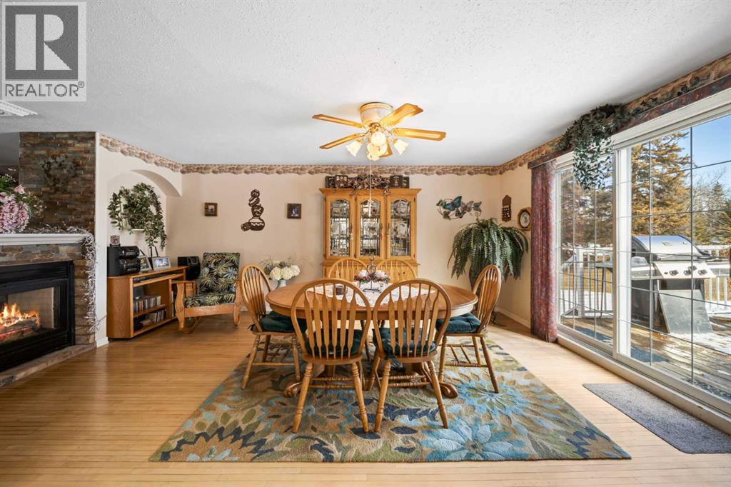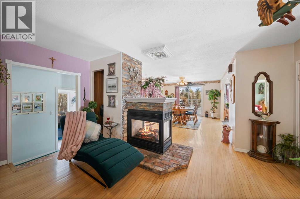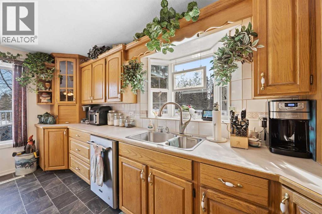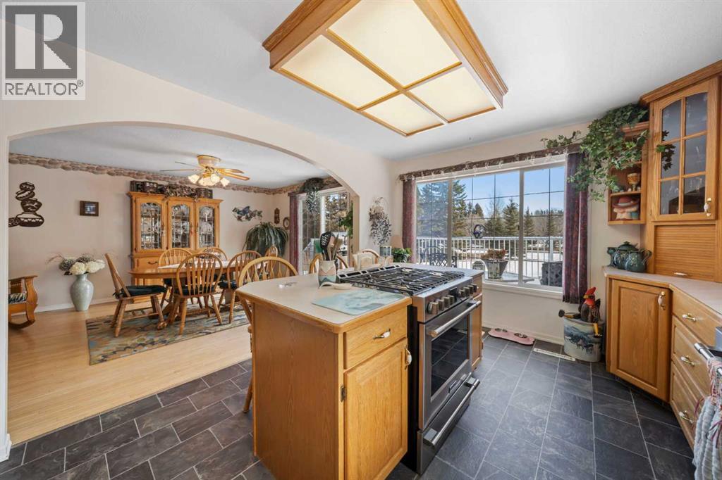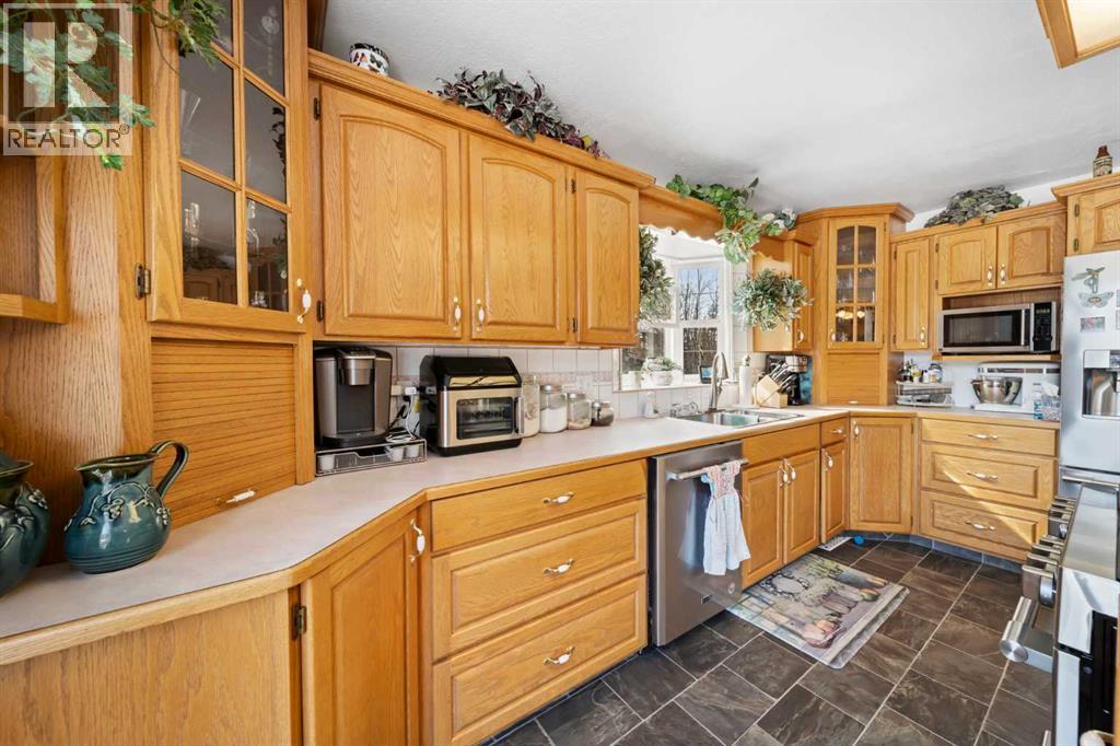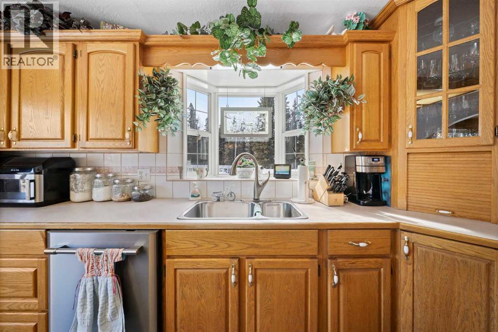 WELCOME to a peaceful country living just 5 miles east of Sundre in beautiful Mountain View County. Nestled in 1.1 acres in the quiet community of Westward Ho, this 1925 sf bilevel with 1100 sf developed basement offers space, comfort, and the charm of country life. Step inside to a bright, open concept main floor designed for everyday living and entertaining. The spacious kitchen is truly a chef's dream, featuring warm oak cabinetry, a large island with gas stove, and plenty of work space for preparing meals.The 3 sided gas fireplace separates the dining room and the living room, adding warmth and ambiance to the space.The home also show cases original hardwood flooring and adds that timeless character.The main level includes 2 bedrooms, 4 pc bath, hot tub room, main floor laundry and the dedicated office that could easily serve as a 3rd bedroom if desired. Downstairs you will find approximately 1100sf of developed basement space with a 2 pc bath. Perfect games room, man cave or develop a couple more bedrooms. The other part of the basement is gravel flooring , utility and storage space. Out door living is where the property shines. Summers are meant to be enjoyed on the large wrap deck with metal railing, the perfect place to catch the morning and afternoon sun and enjoy the peaceful surroundings. There are 2 gas hook ups on the deck, one for the fire pit and BBQ.The private yet open yard offers the best of both worlds, secluded enough to relax in nature while still allowing plenty of sunshine. Gardeners will love the rich garden space, green house with beautiful stone patio. If you are searching for a property that offers space, privacy, and the simple pleasure of country living, this is truly one of those places. The Little Red Store, (part of the subdivision) has Gas, Liquor all the essentials. (id:63190)