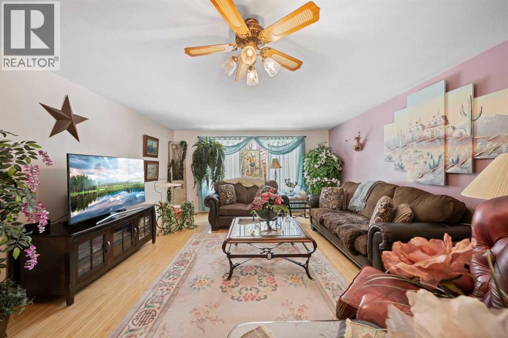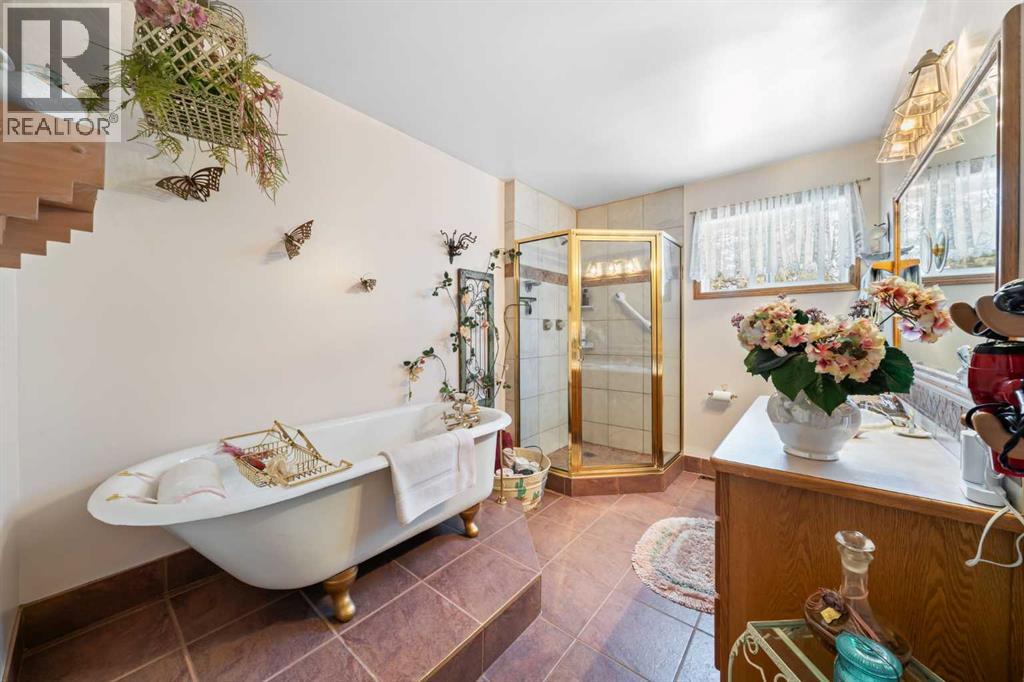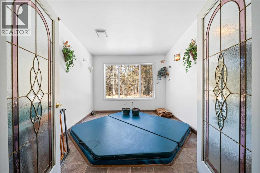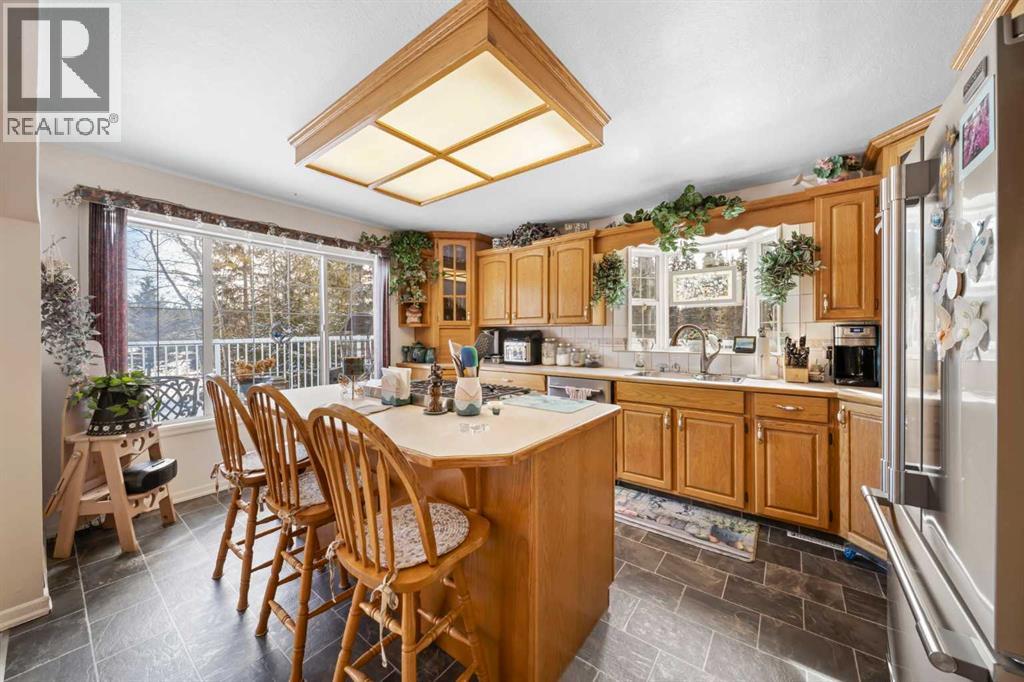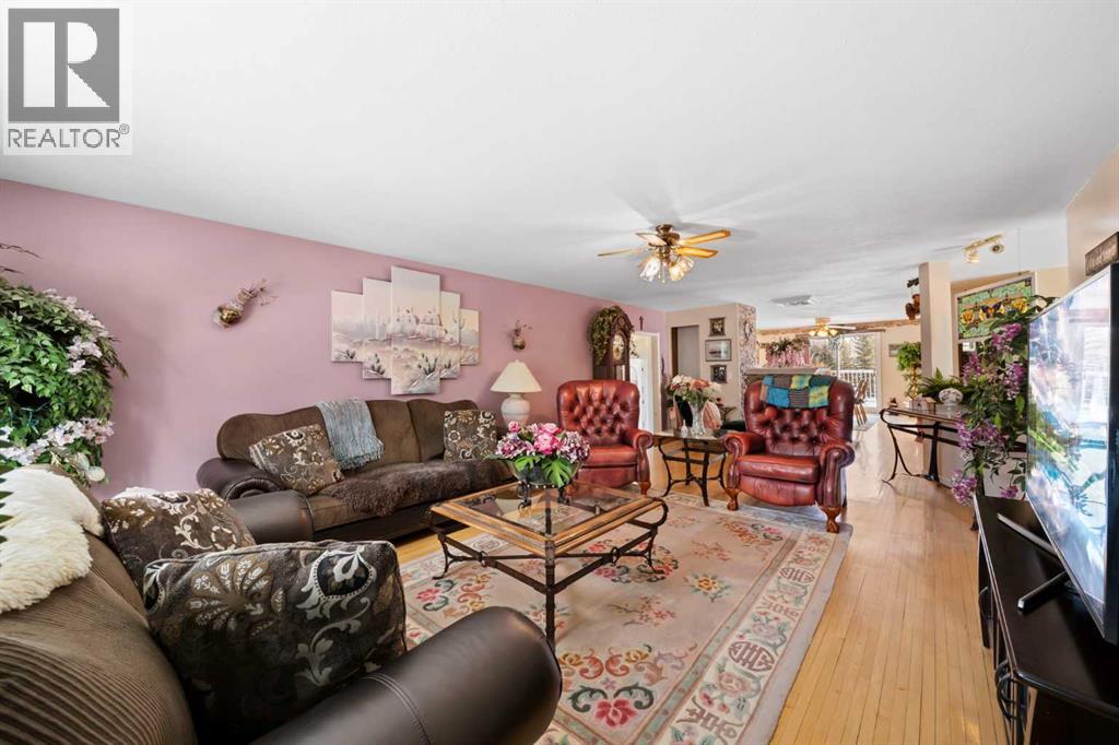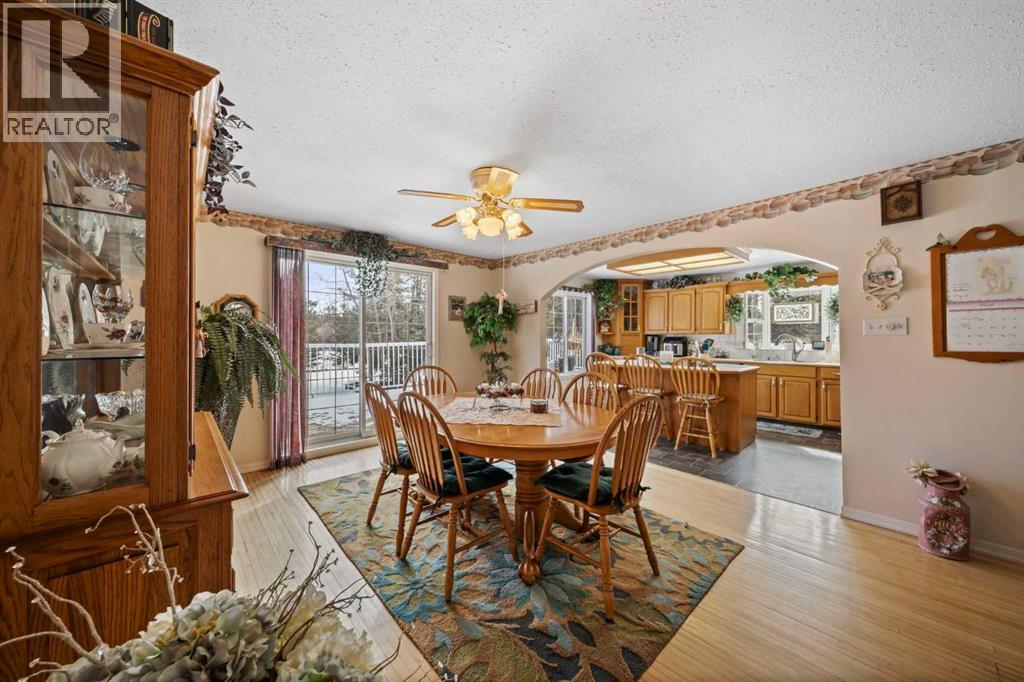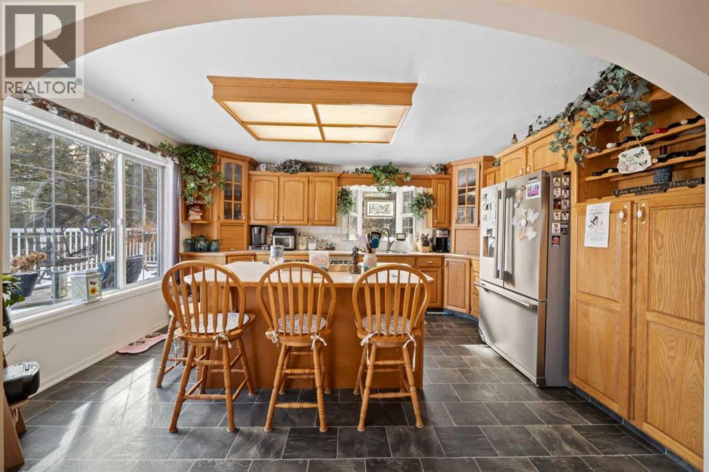 WELCOME to a peaceful country living just 5 miles east of Sundre in beautiful Mountain View County. Nestled in 1.1 acres in the quiet community of Westward Ho, this 1925 sf bilevel with 1100 sf developed basement offers space, comfort, and the charm of country life. Step inside to a bright, open concept main floor designed for everyday living and entertaining. The spacious kitchen is truly a chef's dream, featuring warm oak cabinetry, a large island with gas stove, and plenty of work space for preparing meals.The 3 sided gas fireplace separates the dining room and the living room, adding warmth and ambiance to the space.The home also show cases original hardwood flooring and adds that timeless character.The main level includes 2 bedrooms, 4 pc bath, hot tub room, main floor laundry and the dedicated office that could easily serve as a 3rd bedroom if desired. Downstairs you will find approximately 1100sf of developed basement space with a 2 pc bath. Perfect games room, man cave or develop a couple more bedrooms. The other part of the basement is gravel flooring , utility and storage space. Out door living is where the property shines. Summers are meant to be enjoyed on the large wrap deck with metal railing, the perfect place to catch the morning and afternoon sun and enjoy the peaceful surroundings. There are 2 gas hook ups on the deck, one for the fire pit and BBQ.The private yet open yard offers the best of both worlds, secluded enough to relax in nature while still allowing plenty of sunshine. Gardeners will love the rich garden space, green house with beautiful stone patio. If you are searching for a property that offers space, privacy, and the simple pleasure of country living, this is truly one of those places. The Little Red Store, (part of the subdivision) has Gas, Liquor all the essentials. (id:63190)