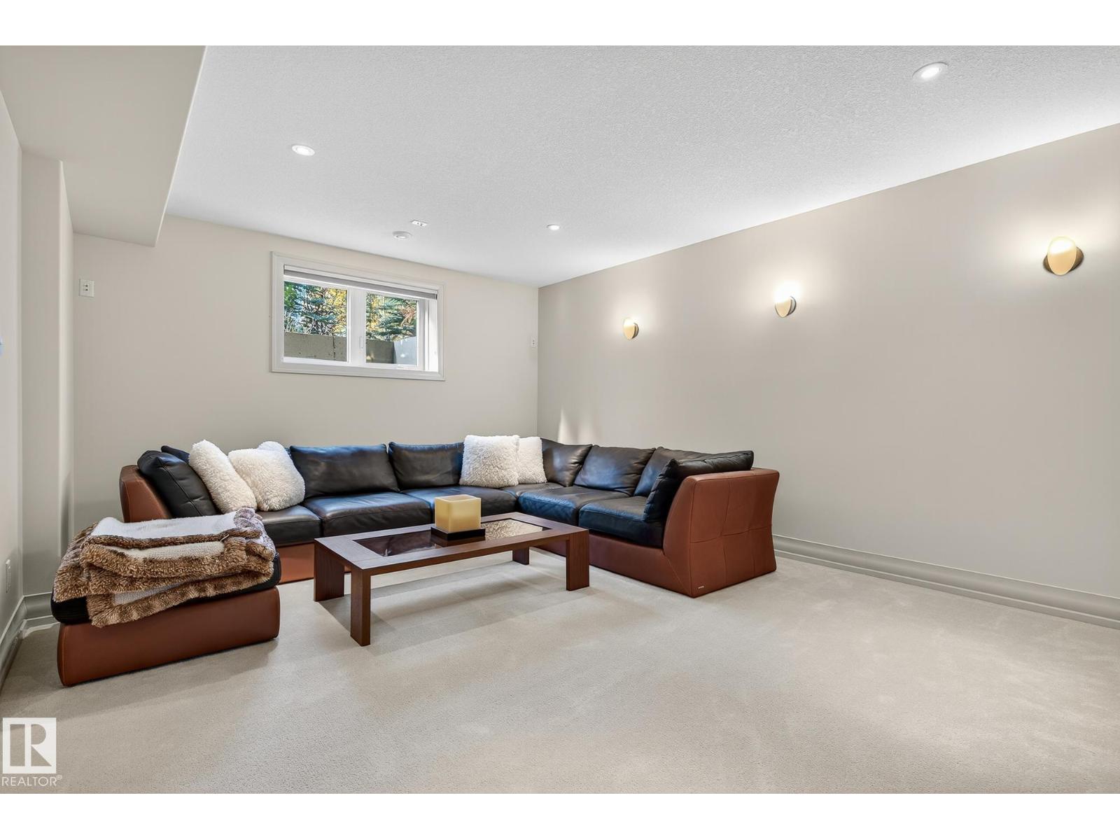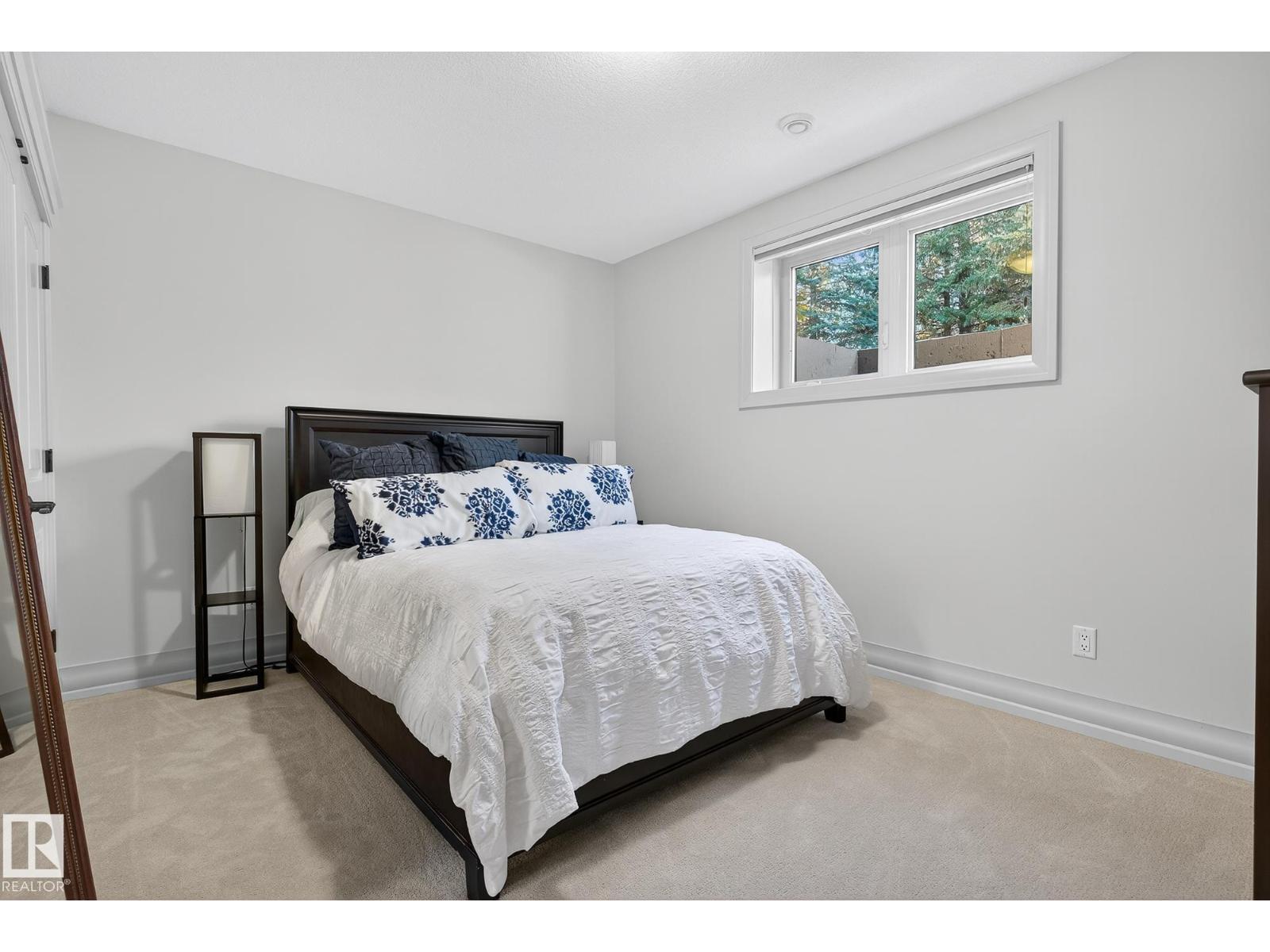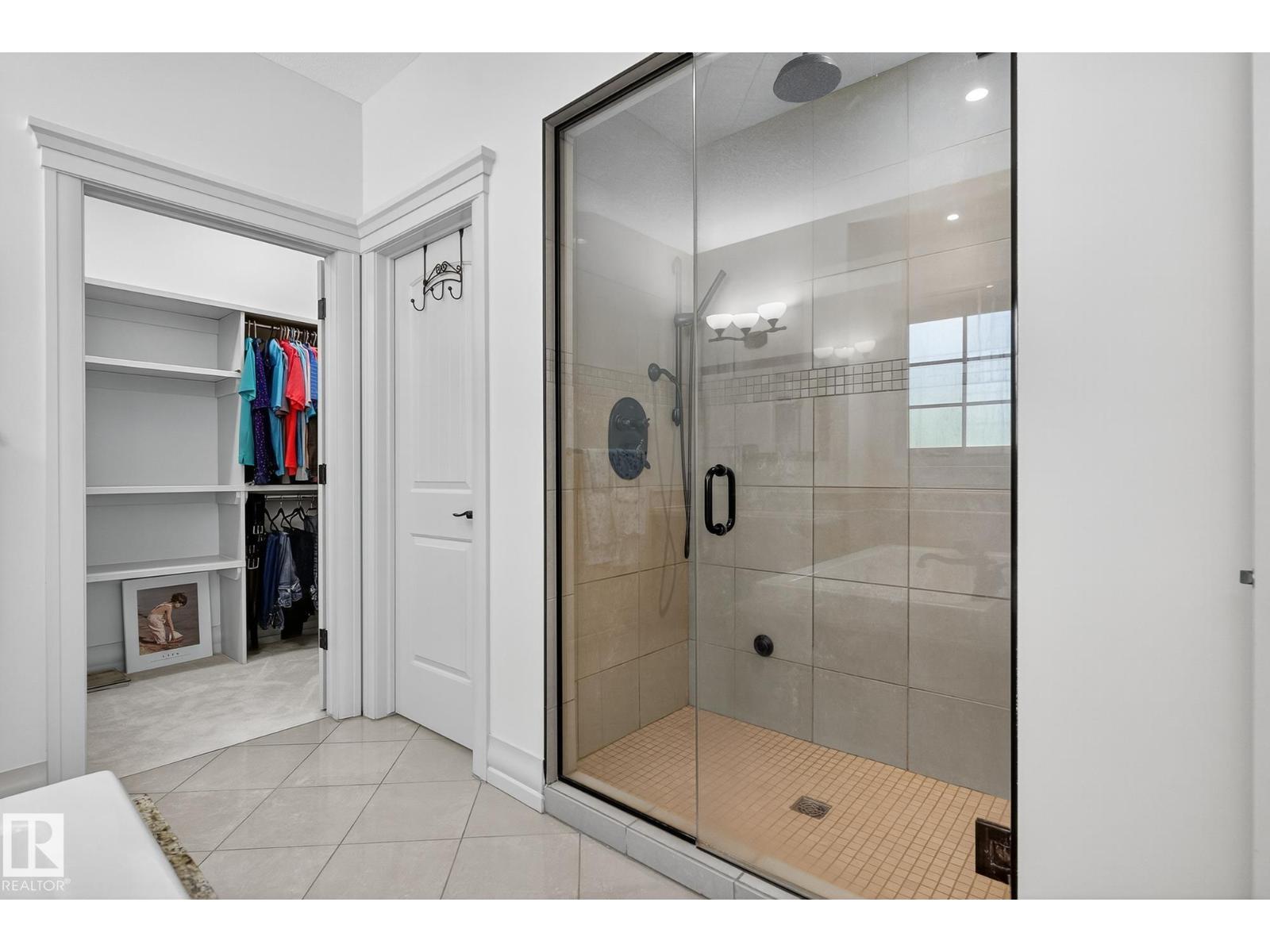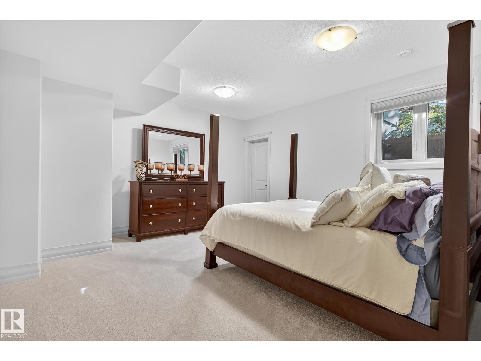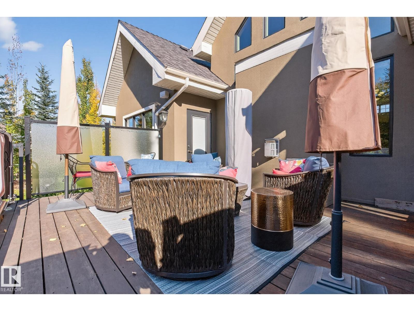 Exceptional custom-built bungalow in prestigious Atim Creek Springs, 20 mins west of Edmonton and 5 mins north of Spruce Grove features a fully landscaped, fenced yard with electric gate offering privacy among mature spruce trees, perennial beds, and underground irrigation. Over 4,600 sq ft of refined living space and oversized triple garage. This home impresses with a grand foyer, soaring 20’ vaulted ceilings, and a striking barrel-vaulted ceiling. Formal dining room with coffered ceilings, a private office with French doors, and surround sound throughout. The chef’s kitchen features a 6-burner gas stove, newer appliances, and breakfast nook opening to a west-facing deck with swim spa—ideal for entertaining. The primary suite offers a spa-inspired ensuite with steam shower and jetted tub. Fully finished basement includes 9’ ceilings, in-floor heat, two colossal bedrooms, one with walk-in closet, a 4-piece bath, media room, gym, sitting room with stone fireplace, and generous storage. New paint and carpet (id:63190)
