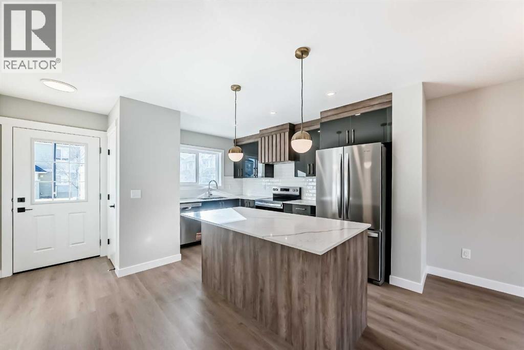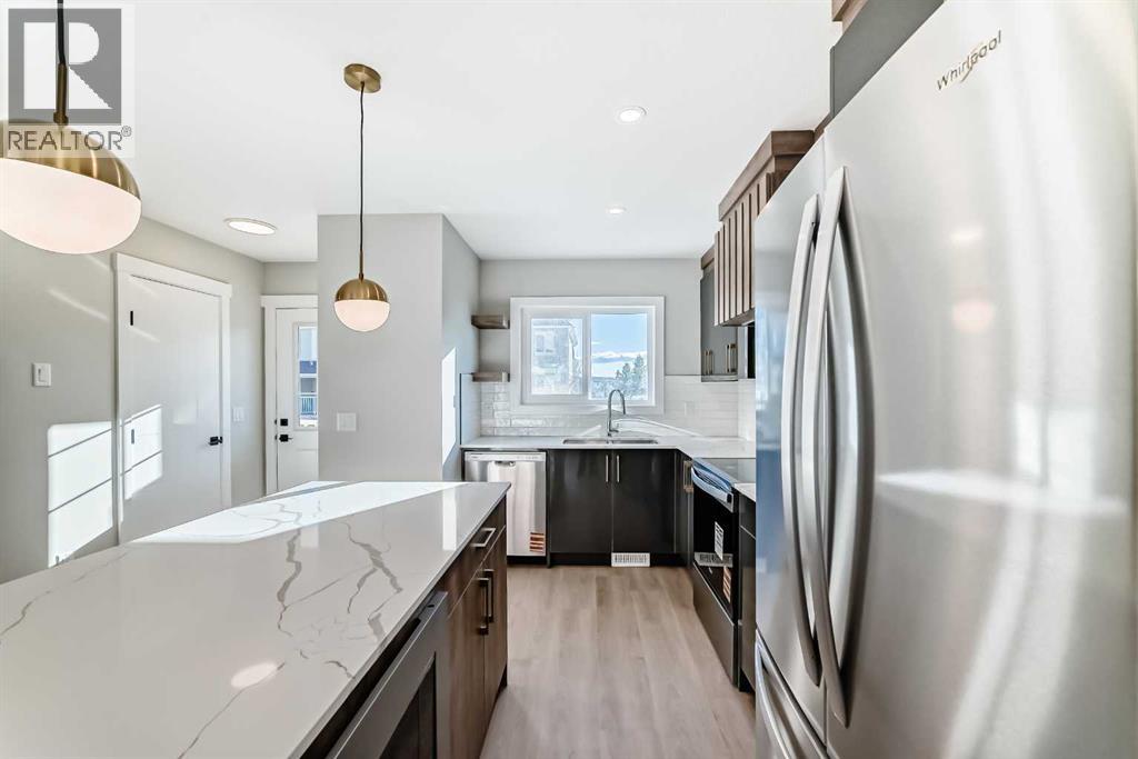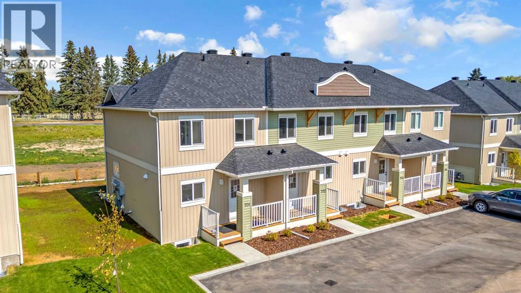 **NO CONDO FEES FOR 2026** Welcome to 703 Clover Road – a newly built, fully finished townhome that perfectly blends modern design, quality craftsmanship, and thoughtful functionality. Offering over 1590 sq ft of fully developed living space, this stunning two-story features 4 bedrooms and 3.5 bathrooms, making it ideal for young professionals, investors or families seeking extra space and comfort. Step inside and you’ll be greeted by 9-foot ceilings, a bright and open layout, and stylish finishes throughout. The main floor features LVP flooring, numerous LED pot lights, and a beautiful kitchen with quartz countertops, high-gloss cabinetry, subway tile backsplash, and Whirlpool stainless steel appliances. The undermount sink with a pull-spray faucet and a convenient water line to the fridge add both elegance and practicality. Upstairs, you’ll find a spacious primary suite complete with its own 3 pc ensuite and walk in closet, 2 additional bedrooms, a main 4-piece bathroom, and stacked laundry room for added convenience. All bathrooms feature quartz counters, undermount sinks, ceramic tile floors and walls, and comfort-height toilets. The fully finished basement expands your living space with a cozy recreation area, a custom dry bar with a mini fridge, an additional bedroom, and a full bathroom—perfect for guests, entertaining, or a home office setup. Additional highlights include a high-efficiency furnace and 50-gallon hot water tank. Outside, the home showcases Smartboard siding, and a decorative fiberglass front entry door. Large private concrete patio equipped with a gas line rough-in for easy summer BBQs. This home also includes two assigned parking stalls, and a low-maintenance lifestyle with monthly condo fees of $290.25. This move-in-ready home combines modern design, energy efficiency, and functional living in a peaceful Carstairs community — the perfect place to call home. (id:63190)