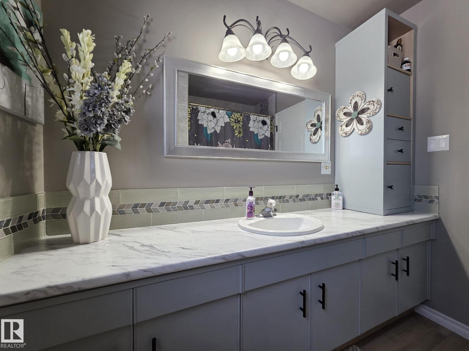 This fantastic bunglow offers a wonderful location close to schools, amenities, and walk paths. Upon entering the home you'll be pleased with the large picture window allowing lots of natural daylight that overlooks a field to the west. The beautiful kitchen was recently remodelled with quartz and features newer stainless steel appliances. This home has been extensively renovated and remodelled in the last 5 years. 2021 renovations inlcude vinyl plank through out main floor, triple pane windows throughout (w/ warranty remaining), new overhead garage door. In 2022 a new high efficiency furance, central A/C, Hot Water on Demand was added along with a new tub in main bath a exterior acrylic stucco. A walk-in shower was added to the ensuite in 2025. New exterior doors were added in 2024. In 2025 the drywalling was completed in the basement such that there's a recreation, 4th bedroom, and a brand new bathroom. Beside the garage (22x26) is a covered carport with patio furniture arranged for entertaining. (id:63190)