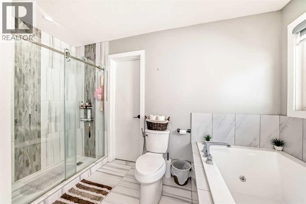 20k reduced for quick sale!***4 BEDROOMS ON UPPER LEVEL + 2 BEDROOM LEGAL BASEMENT SUITE TOTAL OF 3251 SQFT LIVING SPACE *** Welcome to this stunning and spacious family home located in the highly sought-after community of Bayside in Airdrie. Thoughtfully designed and better than new, this property offers exceptional comfort and functionality with a total of four bathrooms and eye-catching stucco exterior. The main floor features a versatile office/den, a convenient 3-piece full bathroom, and a beautifully upgraded gourmet kitchen complete with a gas stove, stainless steel appliances, modern fixtures, and a well-organized pantry. The dining area opens onto a generously sized deck, perfect for entertaining. The living room showcases a cozy gas fireplace with a built-in entertainment feature, creating a warm and inviting space. Upstairs, a striking skylight fills the home with natural light. You’ll also find a spacious bonus room, a bright laundry area with stainless steel washer and dryer, and a large primary bedroom featuring a walk-in closet and a luxurious 5-piece ensuite. The oversized double attached garage provides ample room for parking and additional storage. Exterior upgrades include Gemstone lighting, adding both style and convenience. The fully developed LEGAL basement offers a separate entrance leading to a well-designed, self-contained 2-bedroom legal suite with its own separate furnace system (city-approved). Whether used as a mortgage helper or for extended family, the possibilities are endless. With a fully landscaped and fenced yard, this move-in-ready home truly has it all—just unpack and enjoy. (id:63190)