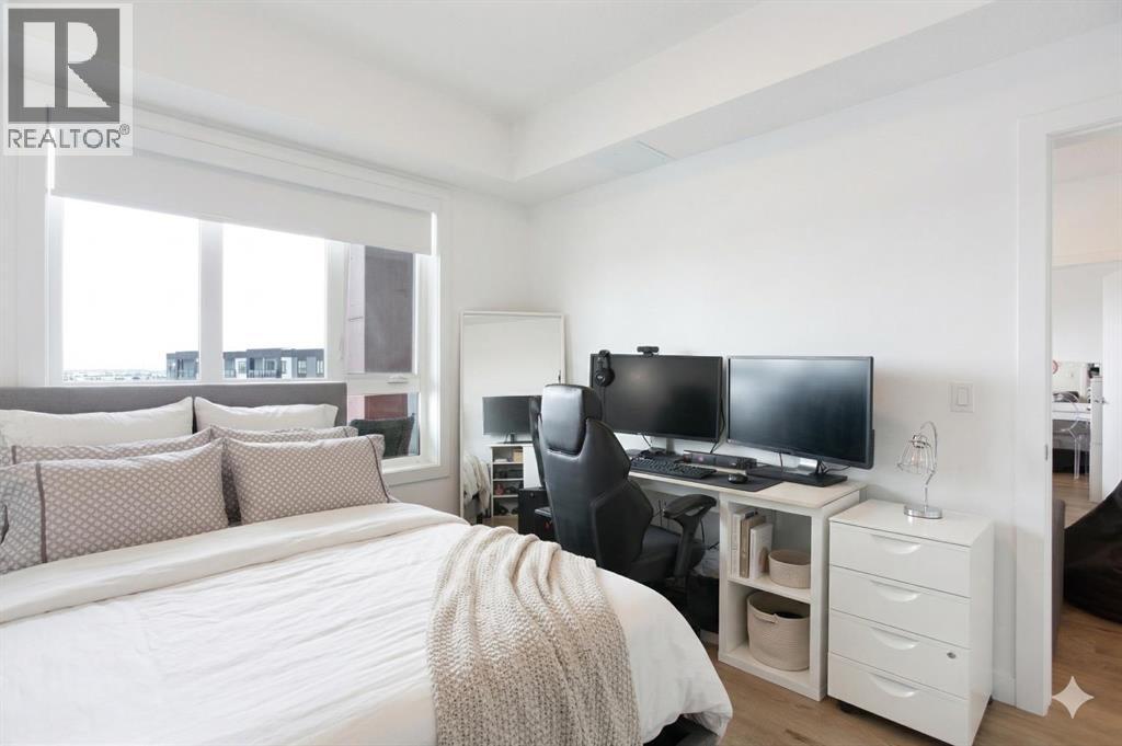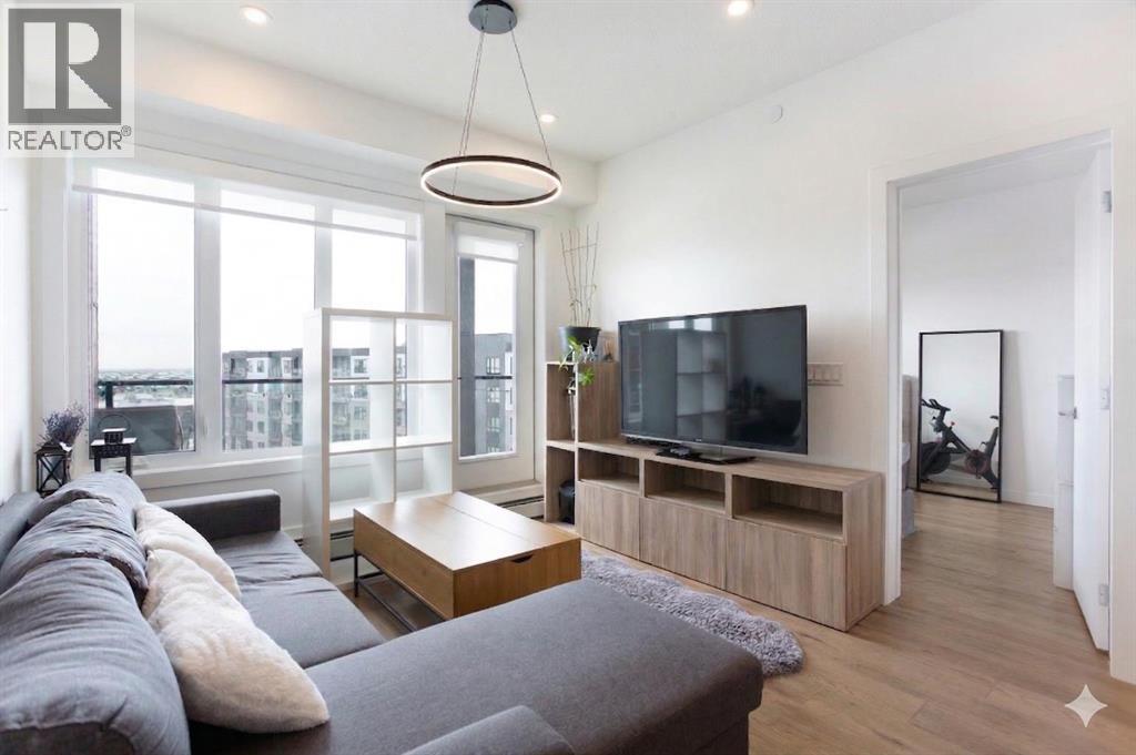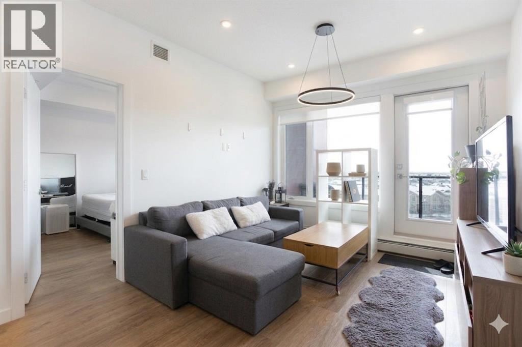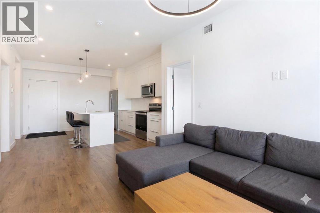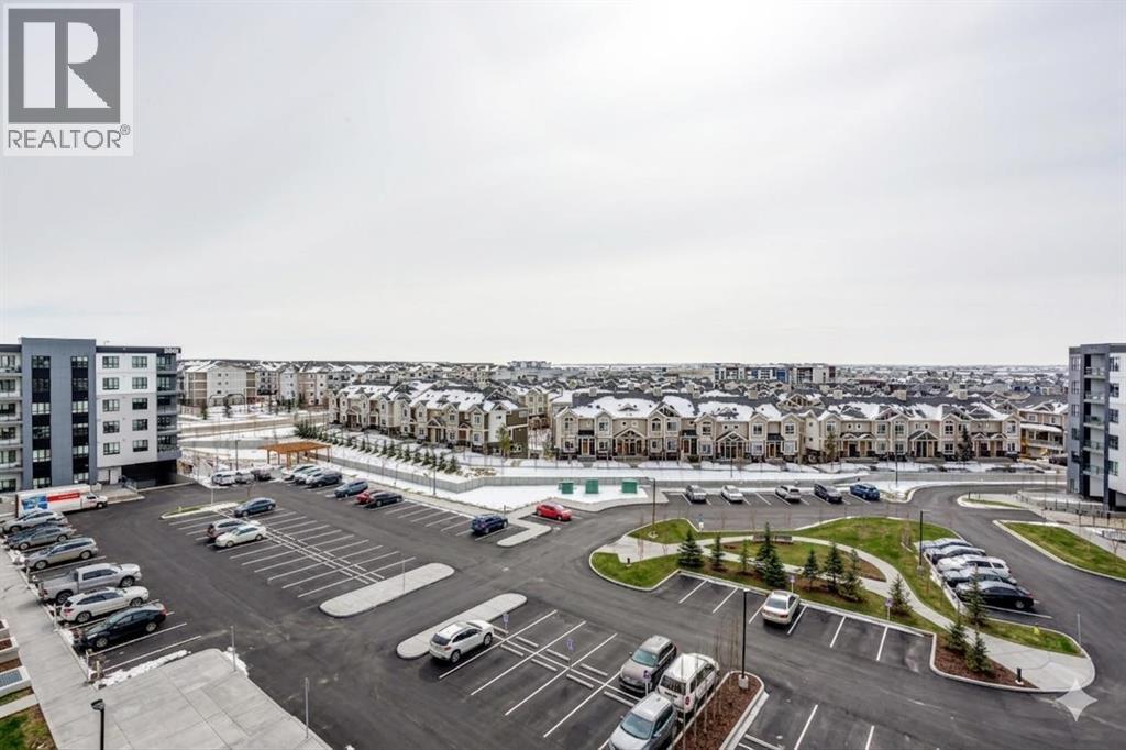 This 835 sq. ft. top-floor condo at Skyview North offers a sophisticated, modern lifestyle in one of Calgary’s most vibrant communities. From the moment you step inside, the bright, open-concept design impresses with its wide vinyl plank flooring and a crisp, neutral color palette that complements any style. At the heart of the home is a stunning kitchen, where a large central island with a double undermount sink, serves as the perfect hub for morning coffee or casual dinners, offering seating for four alongside ample cabinet and counter space. The kitchen flows seamlessly into a bright and inviting living room, creating an ideal layout for both quiet nights in and lively entertaining. From here, you can step out onto the massive, covered balcony—perhaps the home’s most striking feature. Spanning the entire width of the unit, this expansive outdoor terrace provides incredible additional living space for lounging or dining while enjoying the fresh air. The thoughtful split-bedroom configuration ensures maximum privacy for residents and guests alike. The primary suite is a true retreat, boasting a spacious walk-through wardrobe that leads into a private four-piece ensuite, complete with dual vanities and a large walk-in shower. On the opposite side of the condo, the second bedroom is equally well-appointed, offering convenient access to the main full bathroom through its own walk-through closet. In-suite storage and laundry rooms, plus a secure, titled underground parking stall add to the convenience of this home. The building amenities include a welcoming entrance lobby, a dedicated bike room, and direct access to a 115-acre environmental reserve for nature lovers. With ground-level retail at your doorstep, a future LRT station planned directly across the street, and the shopping and dining of Sky Pointe Landing just moments away, this top-floor gem offers an elevated lifestyle you won’t want to miss. Some photos have been virtually staged. Book your showing today! (id:63190)