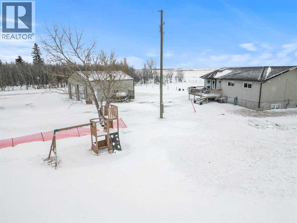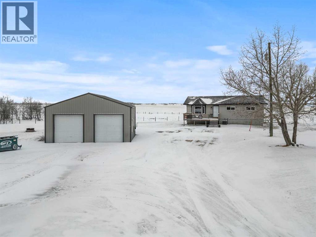 Discover the perfect balance of peaceful country living and modern comfort with this beautifully finished 1,292 sq ft acreage, ideally located just minutes from Daysland and only 30 minutes to Camrose. Set on 4.99 acres, this property offers space, privacy, and endless potential.The main floor welcomes you with a bright, open layout featuring an inviting eat-in kitchen and comfortable living room—perfect for gathering with family or friends. You’ll also find a spacious primary bedroom with a walk-in closet and ensuite, a second bedroom, a large office, and a full 4-piece bathroom. Energy-efficient appliances and a smart thermostat add everyday ease.Downstairs, the newly finished basement is a standout, boasting 9’ ceilings and in-floor heating roughed in for ultimate comfort. A massive family room creates the ideal space to relax or entertain, alongside a second primary bedroom with walk-in closet and ensuite, an additional bedroom, and a laundry/furnace room.Outside, enjoy a beautifully set-up yard with partial fencing, mature trees, open pasture, and a dugout. There’s room to garden, unwind by the fire pit, and enjoy the fruit trees and flower beds that add to the charm.The fully insulated, finished, and heated shop is a major bonus, featuring 12’ ceilings, 10’ doors, and wiring for a ceiling fan—perfect for hobbies, storage, or workspace needs.Located just off Highway 855, this acreage offers the quiet lifestyle you’ve been dreaming of without sacrificing convenience. A property like this doesn’t come along often. (id:63190)