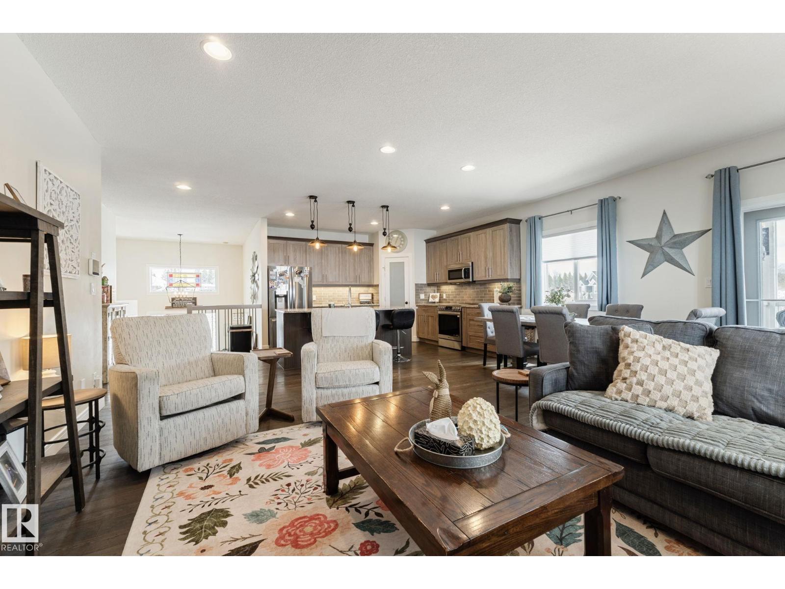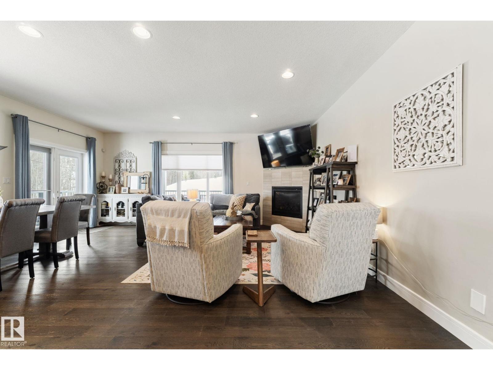 Looking to have it all? You’ve just found it! 2.28 acres backing trees, 6 bedrooms, 3 full baths, over 3685 SqFt of total living space, 4-car garage, walkout basement & only 6 km’s to Stony Plain. Relax in this turn-key home built in 2015 & make memories with all it has to offer. Step inside & feel right at home in the bright, open-concept main floor - perfect for gathering & entertaining. The kitchen is the heart of it all, featuring a large island w/ eating bar, corner pantry & beautiful cabinets flowing seamlessly into the dining & living areas w/ beautiful views in every direction. The king-sizedPrimary Bdrm is your private retreat w/ walk-in closet & 4 pce ensuite. Main floor laundry rm w/sink adds everyday ease. The walkout basement is ready to be the popular hangout spot, huge rec room & wet bar area w/ beverage fridge & dishwasher. A 4-car garage means room for all your vehicles, toys & more. Unwind on the massive wrap around covered upper deck. Enjoy the peace of this serene private oasis. (id:63190)