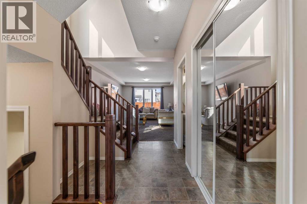 Welcome to this beautifully maintained 1,747 sq. ft. home nestled in the sought-after community of Windsong in Airdrie. This front-garage home offers a perfect blend of comfort, functionality, and convenience—ideal for families of all sizes. The main floor features a well-designed layout with a bright living room, spacious family room, and a dedicated dining area that flows seamlessly into the kitchen—perfect for both everyday living and entertaining. A convenient 2-piece bathroom completes the main level, while the welcoming front porch provides a great space to enjoy your morning coffee or unwind in the evening. Upstairs, you’ll find three generously sized bedrooms, including a primary retreat with its own 4-piece ensuite. The upper level also offers an additional 4-piece bathroom and a conveniently located laundry area, adding to the home’s practical design. The fully finished basement extends your living space with a large recreation room, an additional bedroom, and a full 4-piece bathroom—ideal for guests, extended family, or a private retreat.Situated in a quiet, family-friendly neighborhood, this home is just minutes from schools, shopping, and all essential amenities. A standout feature is the rare RV parking pad with back lane access, offering secure and convenient space for trailers, recreational vehicles, or extra parking. Don’t miss this incredible opportunity to own a well-appointed home in one of Airdrie’s most desirable communities. (id:63190)