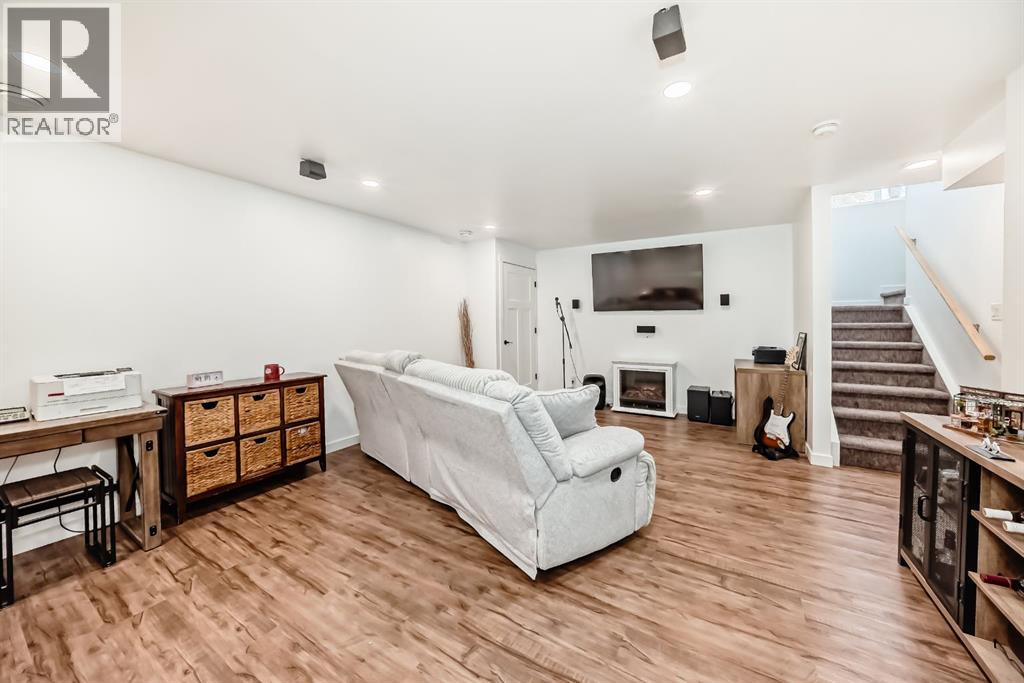 SINGLE DETACHED HOME | FINISHED BASEMENT | WIDE BACKYARD | HARDWOOD FLOORS | OPEN CONCEPT | TOP-OF-THE-LINE APPLIANCES | GRANITE COUNTERTOPS | QUIET NEIGHBOURHOOD | WALKING DISTANCE TO BOW VALLEY HIGH.Total of 2,042 sq ft of living space in this beautiful 3-bedroom, 4-bathroom home.The kitchen features granite countertops and a large island, plenty of cabinet space, and a large double-door pantry. Upgraded stainless steel appliances and a bright, sunny window overlooking the backyard complete the space. The open-concept layout flows seamlessly into a large dining and living area. Two double closets by the front door ensure everyone has ample storage. A powder room, mudroom, and laundry room complete this level. The west-facing orientation allows for sunshine throughout the day.Upstairs, you will find three spacious bedrooms, including a primary suite large enough to accommodate a king-size bed, complete with a 3-piece ensuite and walk-in closet, as well as an additional full 3-piece bathroom.The basement is fully finished, featuring a storage area, a recreation room, and a large 3-piece bathroom. The rear of the recreation room can easily be converted into a bedroom, with closets already built in.Located within walking distance of numerous pathways and ponds, this home sits in a highly sought-after community with quick access to Highway 22. Walking distance to Bow Valley High School (Grades 9–12) and just a 5-minute drive to Fireside School (K–8). A new K–8 school is also coming to the neighbourhood in 2028. (id:63190)