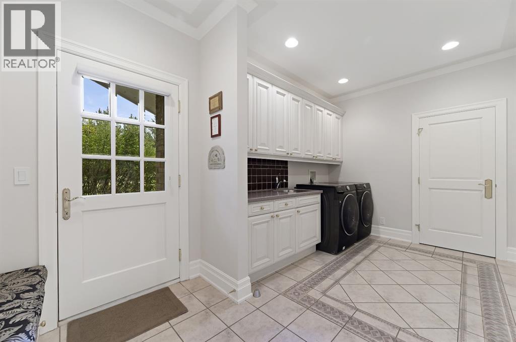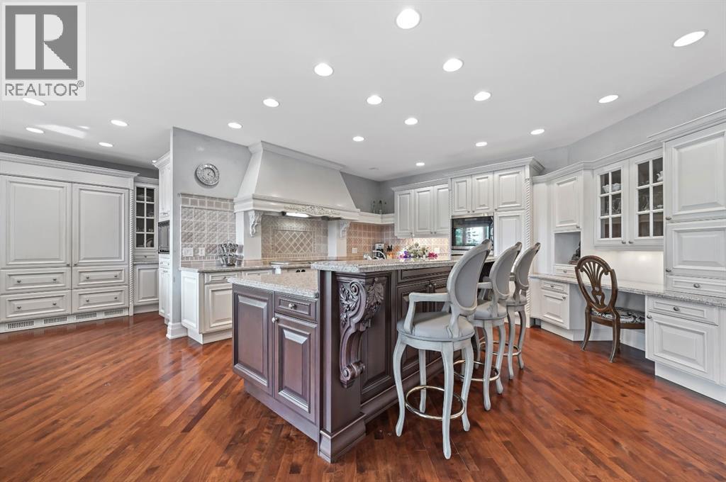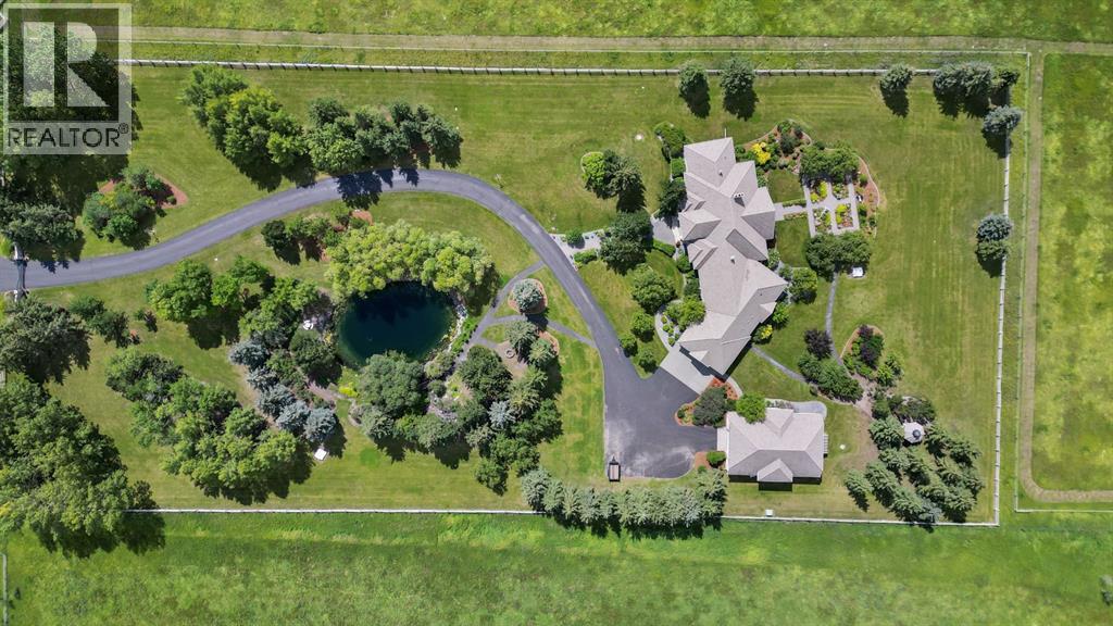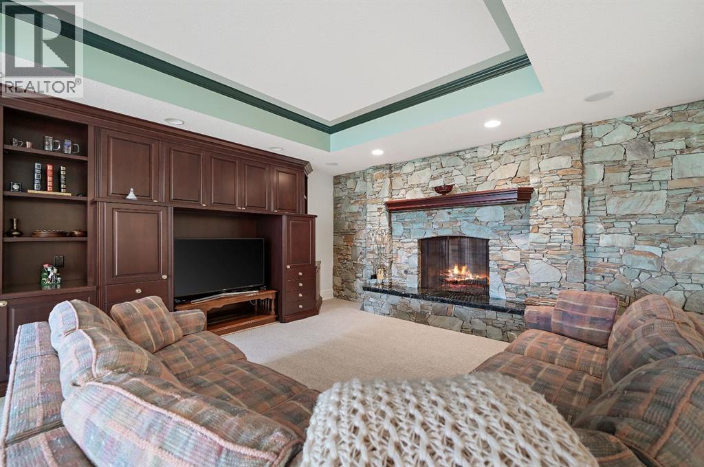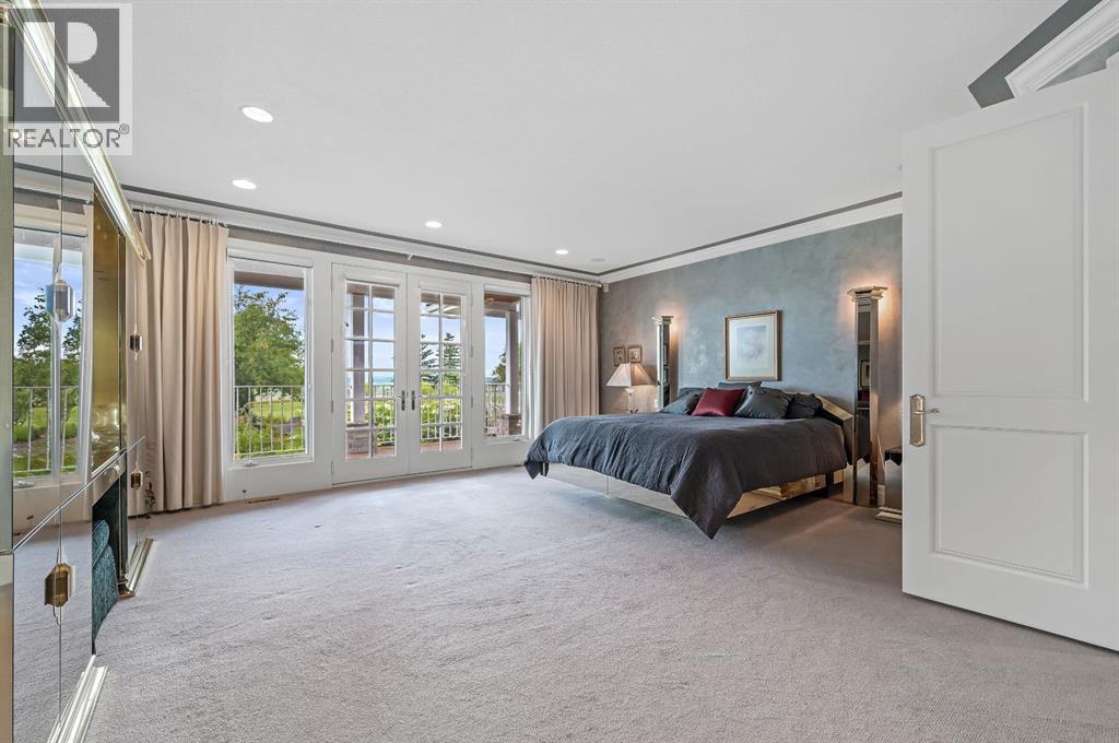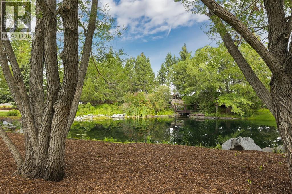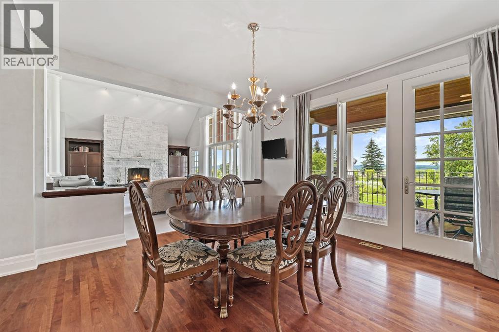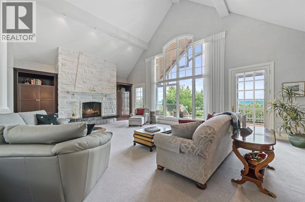 Set on 4.94 acres in the scenic beauty of Rural Foothills County, this impeccably maintained bungalow offers over 9,500 square feet of living space—providing the peace and privacy of a country estate just a short drive from Calgary’s downtown core. From the moment you arrive, the stately brick exterior, durable clay tile roof, and manicured landscaping hint at the exceptional quality within. A serene pond with a cascading waterfall sets a tranquil tone, while a beautifully landscaped courtyard adds to the property’s charm. Inside, a grand marble-floored entryway opens into the expansive living room, where a wood-burning fireplace and large west-facing windows frame spectacular mountain views. Rich hardwood floors flow throughout the main level, complementing the timeless design. The chef’s kitchen, crafted by Empire Kitchen and Bath, features Gaggenau and Sub-Zero appliances, custom cabinetry, and generous prep space. A den and an office with custom built-ins offer quiet retreats, while the massive primary bedroom boasts a walk-in closet and a spa-inspired ensuite with a soaker tub. Two additional bedrooms and a well-appointed mud/laundry room off the heated triple-car garage complete the main level. Outdoor living is elevated with a massive west-facing deck, complete with a built-in BBQ that steps down into a beautifully landscaped garden with stone walkway. The lower level includes a fully built-out legal nanny suite with kitchen, living room, and bedroom, thoughtfully tucked away for privacy. Additional spaces include a games room, billiards room, recreation area, exercise space, full wet bar, a fourth bedroom, and two more wood-burning fireplaces. An extraordinary 2,300 square feet RV garage/workshop offers endless possibilities for collectors, hobbyists, or large-scale projects. Blending elegance, functionality, and an enviable location, this estate is just minutes from Calgary’s city limits, Strathcona-Tweedsmuir School, the Calgary Polo Club, and Spruce Meado ws—delivering a rare combination of luxury, privacy, and convenience. (id:63190)