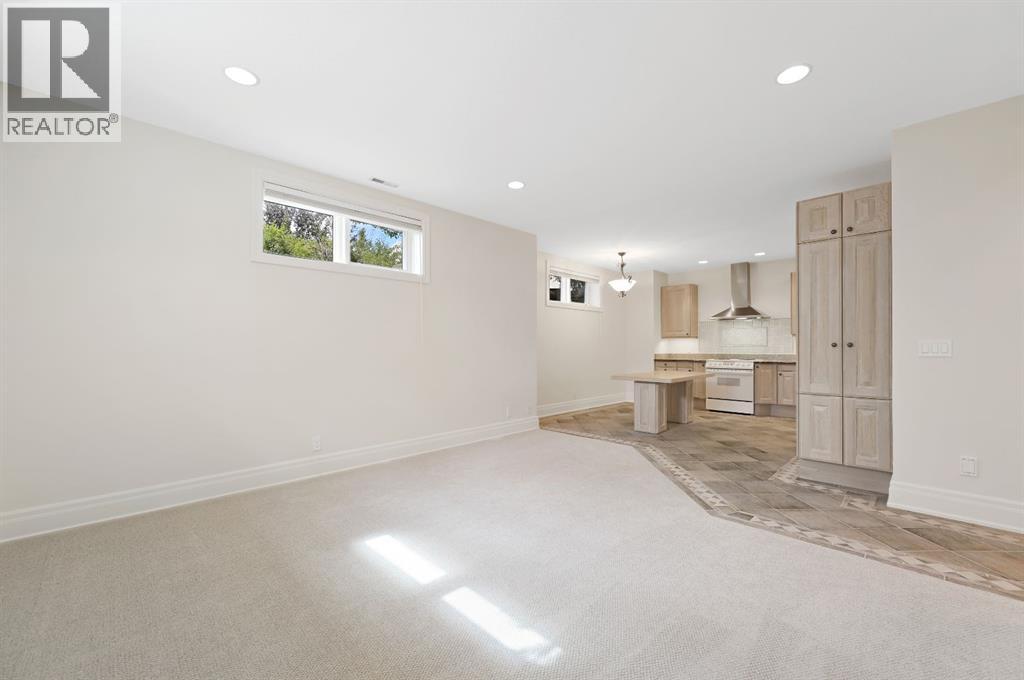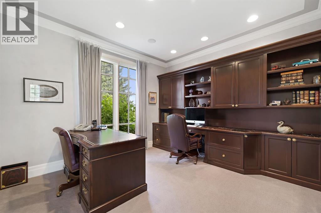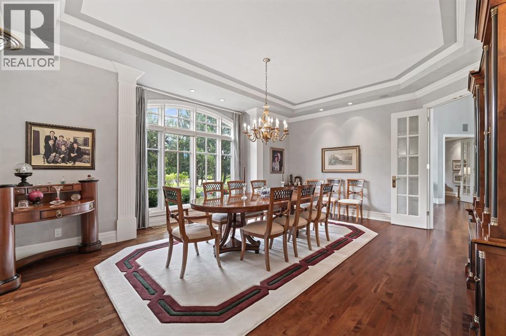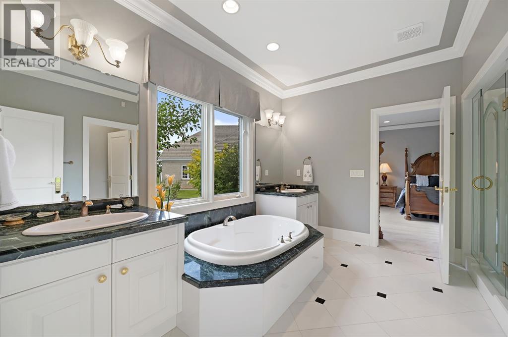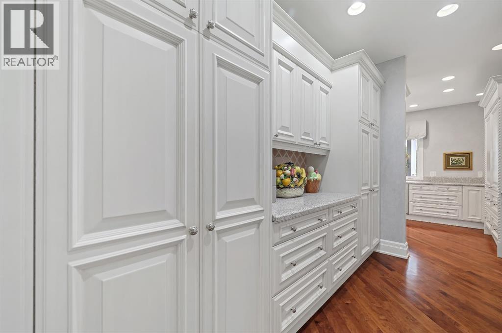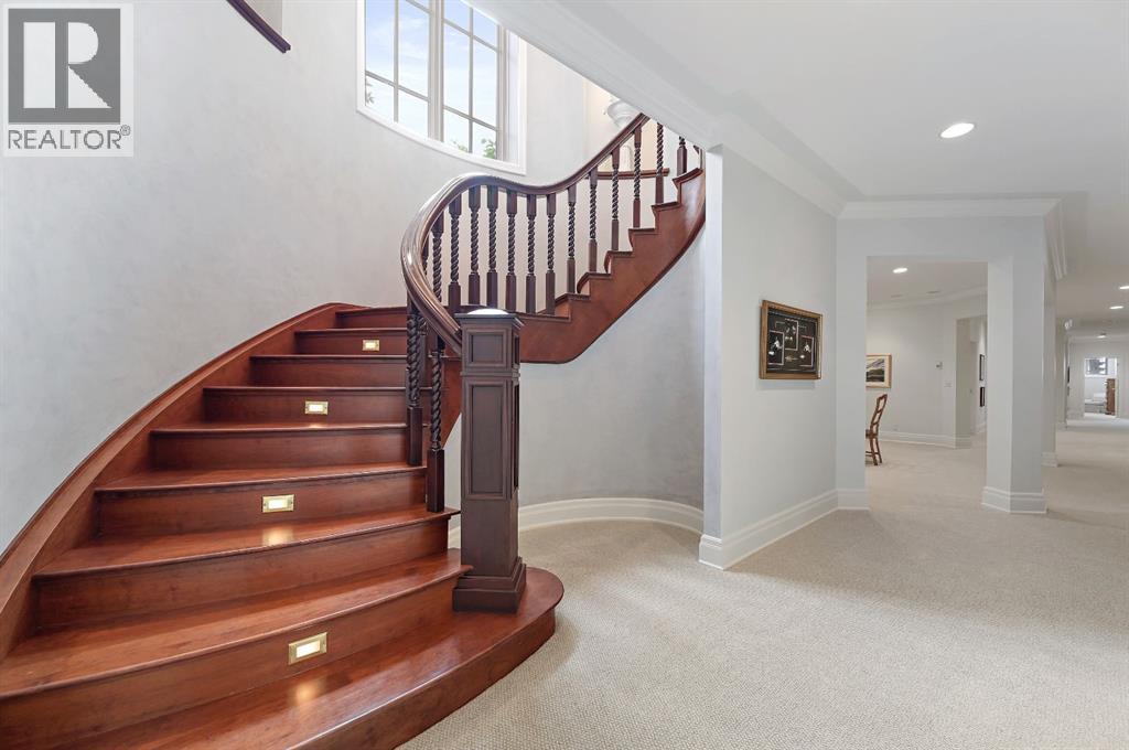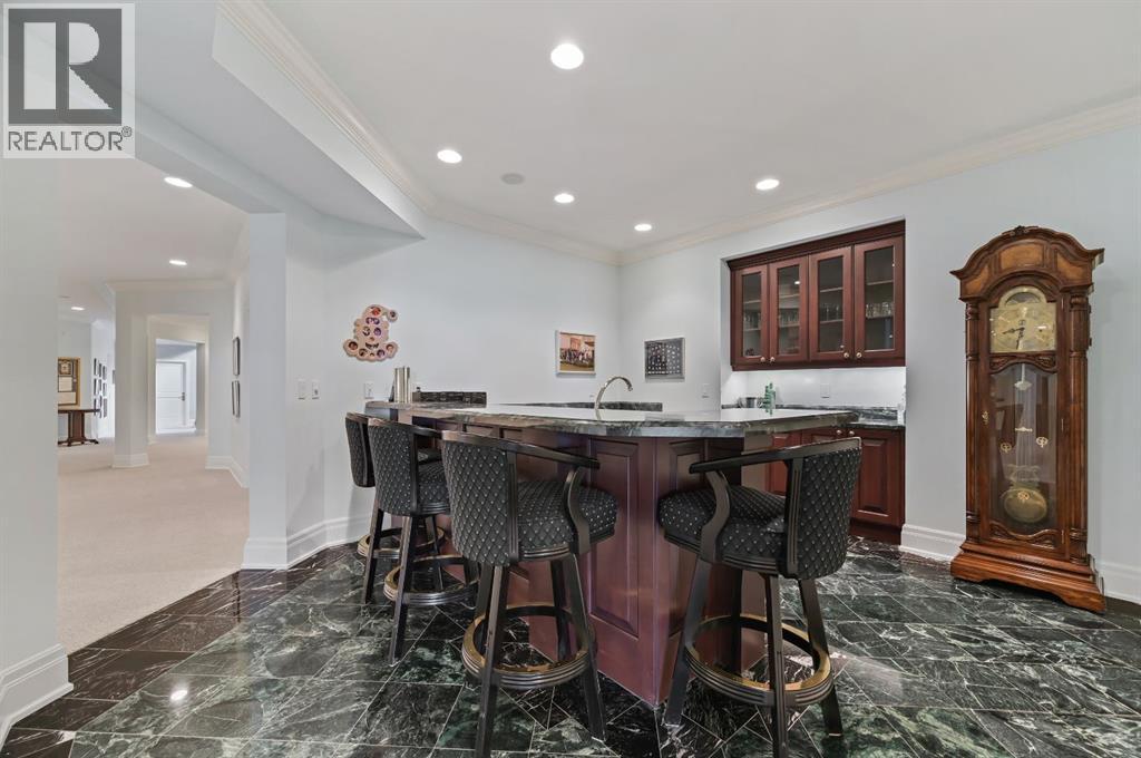 Set on 4.94 acres in the scenic beauty of Rural Foothills County, this impeccably maintained bungalow offers over 9,500 square feet of living space—providing the peace and privacy of a country estate just a short drive from Calgary’s downtown core. From the moment you arrive, the stately brick exterior, durable clay tile roof, and manicured landscaping hint at the exceptional quality within. A serene pond with a cascading waterfall sets a tranquil tone, while a beautifully landscaped courtyard adds to the property’s charm. Inside, a grand marble-floored entryway opens into the expansive living room, where a wood-burning fireplace and large west-facing windows frame spectacular mountain views. Rich hardwood floors flow throughout the main level, complementing the timeless design. The chef’s kitchen, crafted by Empire Kitchen and Bath, features Gaggenau and Sub-Zero appliances, custom cabinetry, and generous prep space. A den and an office with custom built-ins offer quiet retreats, while the massive primary bedroom boasts a walk-in closet and a spa-inspired ensuite with a soaker tub. Two additional bedrooms and a well-appointed mud/laundry room off the heated triple-car garage complete the main level. Outdoor living is elevated with a massive west-facing deck, complete with a built-in BBQ that steps down into a beautifully landscaped garden with stone walkway. The lower level includes a fully built-out legal nanny suite with kitchen, living room, and bedroom, thoughtfully tucked away for privacy. Additional spaces include a games room, billiards room, recreation area, exercise space, full wet bar, a fourth bedroom, and two more wood-burning fireplaces. An extraordinary 2,300 square feet RV garage/workshop offers endless possibilities for collectors, hobbyists, or large-scale projects. Blending elegance, functionality, and an enviable location, this estate is just minutes from Calgary’s city limits, Strathcona-Tweedsmuir School, the Calgary Polo Club, and Spruce Meado ws—delivering a rare combination of luxury, privacy, and convenience. (id:63190)