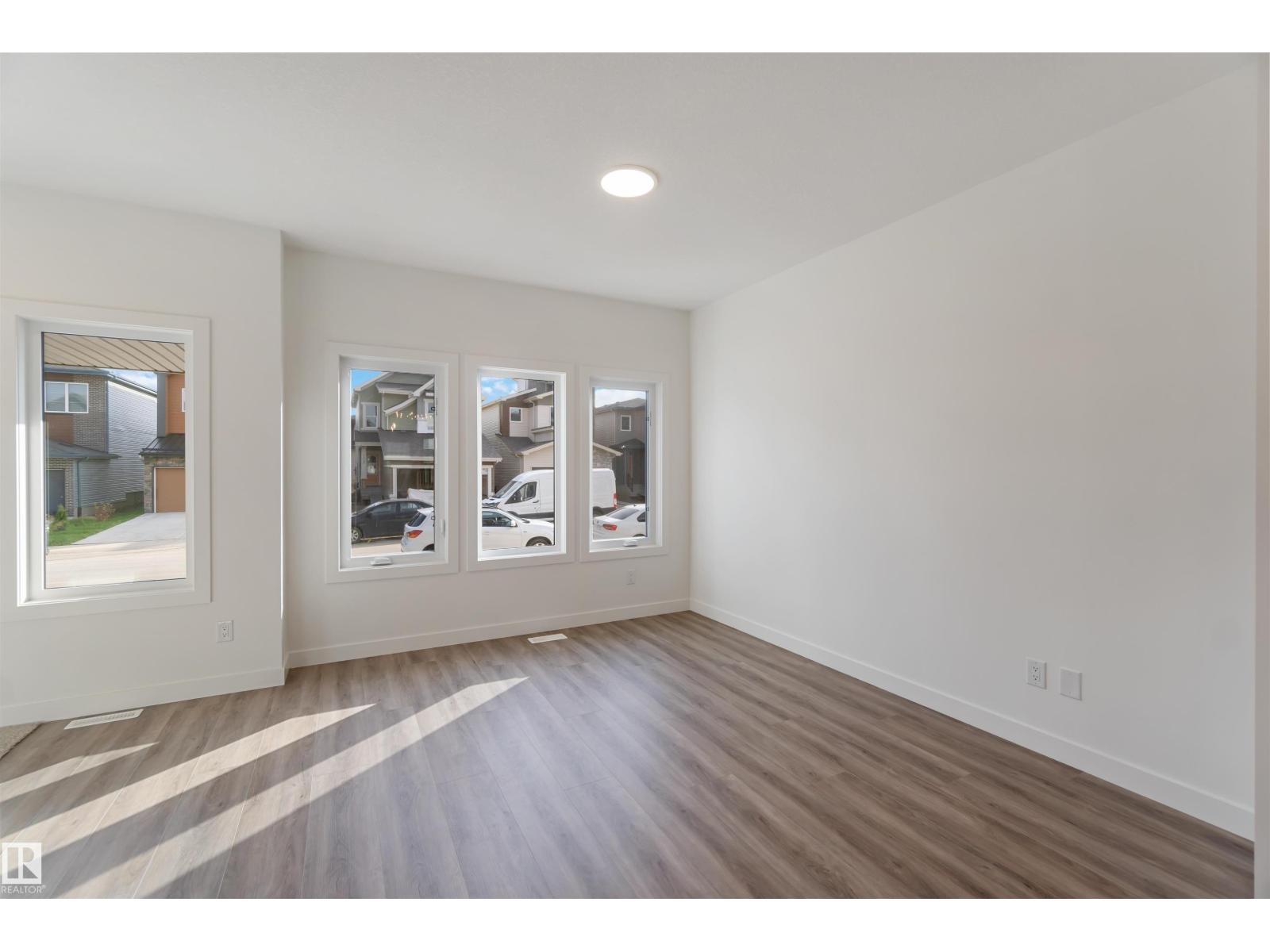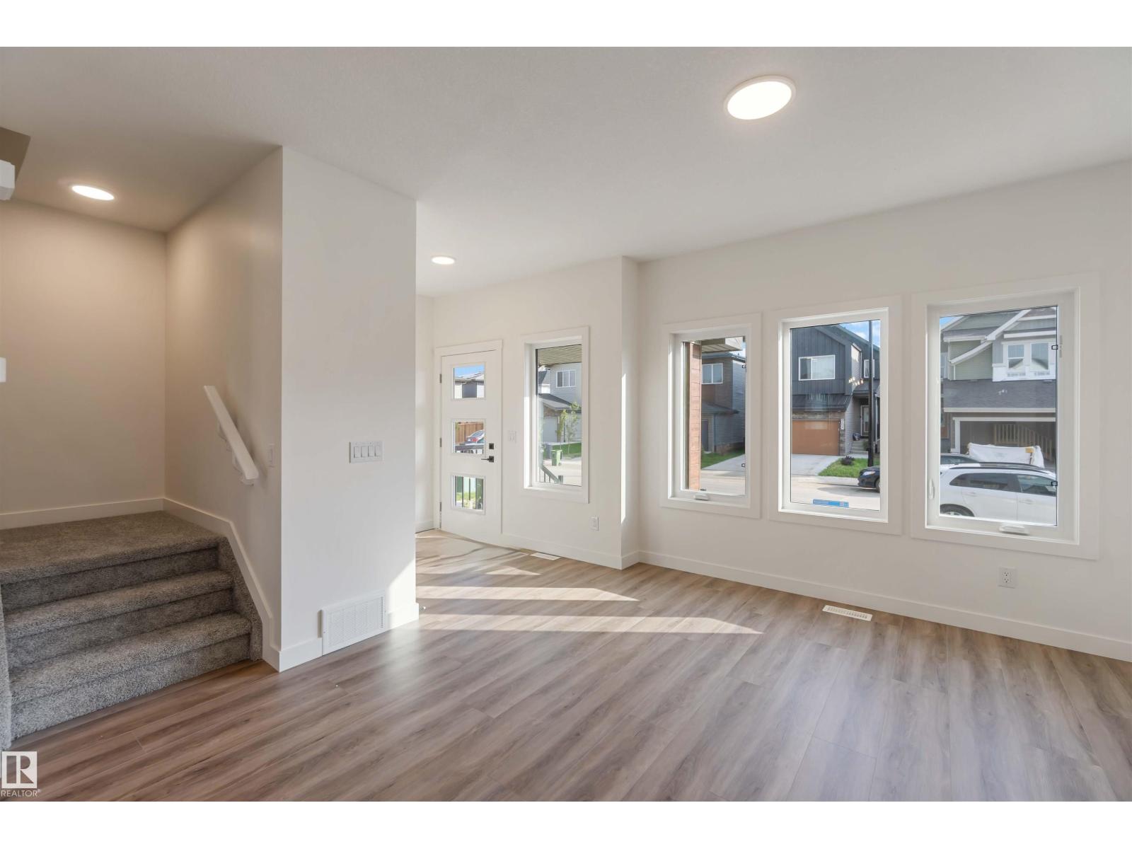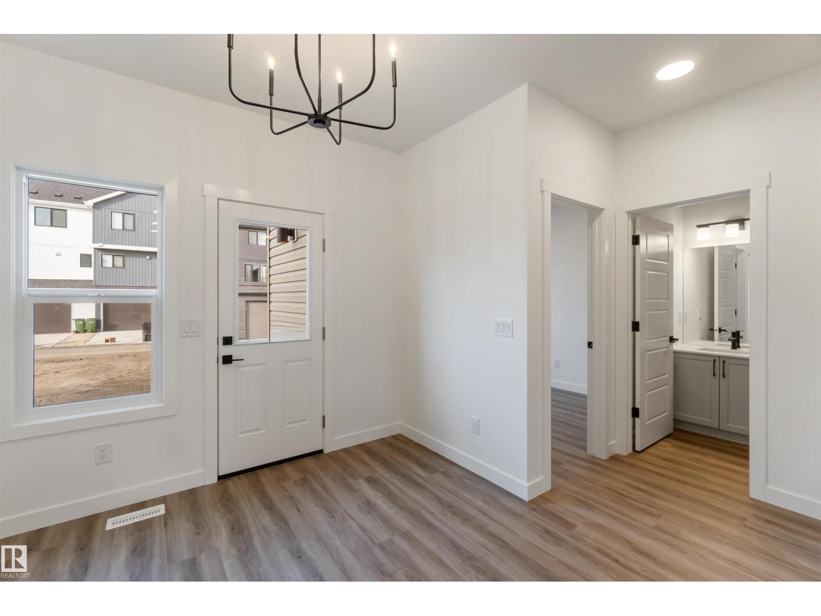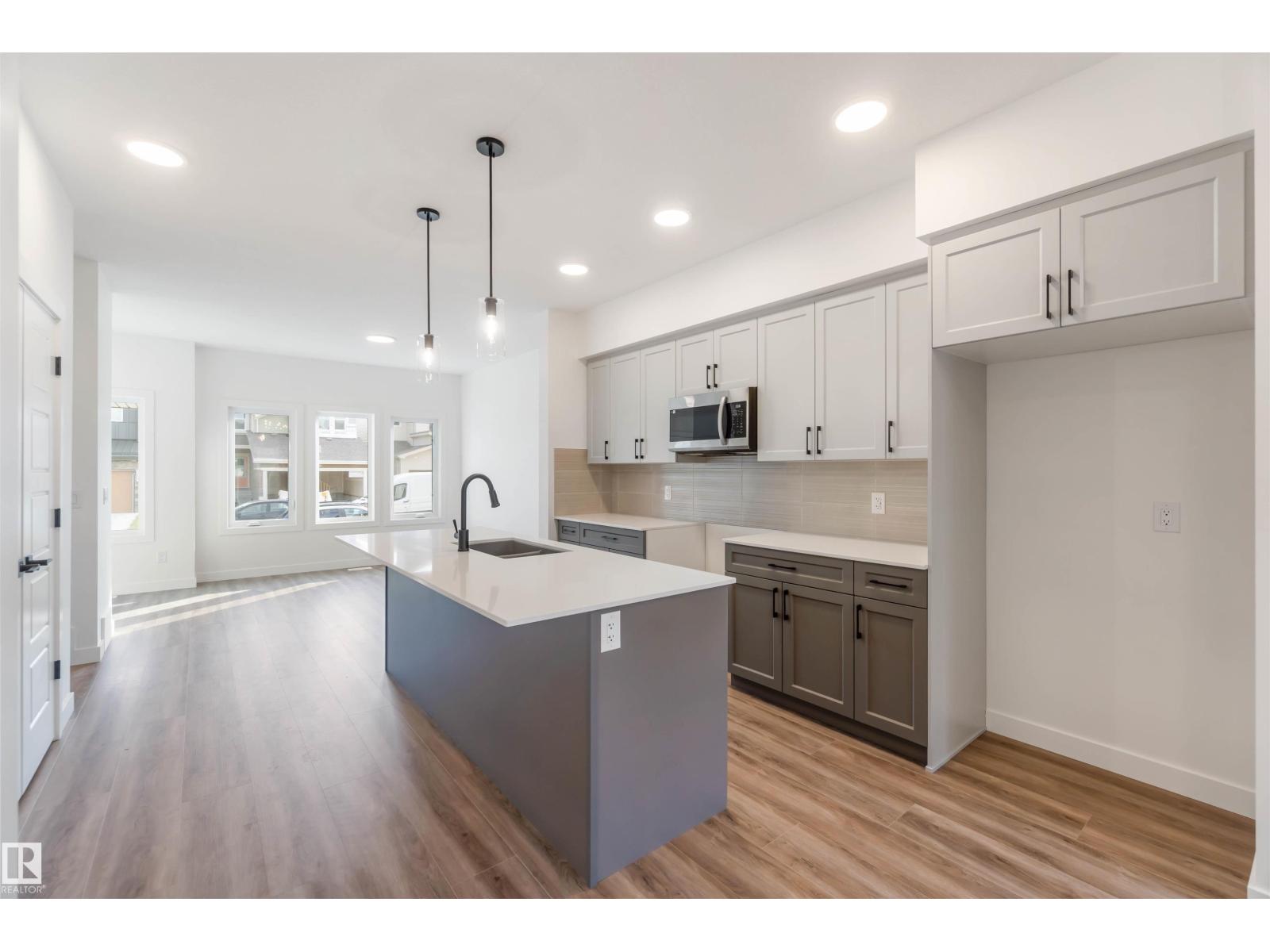 Built by Sterling Homes, this elegant three-bed home features luxury vinyl plank flooring throughout the main floor. A welcoming foyer with a coat closet leads to a bright great room filled with natural light from a large front window. The kitchen is both stylish and functional, offering quartz countertops, an island with a flush eating ledge, a Silgranit sink, pendant lighting, and upgraded cabinetry with soft-close doors and drawers. A tucked-away pantry adds convenience. At the rear, a sunlit nook overlooks the backyard, alongside a main floor bedroom and a full 3-piece bath with stand-up shower—ideal for guests or multi-generational living. Upstairs, the primary suite includes a walk-in closet and a 3-piece ensuite, complemented by two additional bedrooms, a full bath, and laundry. Additional features include 9’ ceilings, side entrance, and basement rough-ins. (id:63190)