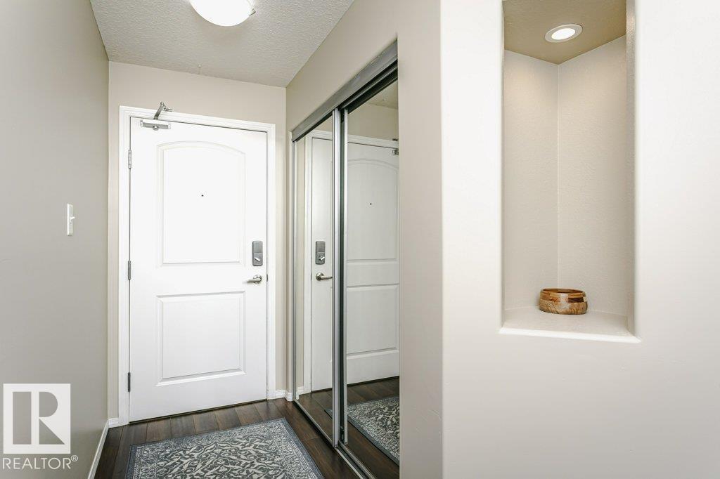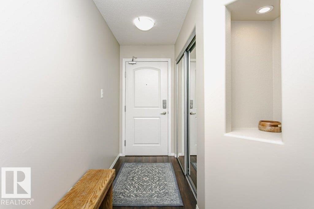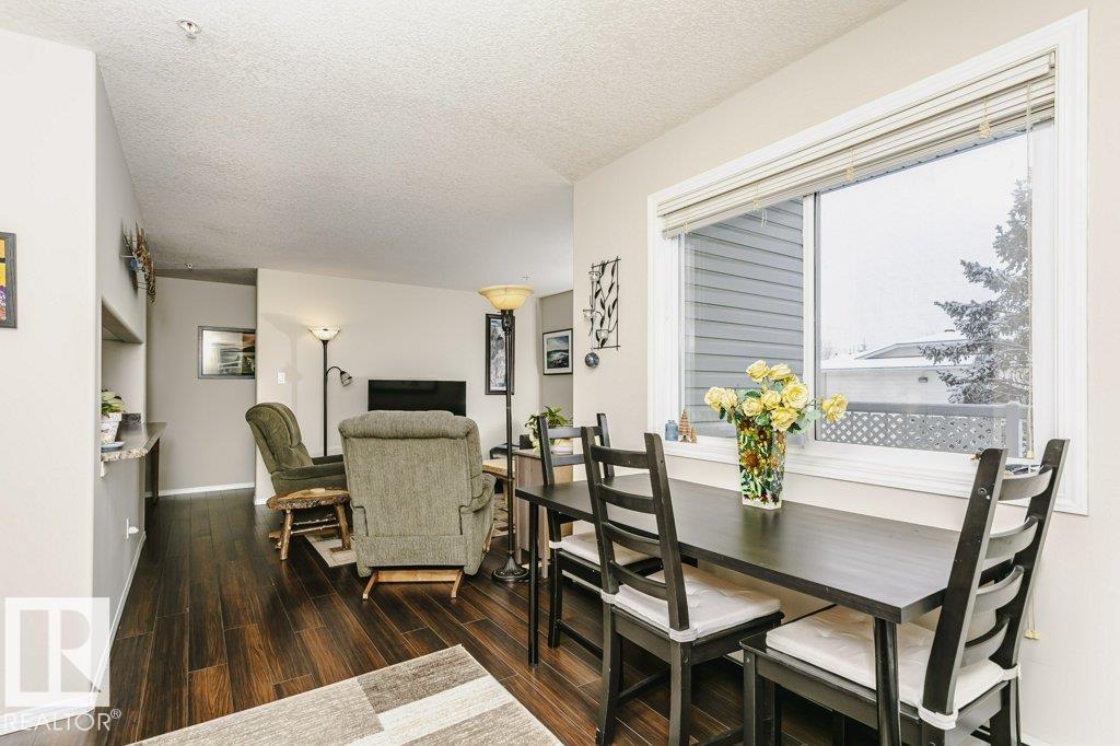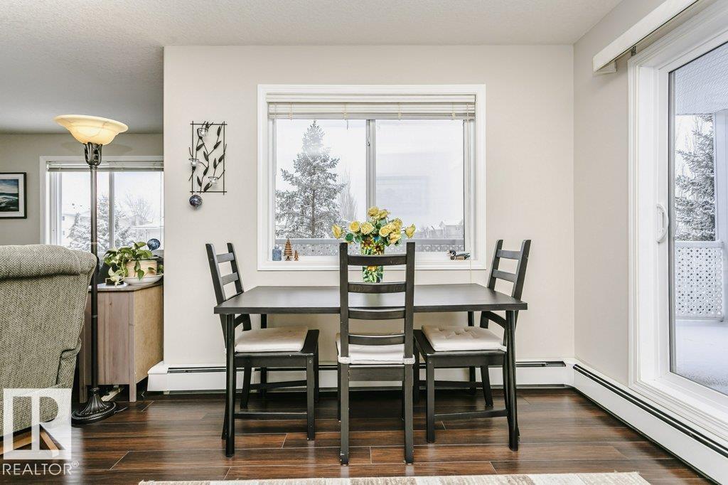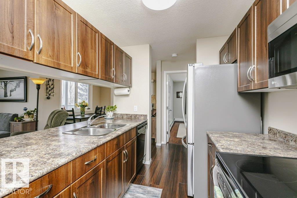 Bright and stylish second-floor corner end unit with an oversized wrap-around deck and desirable west exposure—perfect for soaking up evening sun. This well-maintained 2-bedroom, 2-bath condo features an efficient galley kitchen with upgraded appliances, a formal dining area, and a comfortable living space enhanced by laminate flooring and fresh modern paint throughout. The spacious primary bedroom offers a private ensuite, while the second bedroom and full bath provide flexibility for guests or home office use. Enjoy the convenience of in-suite laundry, additional storage, and a heated underground parkade. Ideally located close to public transit and just minutes from shopping, restaurants, grocery stores, and pharmacies. A fantastic opportunity for first-time buyers, downsizers, or investors seeking low-maintenance living in a prime location. (id:63190)