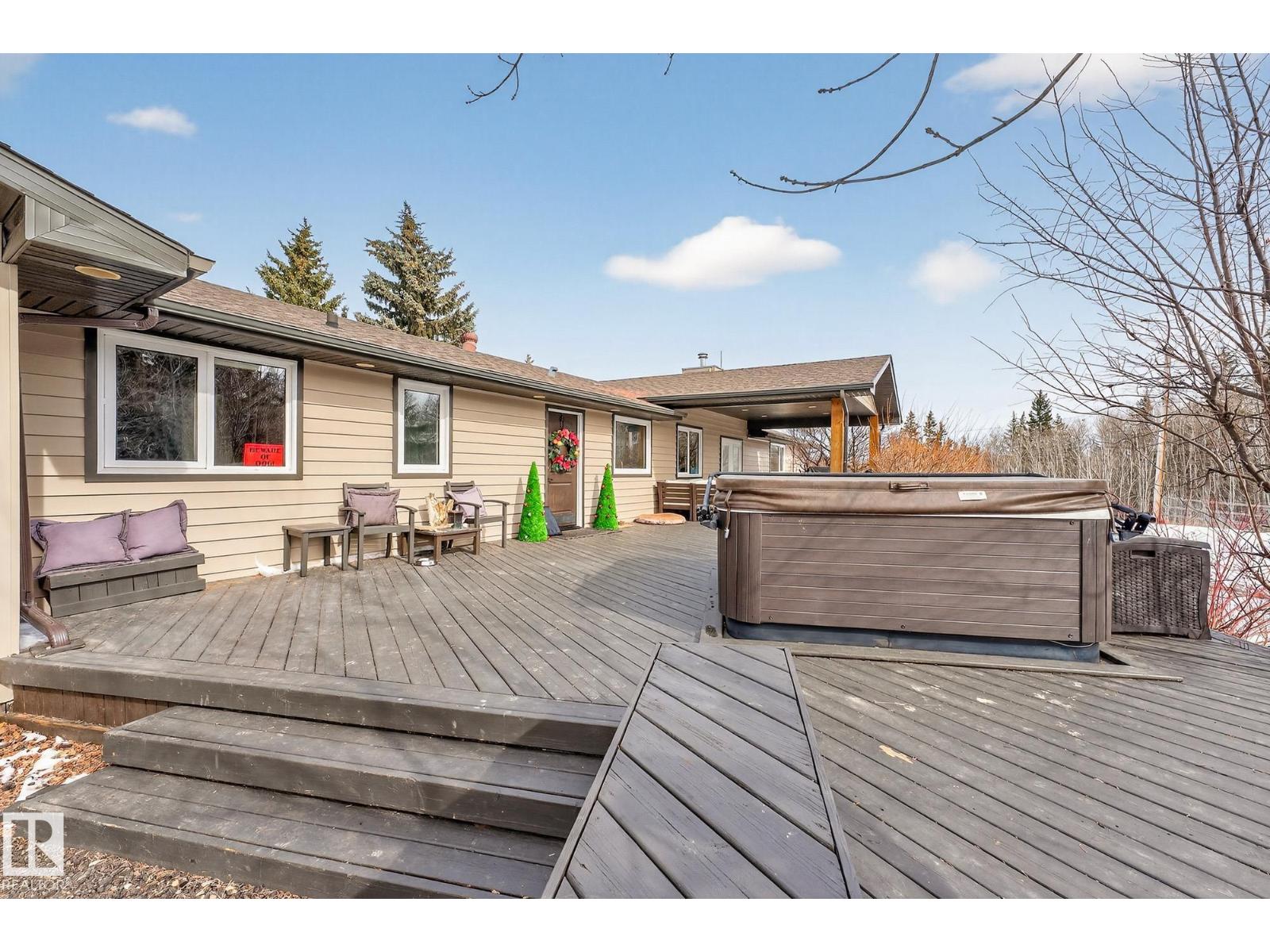 Welcome to this stunning 2500 sq ft home nestled on 20 picturesque acres, offering the perfect blend of space, comfort and privacy. This well-appointed property features 4 bathrooms and 4 bedrooms, with 3 located upstairs and 1 in the fully finished basement. Enjoy cozy evenings with two fireplaces and take advantage of the spacious triple car garage. The fully finished basement adds extra living and entertainment space, while the oversized deck is perfect for outdoor gatherings and relaxing in peaceful surroundings. A private hot tub completes this incredible outdoor retreat. Ideal for horse lovers or golf enthusiast with minutes away from the Northern Bear Golf course , the property is fenced , and has 3 shelters and a shop for added versatility and storage. This exceptional acreage offers the perfect blend of country living and modern comfort. Welcome Home ! (id:63190)