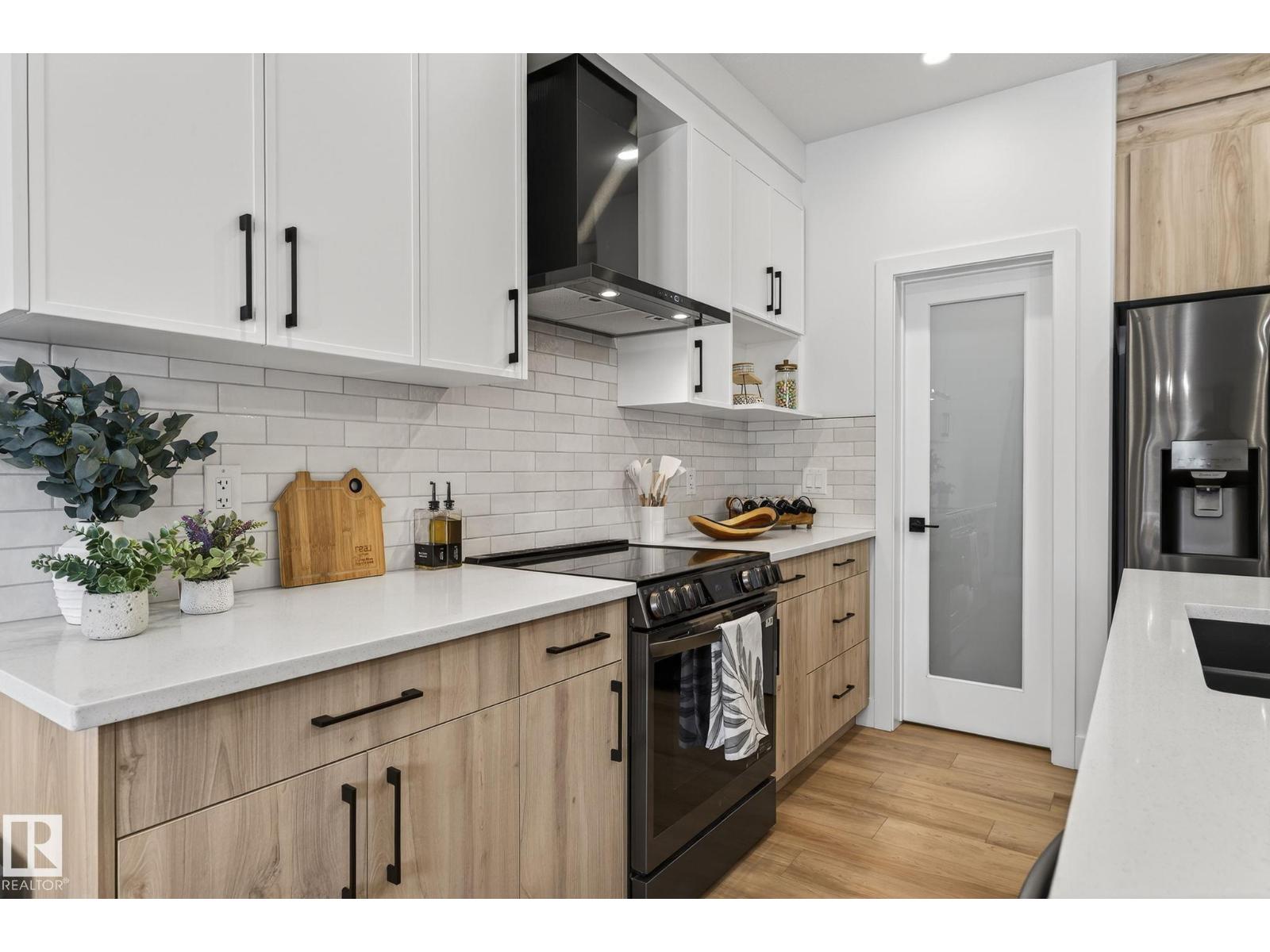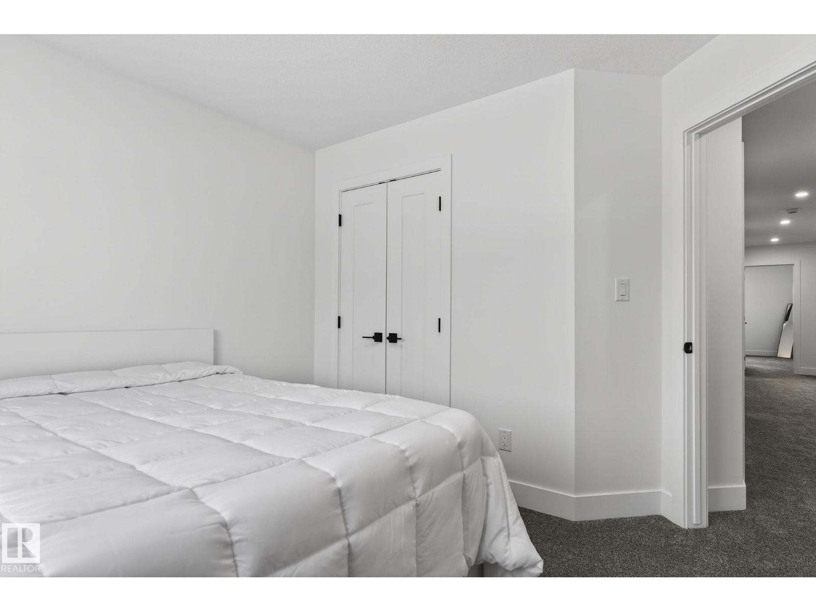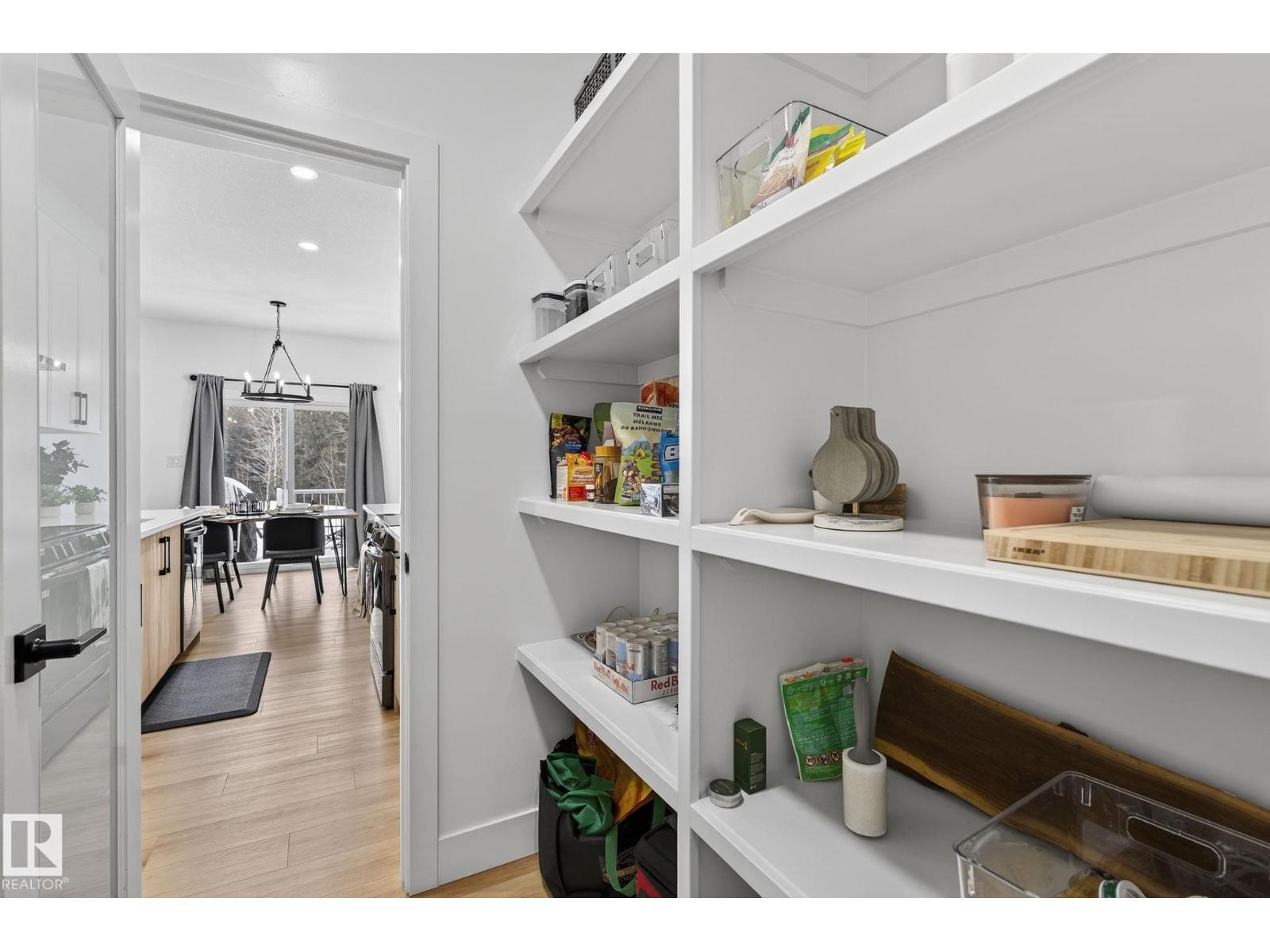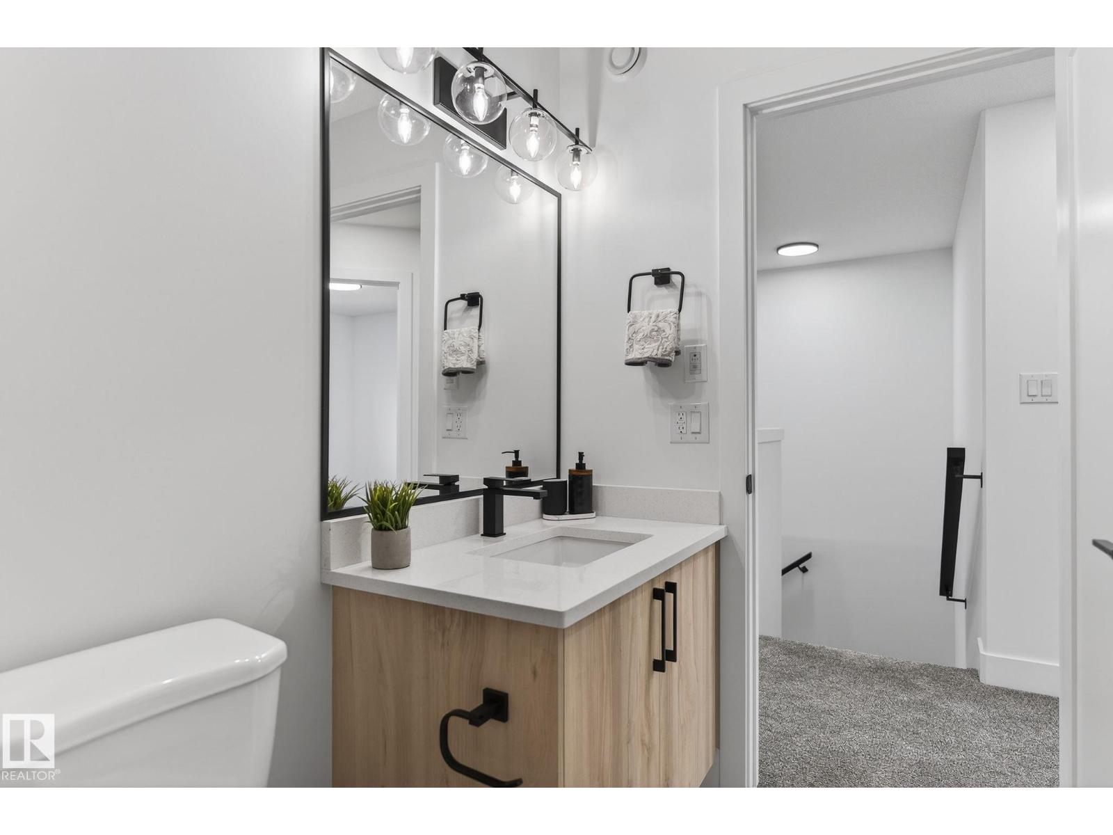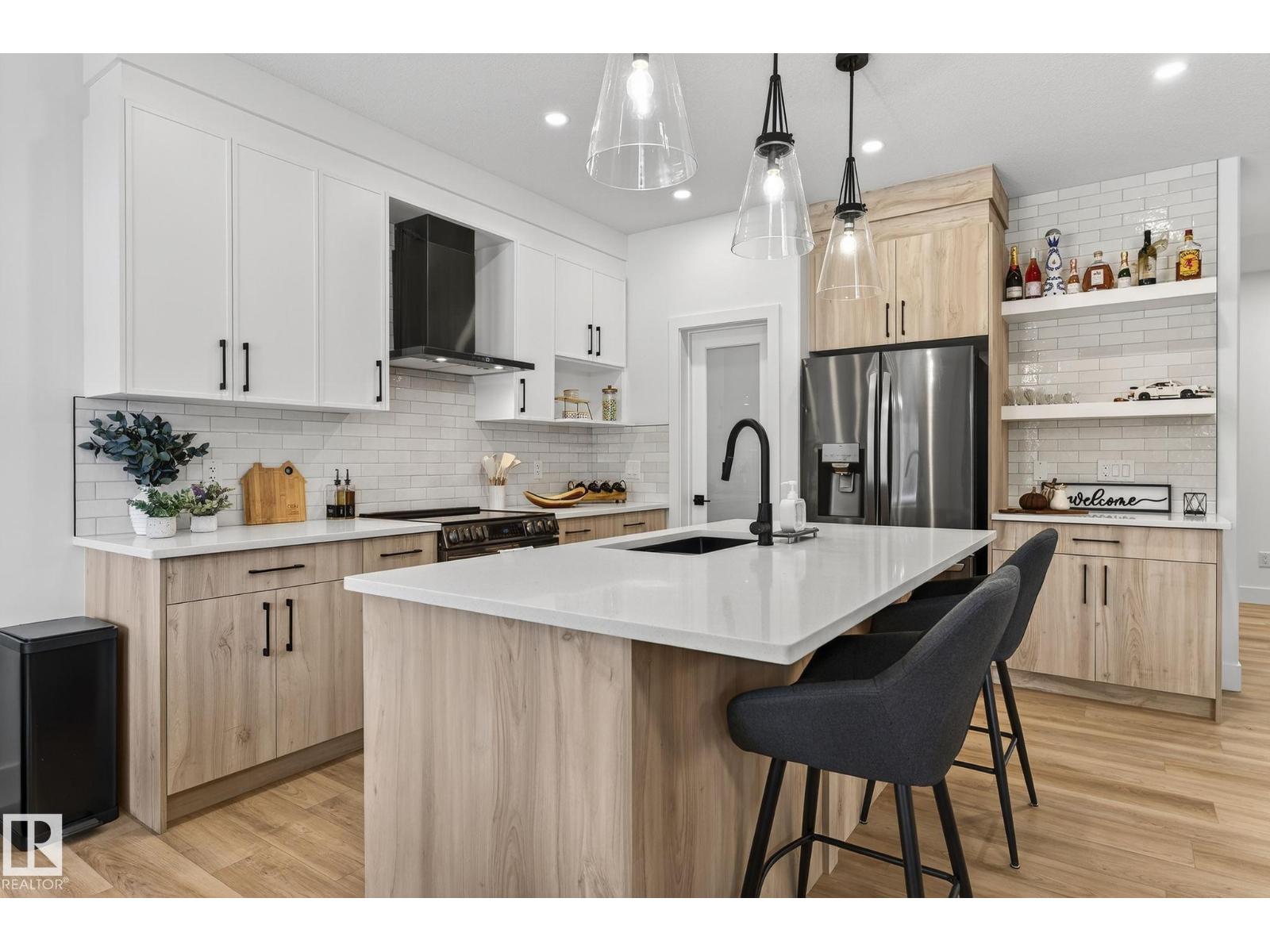Welcome to this beautiful half duplex in Harvest Ridge, perfectly positioned backing onto mature trees. The main floor is thoughtfully designed with a bright, open-concept filled with natural light, which makes an immediate impression with its modern floor-to-ceiling feature wall and sleek electric fireplace. The kitchen is beautifully appointed with quartz countertops, soft-close cabinetry, and a walk-through pantry. Upstairs, a spacious bonus room offers flexible living space, while the primary suite offers a 4-piece ensuite and a generous walk-in closet that conveniently connects to the laundry room. Two additional bedrooms and a second 4-piece bath complete this level. Thoughtfully designed with MDF shelving throughout every closet, pantry, and mudroom, plus upgrades like a garage drain and BBQ gas line, blending style with function. A fully fenced backyard and an unfinished basement with a side entrance offer incredible future potential. This home is move-in ready and beautifully finished! (id:63190)