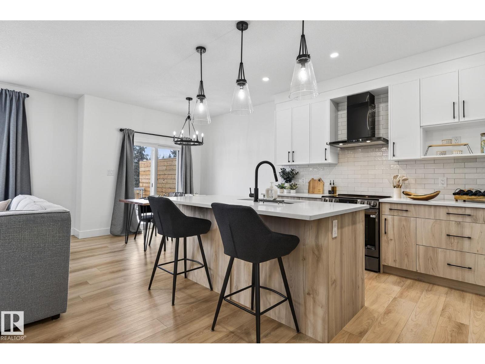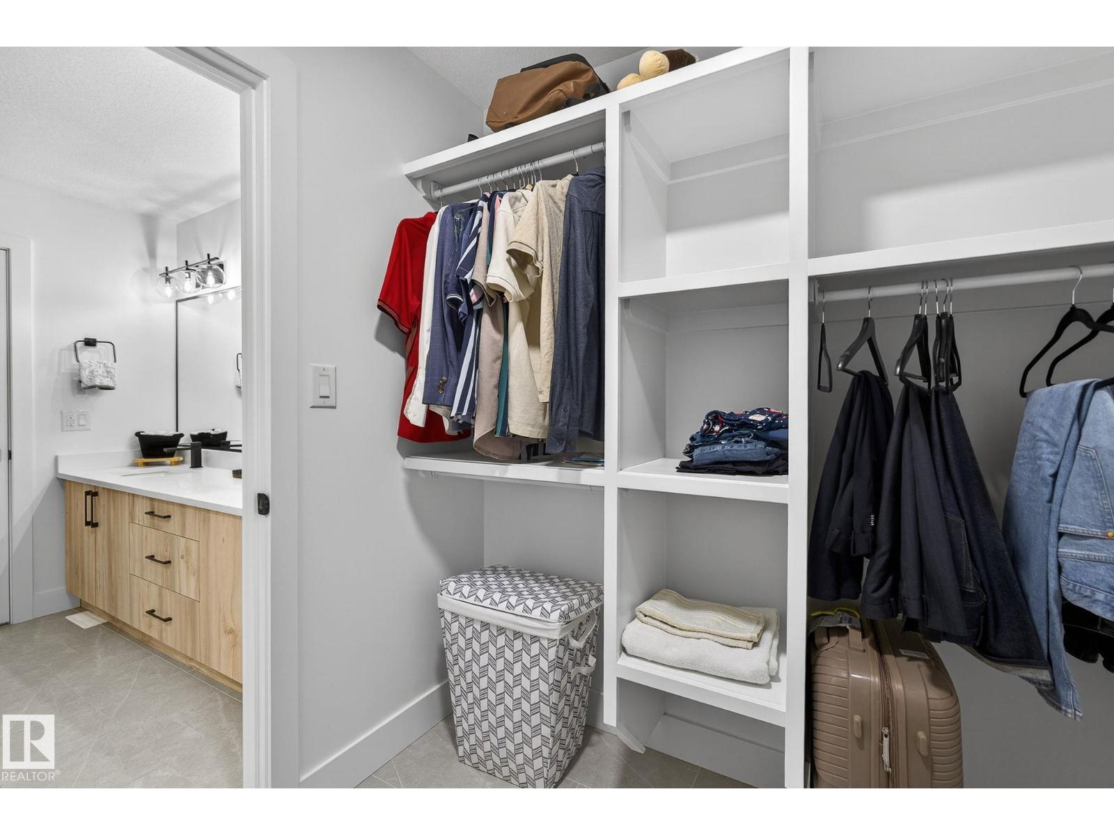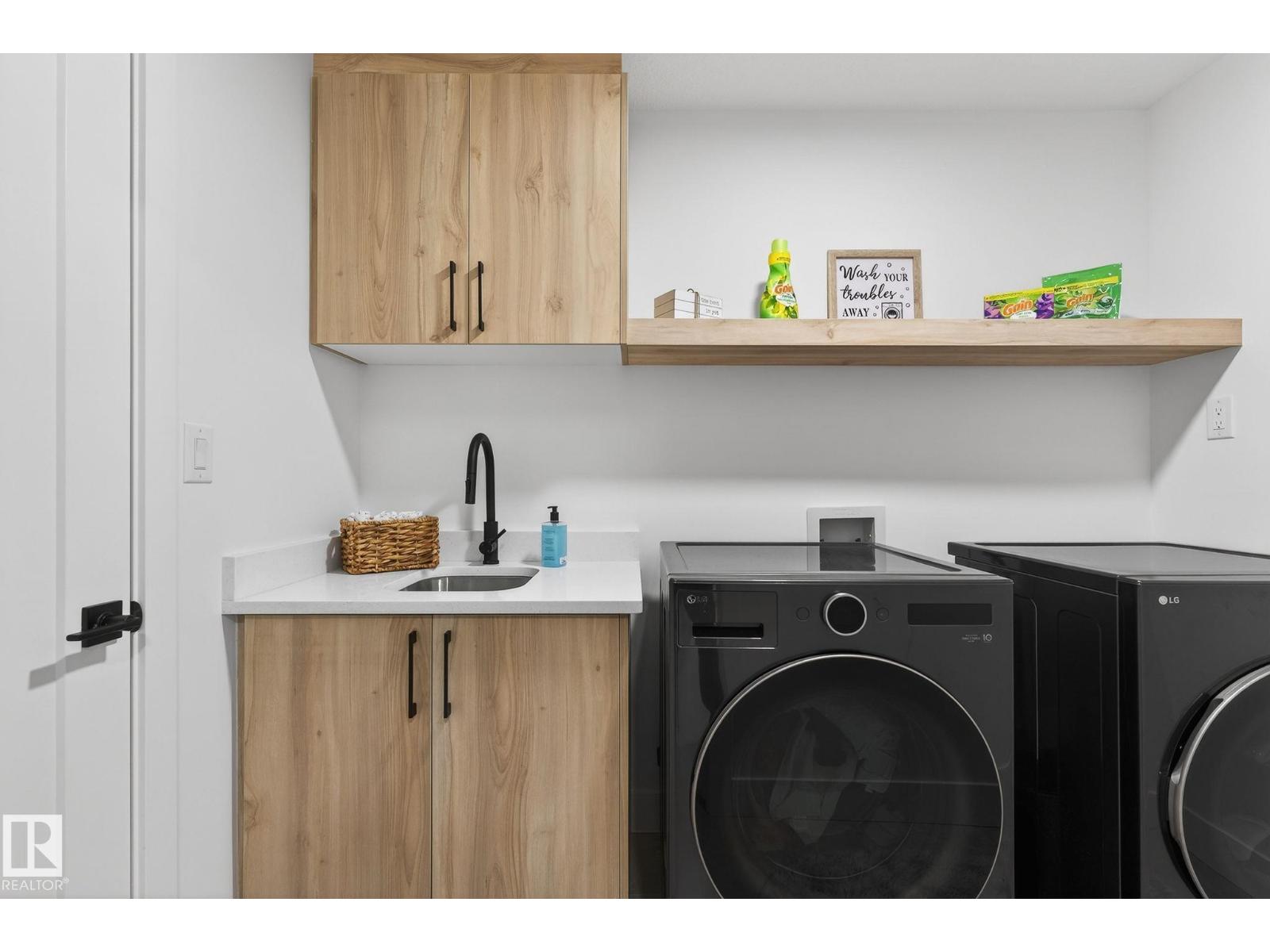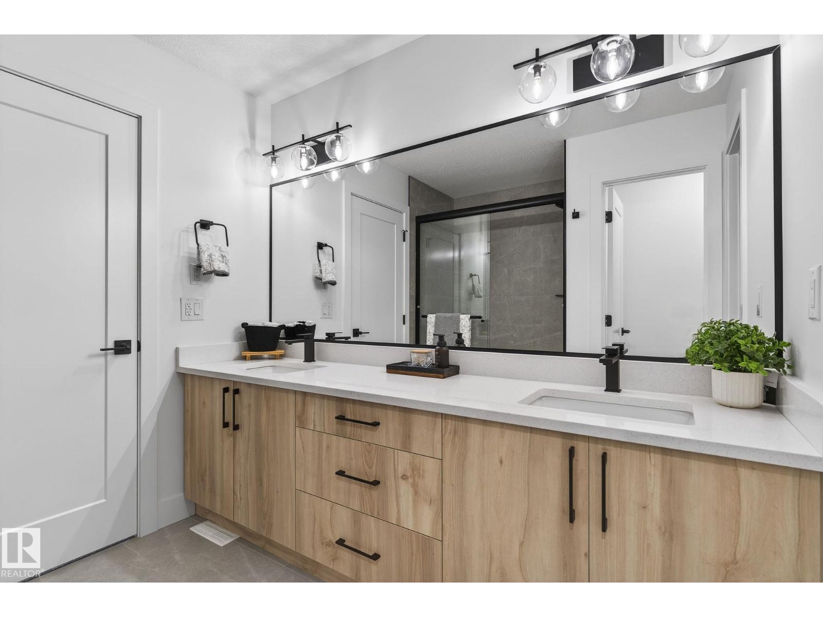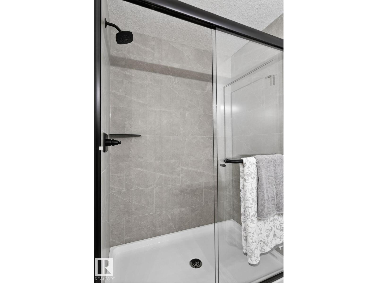 Welcome to this beautiful half duplex in Harvest Ridge, perfectly positioned backing onto mature trees. The main floor is thoughtfully designed with a bright, open-concept filled with natural light, which makes an immediate impression with its modern floor-to-ceiling feature wall and sleek electric fireplace. The kitchen is beautifully appointed with quartz countertops, soft-close cabinetry, and a walk-through pantry. Upstairs, a spacious bonus room offers flexible living space, while the primary suite offers a 4-piece ensuite and a generous walk-in closet that conveniently connects to the laundry room. Two additional bedrooms and a second 4-piece bath complete this level. Thoughtfully designed with MDF shelving throughout every closet, pantry, and mudroom, plus upgrades like a garage drain and BBQ gas line, blending style with function. A fully fenced backyard and an unfinished basement with a side entrance offer incredible future potential. This home is move-in ready and beautifully finished! (id:63190)