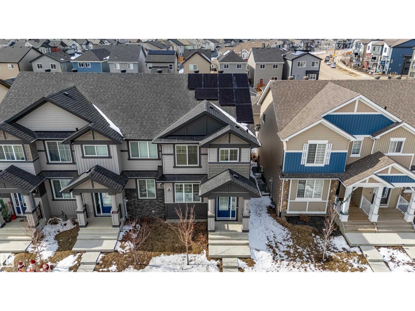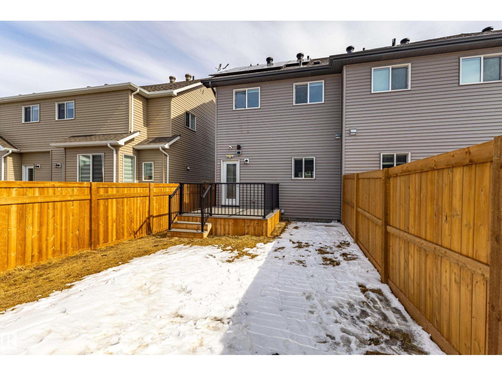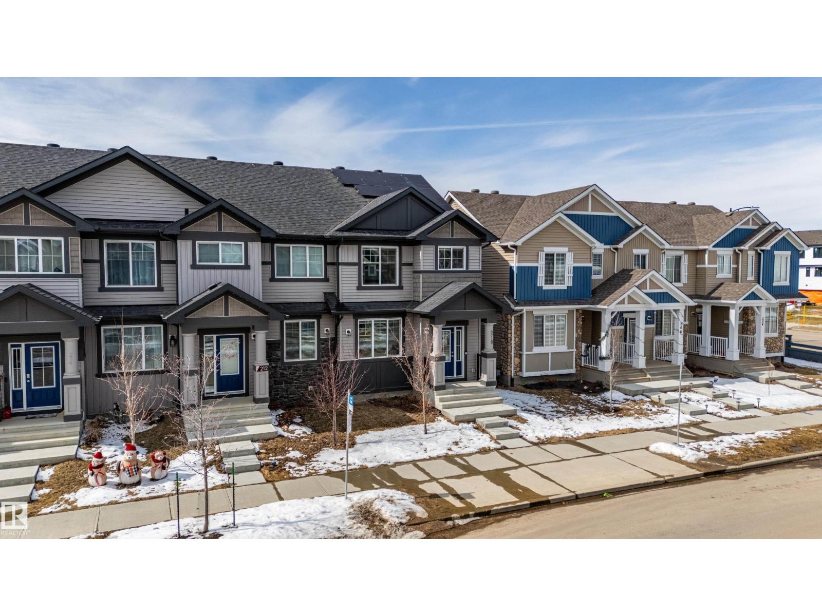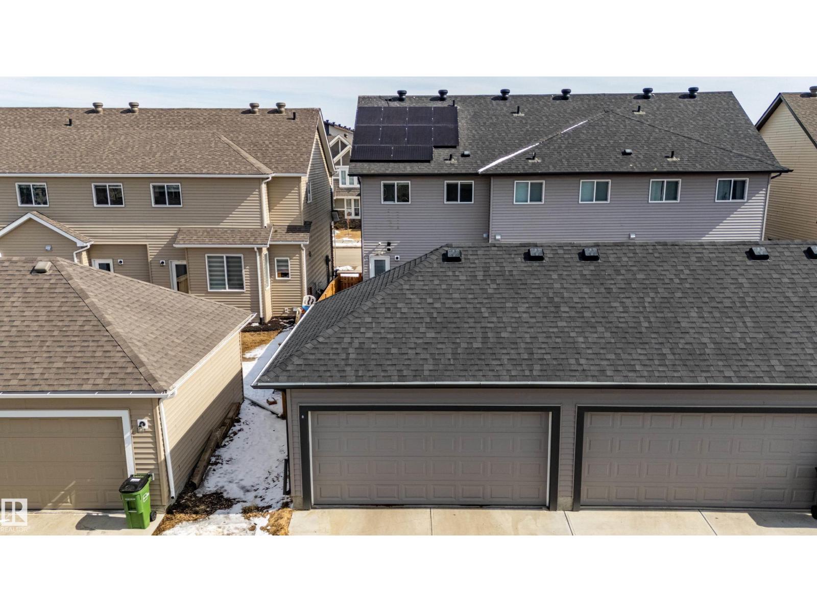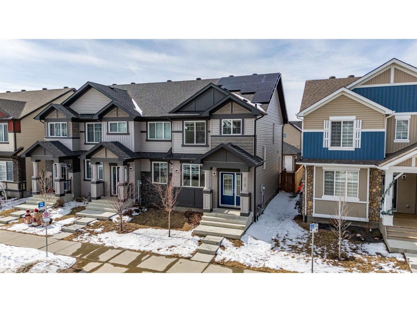 Delightful Desrochers 1350 ft 3 Bed, 2.5 Bath END UNIT Townhome with NO CONDO FEES! Everything you could ask for including: 9 FT Ceilings, SOLAR PANELS (7.38 kw), Quartz Counters, Stainless App’s & EV Car Charger in the Double Garage. Spacious front foyer & very OPEN main floor with living room flowing through to dining and the kitchen at the back has a large island, quartz counter tops and lots of cabinets. Main floor laundry area at the Rear entrance, and the ½ bath is strategically located at the basement entry. The Basement with 9 FT Ceilings awaits your finishing touches and includes HRV system! Upstairs you’ll find the 2 children’s rooms & full 4 PC bath. The primary suite is large with a full ensuite and a large walk-in closet. Landscaping, Fencing and Deck are ALL Completed. Super Location across from the street from School and WALKING distance to Trails and ALL Amenities & Shops. Close to FUTURE LRT. Bus stop conveniently located in front of the home. Close to the Anthony Henday and QE2 too! (id:63190)