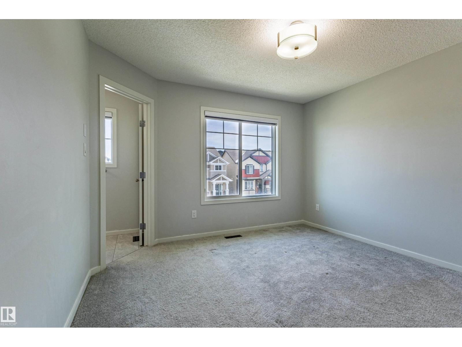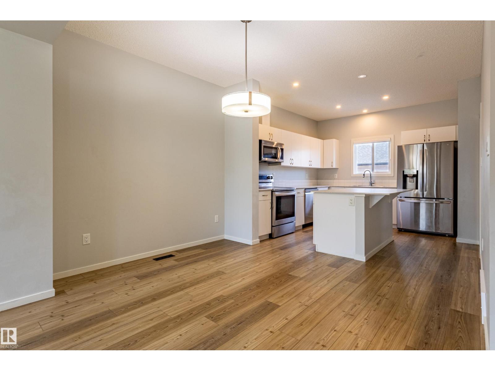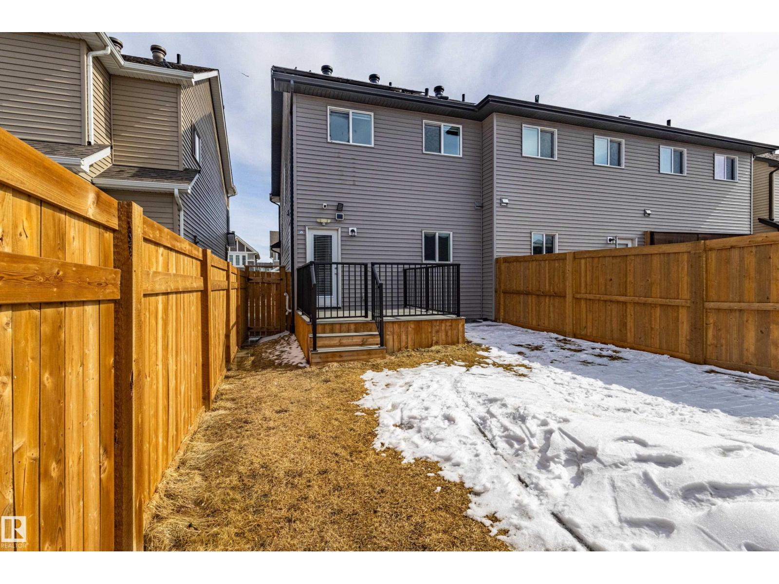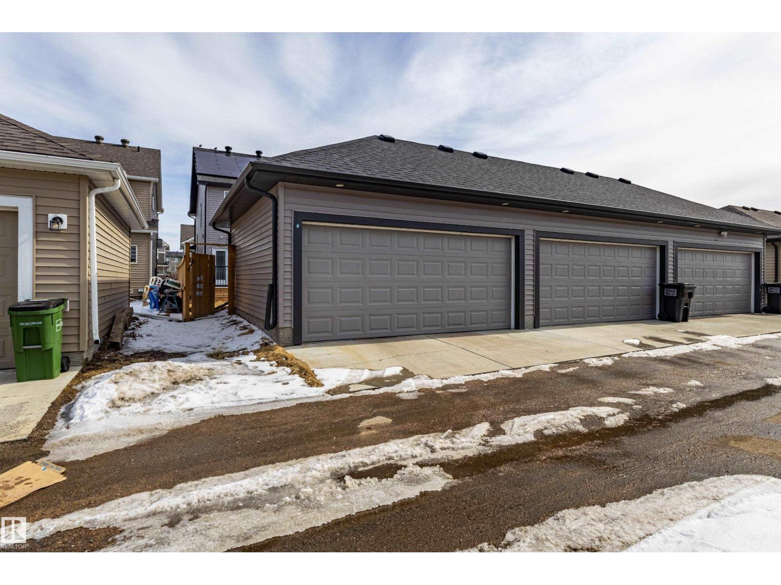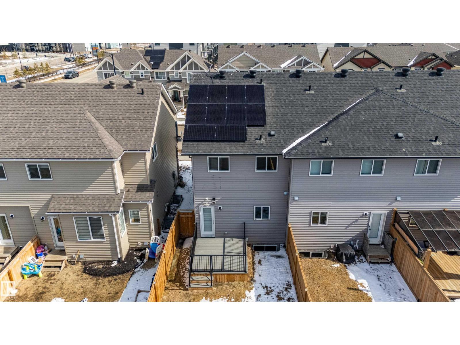 Delightful Desrochers 1350 ft 3 Bed, 2.5 Bath END UNIT Townhome with NO CONDO FEES! Everything you could ask for including: 9 FT Ceilings, SOLAR PANELS (7.38 kw), Quartz Counters, Stainless App’s & EV Car Charger in the Double Garage. Spacious front foyer & very OPEN main floor with living room flowing through to dining and the kitchen at the back has a large island, quartz counter tops and lots of cabinets. Main floor laundry area at the Rear entrance, and the ½ bath is strategically located at the basement entry. The Basement with 9 FT Ceilings awaits your finishing touches and includes HRV system! Upstairs you’ll find the 2 children’s rooms & full 4 PC bath. The primary suite is large with a full ensuite and a large walk-in closet. Landscaping, Fencing and Deck are ALL Completed. Super Location across from the street from School and WALKING distance to Trails and ALL Amenities & Shops. Close to FUTURE LRT. Bus stop conveniently located in front of the home. Close to the Anthony Henday and QE2 too! (id:63190)