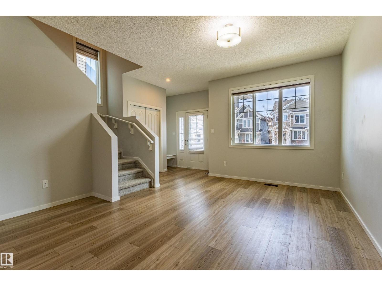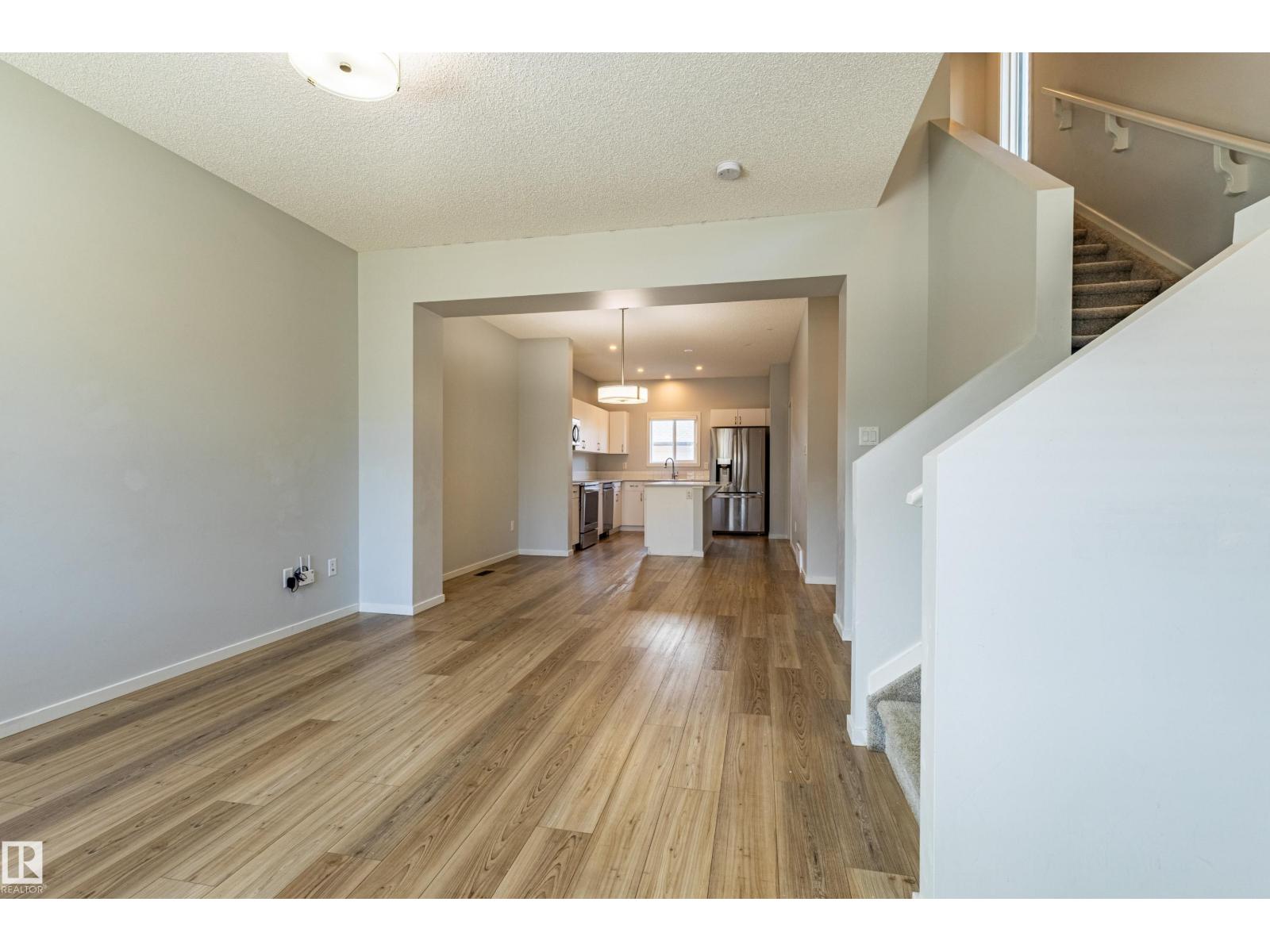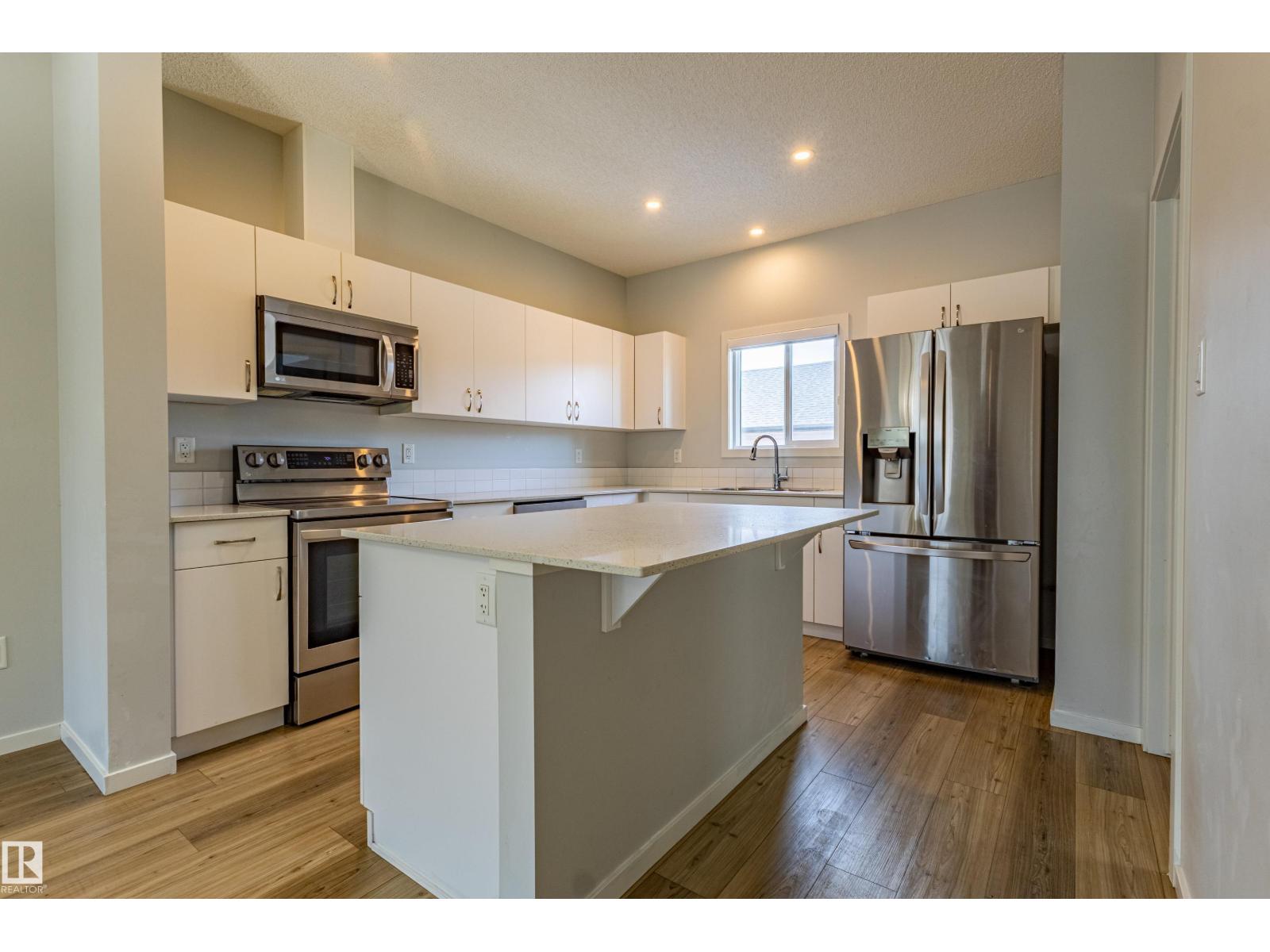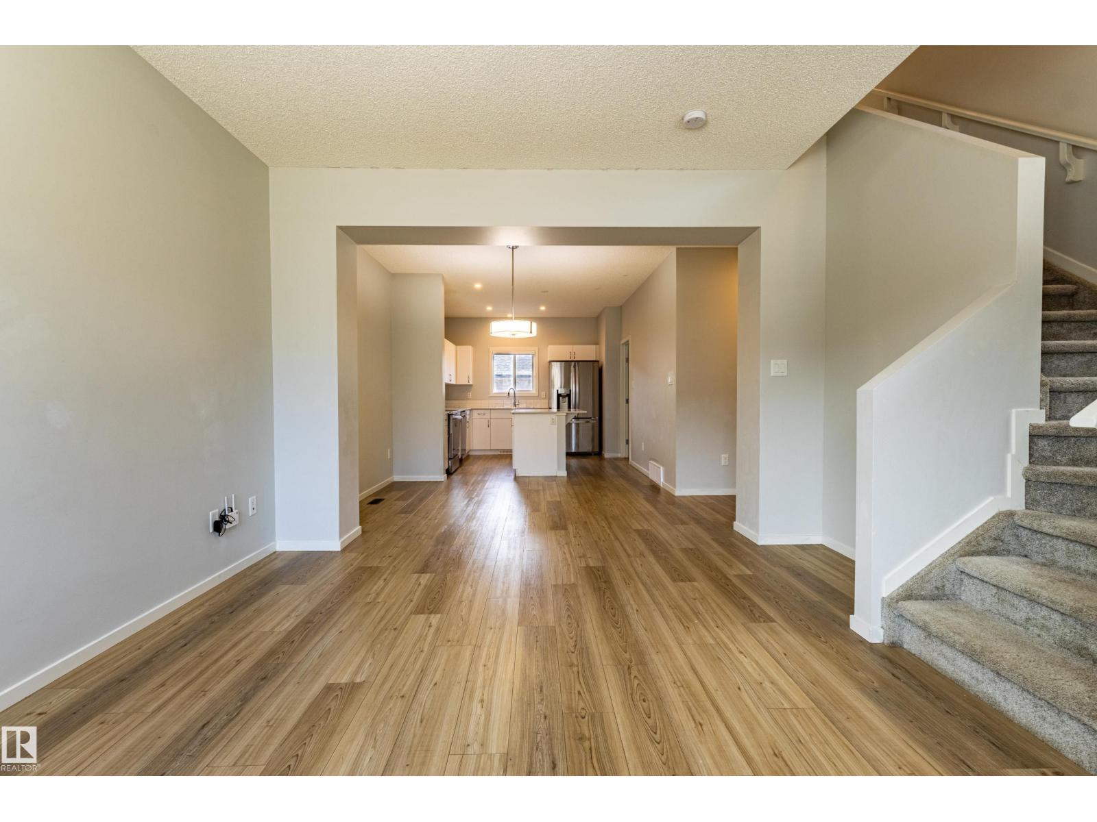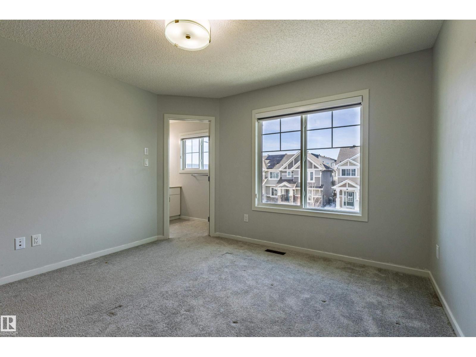 Delightful Desrochers 1350 ft 3 Bed, 2.5 Bath END UNIT Townhome with NO CONDO FEES! Everything you could ask for including: 9 FT Ceilings, SOLAR PANELS (7.38 kw), Quartz Counters, Stainless App’s & EV Car Charger in the Double Garage. Spacious front foyer & very OPEN main floor with living room flowing through to dining and the kitchen at the back has a large island, quartz counter tops and lots of cabinets. Main floor laundry area at the Rear entrance, and the ½ bath is strategically located at the basement entry. The Basement with 9 FT Ceilings awaits your finishing touches and includes HRV system! Upstairs you’ll find the 2 children’s rooms & full 4 PC bath. The primary suite is large with a full ensuite and a large walk-in closet. Landscaping, Fencing and Deck are ALL Completed. Super Location across from the street from School and WALKING distance to Trails and ALL Amenities & Shops. Close to FUTURE LRT. Bus stop conveniently located in front of the home. Close to the Anthony Henday and QE2 too! (id:63190)