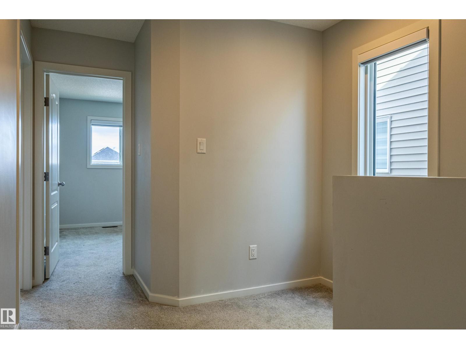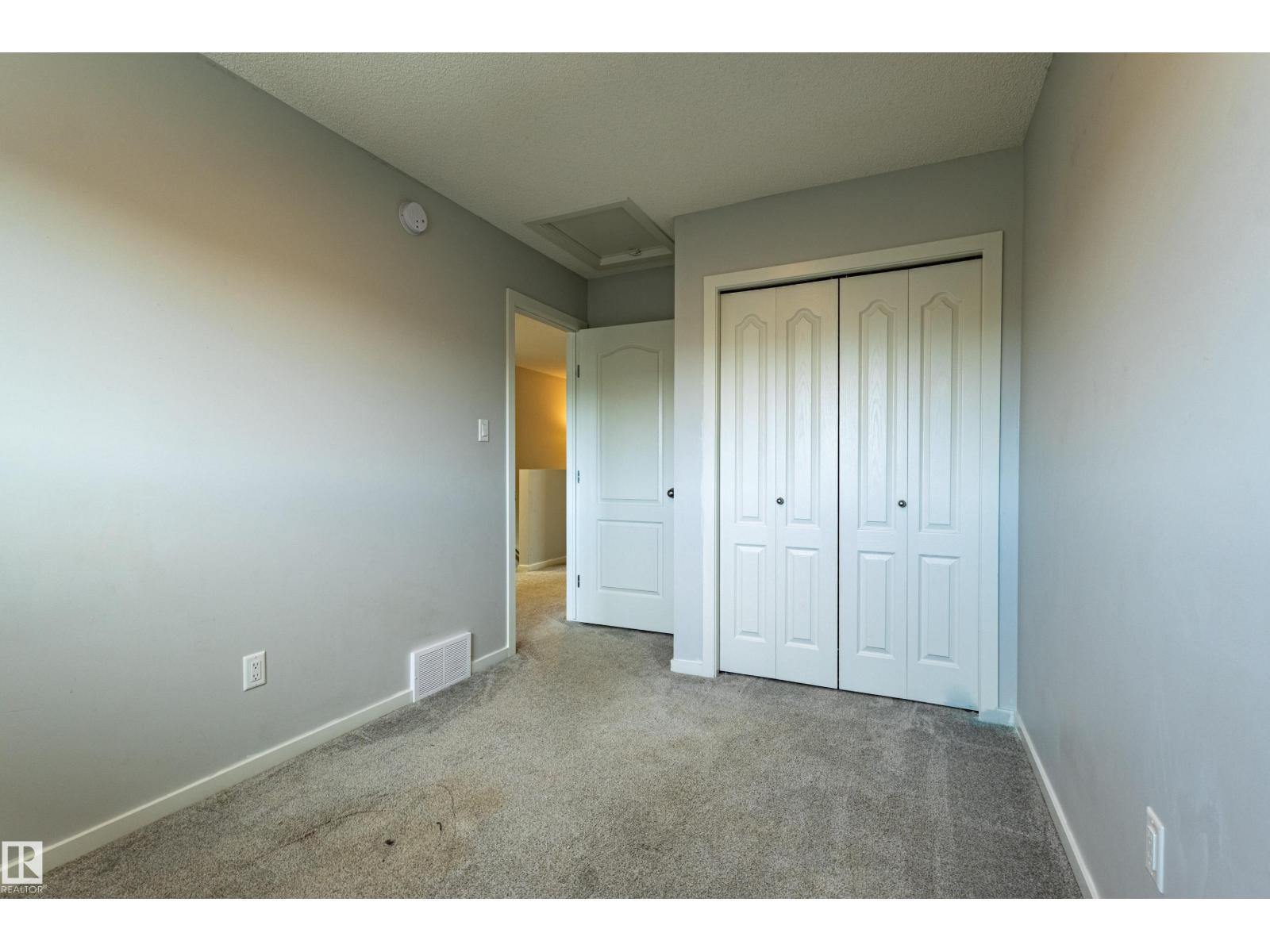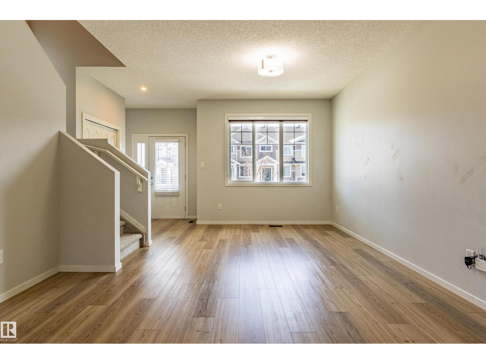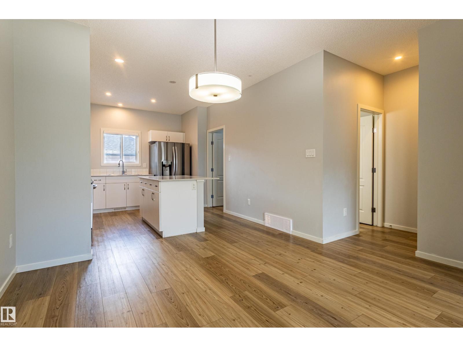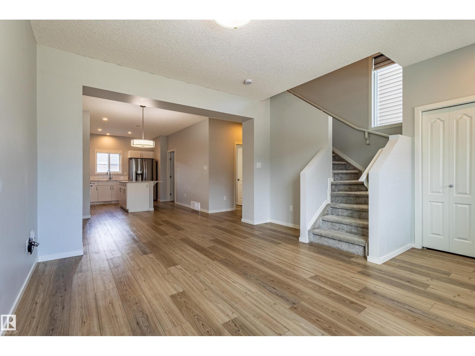 Delightful Desrochers 1350 ft 3 Bed, 2.5 Bath END UNIT Townhome with NO CONDO FEES! Everything you could ask for including: 9 FT Ceilings, SOLAR PANELS (7.38 kw), Quartz Counters, Stainless App’s & EV Car Charger in the Double Garage. Spacious front foyer & very OPEN main floor with living room flowing through to dining and the kitchen at the back has a large island, quartz counter tops and lots of cabinets. Main floor laundry area at the Rear entrance, and the ½ bath is strategically located at the basement entry. The Basement with 9 FT Ceilings awaits your finishing touches and includes HRV system! Upstairs you’ll find the 2 children’s rooms & full 4 PC bath. The primary suite is large with a full ensuite and a large walk-in closet. Landscaping, Fencing and Deck are ALL Completed. Super Location across from the street from School and WALKING distance to Trails and ALL Amenities & Shops. Close to FUTURE LRT. Bus stop conveniently located in front of the home. Close to the Anthony Henday and QE2 too! (id:63190)