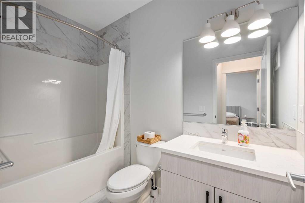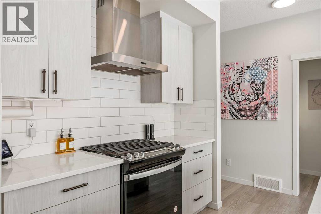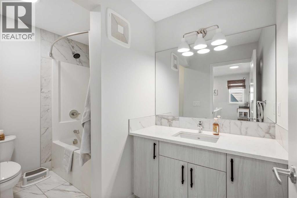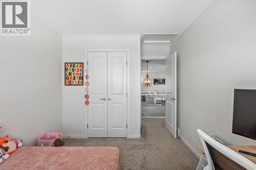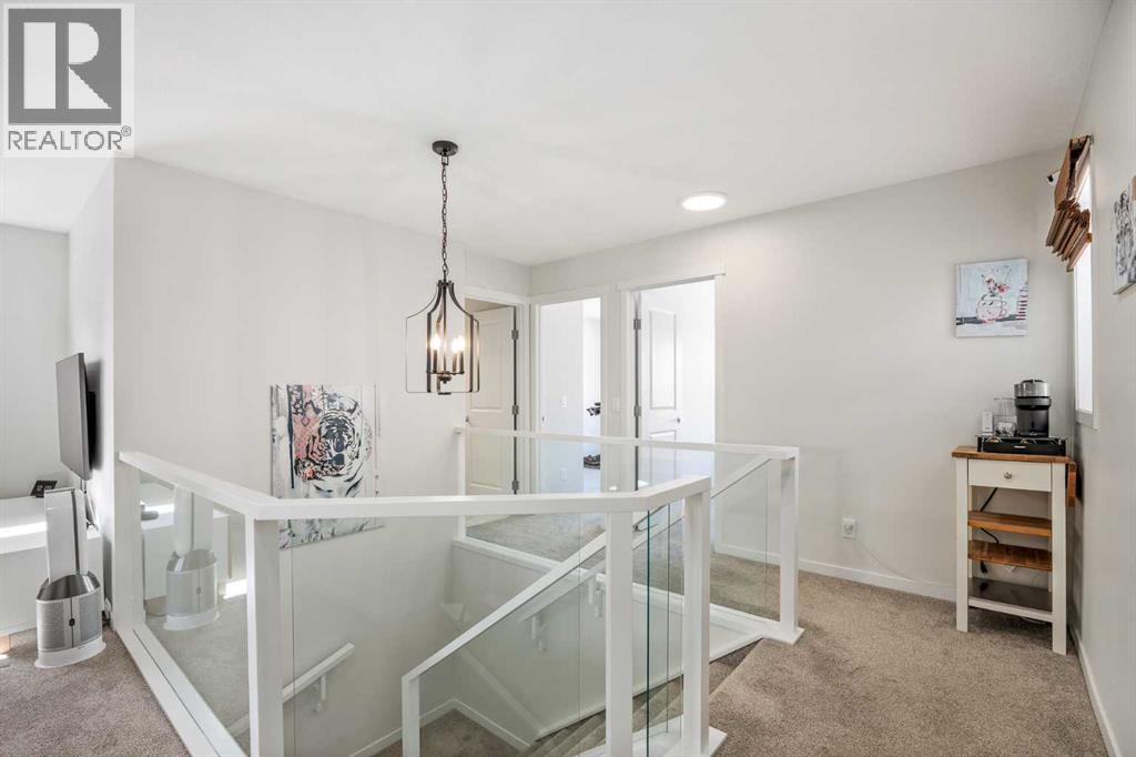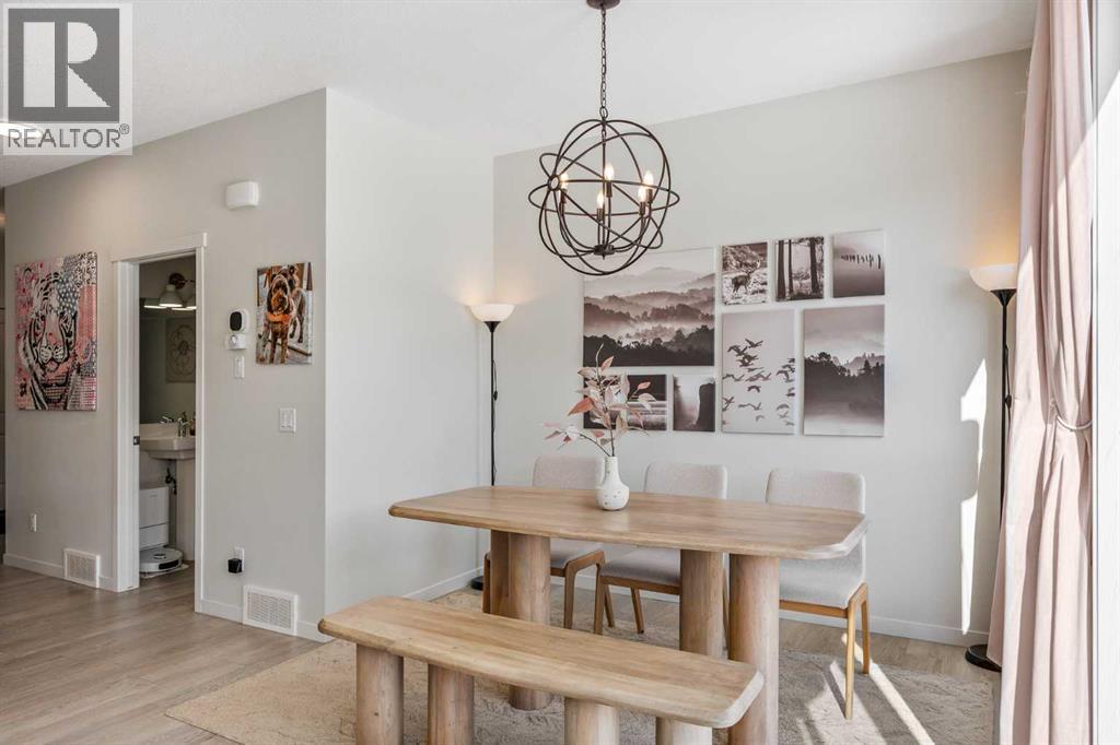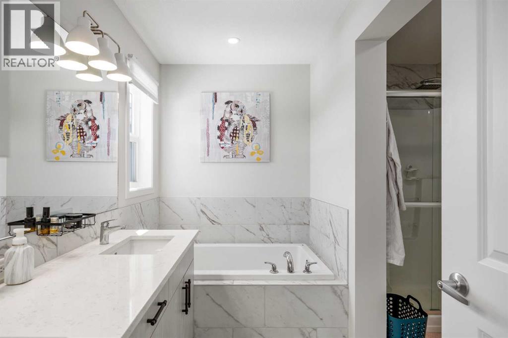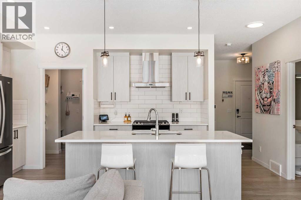 Welcome to this beautifully finished, fully developed home in Mahogany, offering over 1,700 sq ft above grade plus a builder finished basement for a truly turnkey opportunity. Thoughtfully designed in warm, modern tones, this home stands out with an airy Scandinavian inspired feel, a functional family layout, and one of its most compelling features: an exceptional indoor-outdoor living experience that is rarely found in the area. From the moment you step inside, the home makes a strong first impression with a spacious front entry, complete with a front closet and convenient access to both the upper and lower levels. As you move into the heart of the home, the layout opens up beautifully with a central kitchen that anchors the space while overlooking the back dining area and living room, creating the kind of connected main floor that works just as well for daily life as it does for entertaining. The kitchen is a true showpiece, finished with stylish white oak-inspired cabinetry, black hardware, raised cabinetry to the bulkhead, stainless steel appliances, a gas stove, elongated white subway tile backsplash, and white quartz counters with soft grey veining. A large central island offers plenty of prep space and casual seating, while the walk-through pantry connects seamlessly to the back mudroom and double attached garage. At the rear of the home, the living and dining spaces are filled with natural light through the wall to wall windows and patio doors, designed to make the most of the backyard setting (but don't worry the central A/C will keep you cool all summer long). The living room is warm and inviting, highlighted by an electric fireplace with a wood mantle and built-in wood shelving. The dining area is generously sized with a modern light fixture above, while dual central sliding patio doors create a standout feature, opening the home to the deck and oversized backyard beyond. With more outdoor space than many homes in the area and trees along the back, this s etting creates a rare and highly desirable indoor-outdoor lifestyle. Upstairs, a central bonus room with a transom window creates a bright and versatile second living space, while glass railing wraps the upper level and enhances the open feel throughout. The primary suite is a relaxing retreat with a walk-in closet complete with organizers and a beautifully finished 5 piece ensuite featuring dual sinks, a soaker tub, a standalone shower, and marble look vinyl tile flooring. Two additional bedrooms, a full 4 piece bathroom, and a separate laundry room complete the upper level. The fully finished basement adds even more value, offering a central rec room, a full bedroom, a 4-piece bathroom, and a mechanical room that still provides excellent storage. Located close to two playgrounds and in one of Calgary’s most sought-after lake communities, Mahogany offers an unmatched lifestyle with lake access, beaches, pathways, parks, schools, shops, and restaurants all nearby. (id:63190)