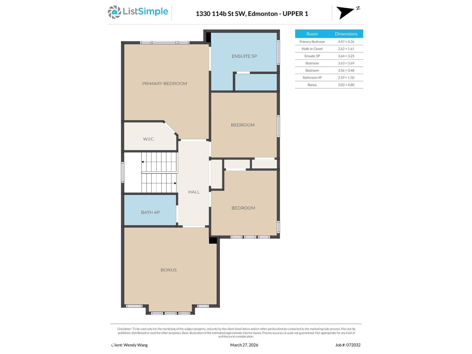 | Primary Bedroom | Upper Level | 4.47 x 4.26 | — |