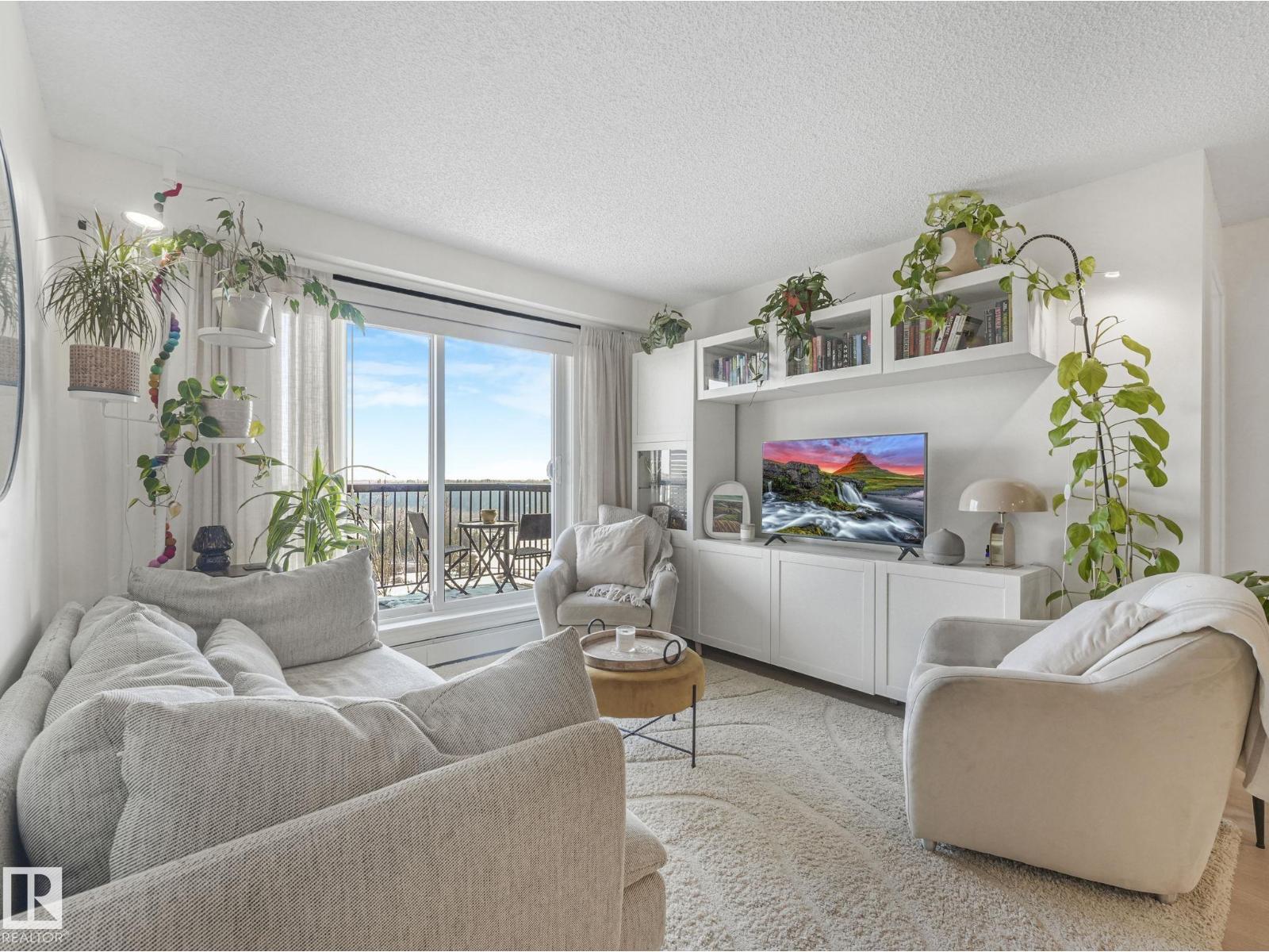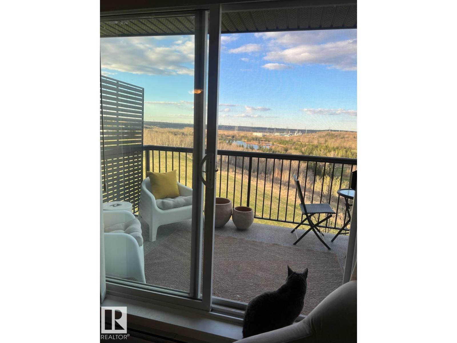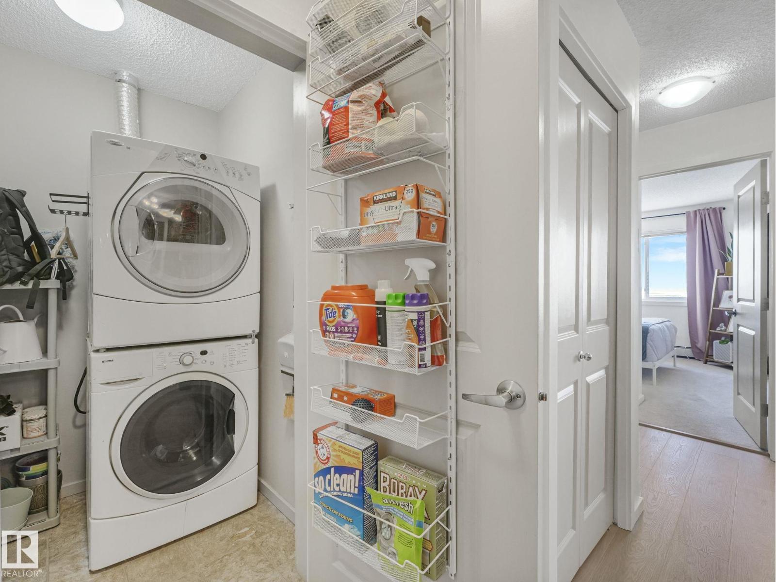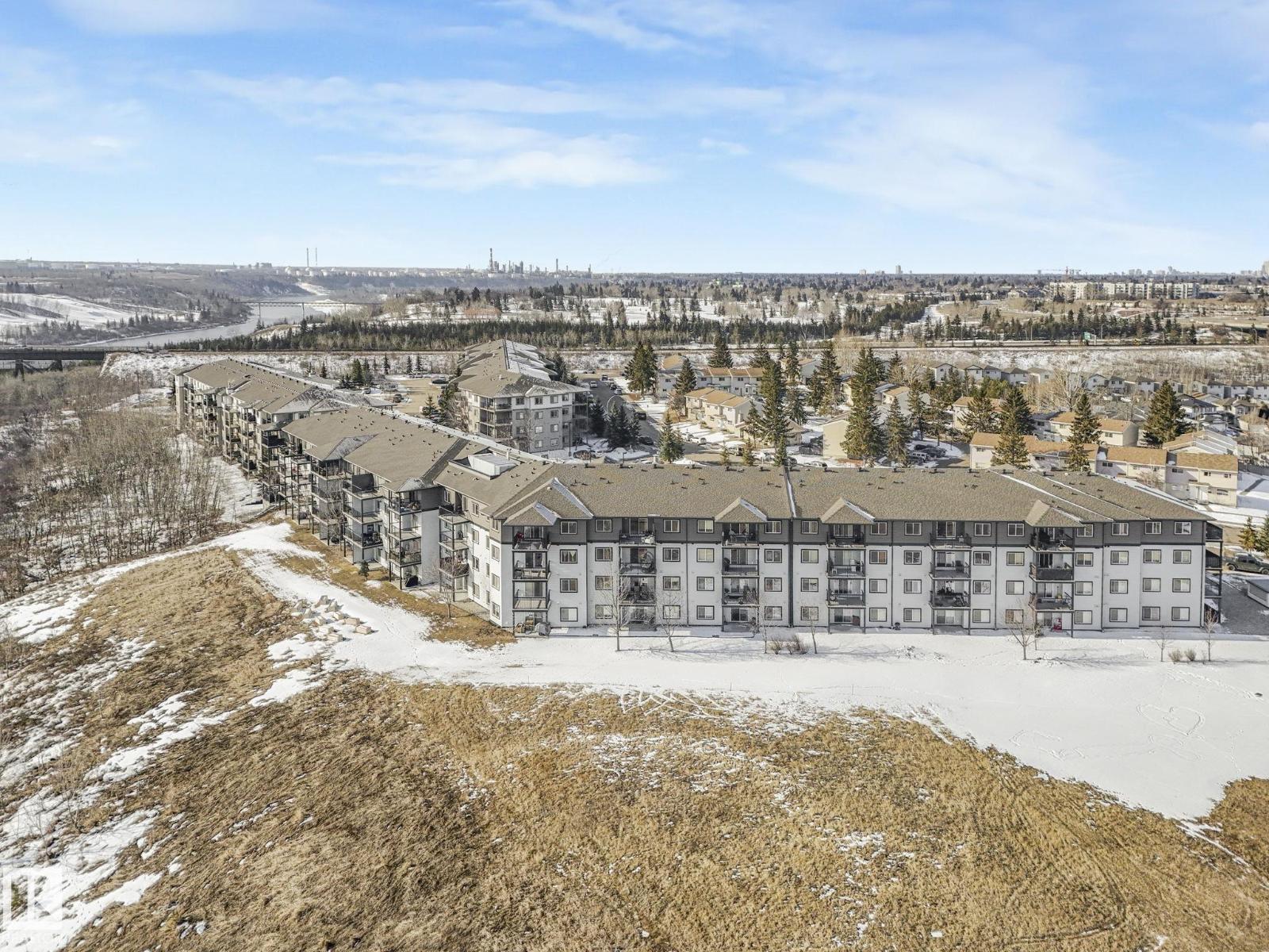 TOP FLOOR, bright, updated unit with unobstructed views of the river valley! 810 sq ft, 2 bedrooms / 2 full baths, plus 2 titled UNDERGROUND HEATED parking stalls and storage cage (located on the same floor as the suite). Open-concept layout with an island kitchen with stainless steel appliances, pantry, a new built-in coffee nook. Fresh white paint throughout, and new laminate flooring in kitchen/living room. Microwave/hoodfan, dishwasher, kitchen faucet are new. Unit has insuite laundry! Easy access to Victoria Trail, Yellowhead, and the Henday + ample visitor parking. (id:63190)