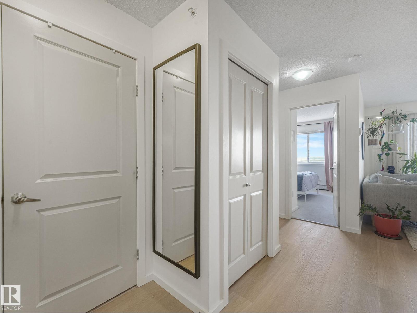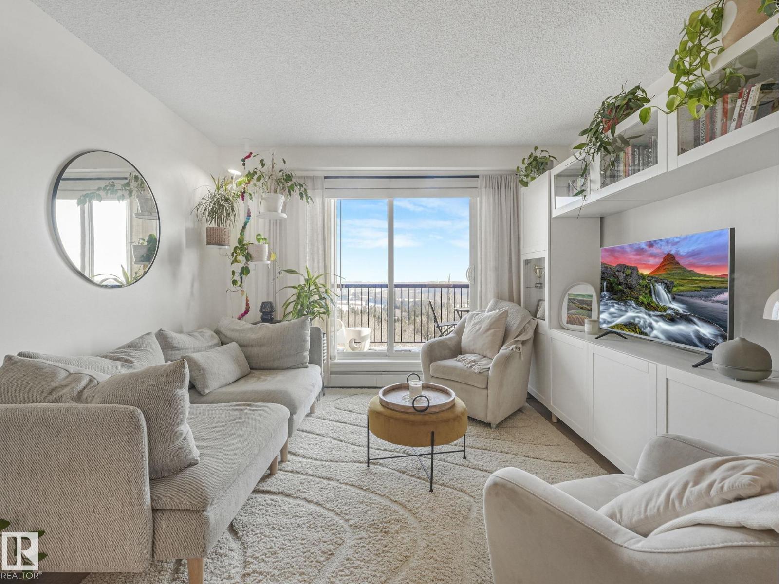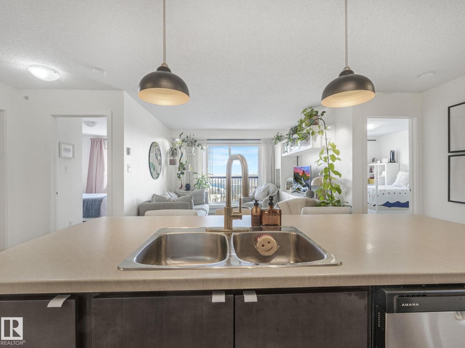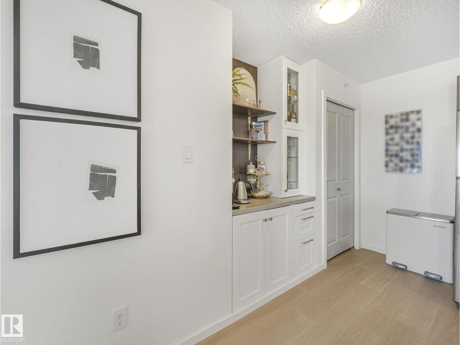 TOP FLOOR, bright, updated unit with unobstructed views of the river valley! 810 sq ft, 2 bedrooms / 2 full baths, plus 2 titled UNDERGROUND HEATED parking stalls and storage cage (located on the same floor as the suite). Open-concept layout with an island kitchen with stainless steel appliances, pantry, a new built-in coffee nook. Fresh white paint throughout, and new laminate flooring in kitchen/living room. Microwave/hoodfan, dishwasher, kitchen faucet are new. Unit has insuite laundry! Easy access to Victoria Trail, Yellowhead, and the Henday + ample visitor parking. (id:63190)