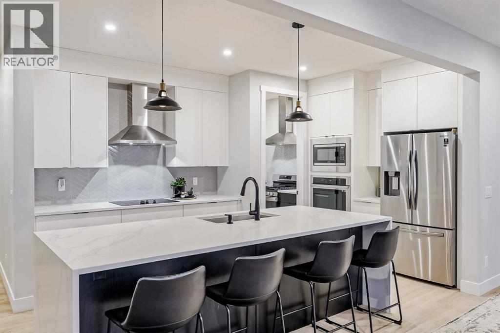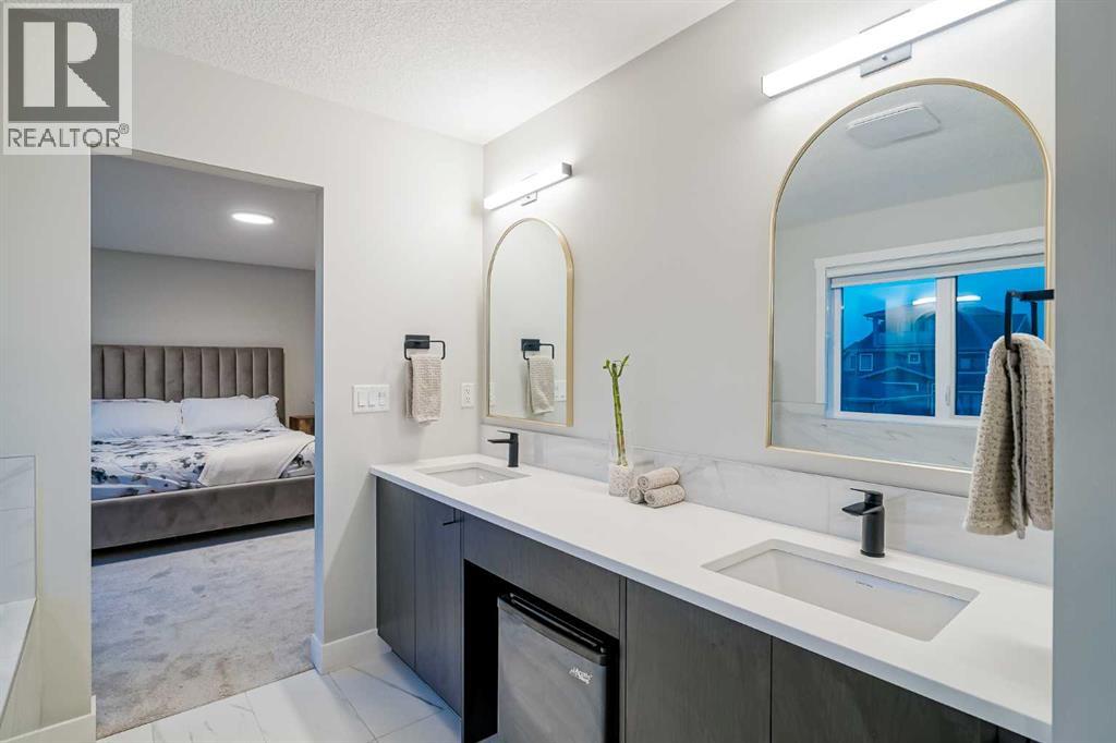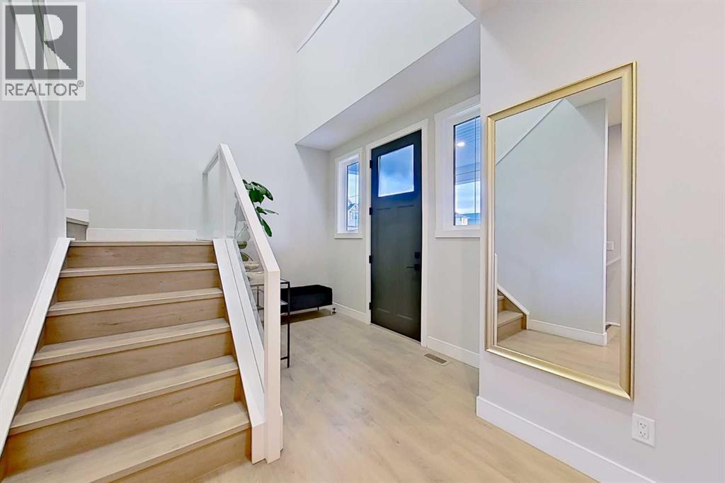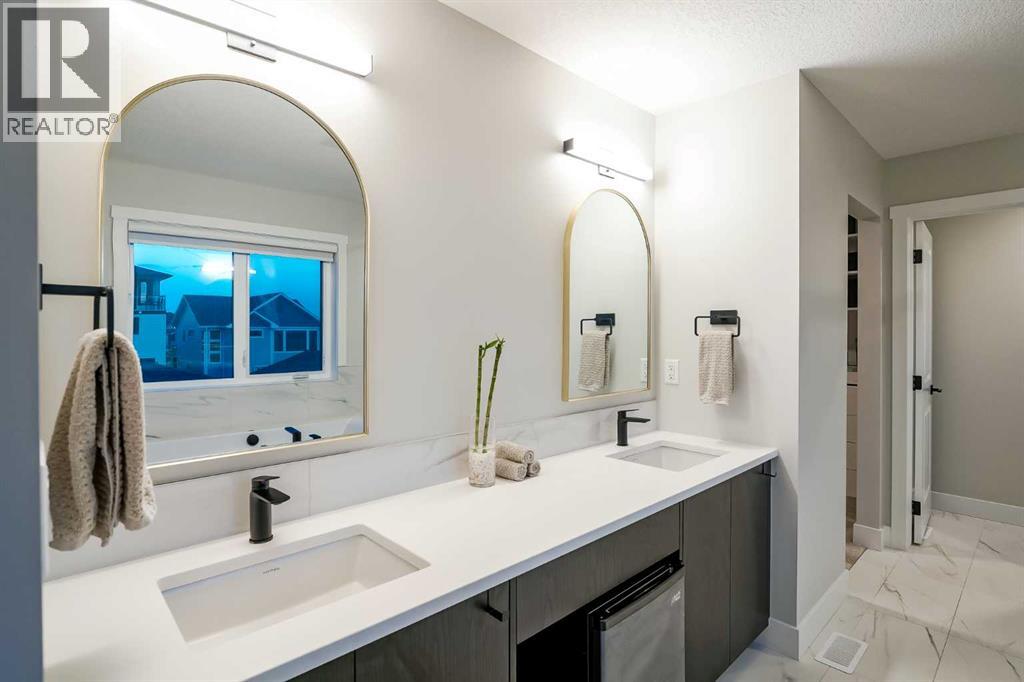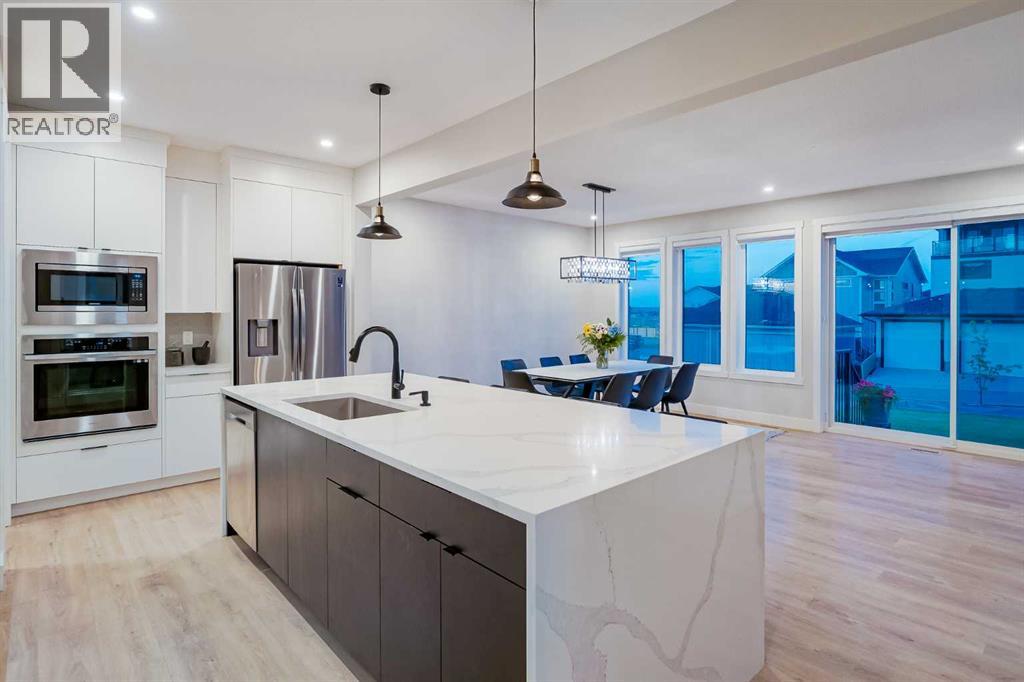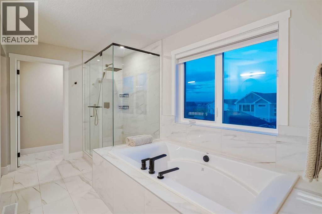 Welcome to this beautifully crafted 2022-built home in the award-winning community of Harmony, offering over 4,000 sqft of thoughtfully designed living space with luxurious finishes throughout. From the moment you walk in, you’ll notice the attention to detail—large windows on the main floor flood the home with natural light, highlighting the elegant design of the spacious living room and dining area, perfect for family gatherings and entertaining. The main floor also features a dedicated office, ideal for working from home in peace and comfort. The heart of the home is a showstopper: a stunning kitchen with a sleek stovetop and a private spice kitchen equipped with a gas range, giving you the flexibility to cook and entertain with ease. Upstairs, you’ll find a bright and open bonus room, perfect for a second lounge or kids’ play area. The primary bedroom is a true retreat with custom-fitted closets and a spa-inspired ensuite featuring double vanities and high-end finishes. The fully developed basement offers two spacious bedrooms and has been roughed-in with all plumbing extensions in place for a future kitchen, making it an excellent option for extended family. The home also includes central air conditioning to keep you comfortable all year round. Situated in Harmony, you’ll enjoy access to the lake, beach, community fire pits, beach volleyball court, skating rink, scenic pathways, parks, and an unmatched lifestyle just minutes from the city and steps from the mountains. This is more than just a home—it’s a lifestyle. (id:63190)