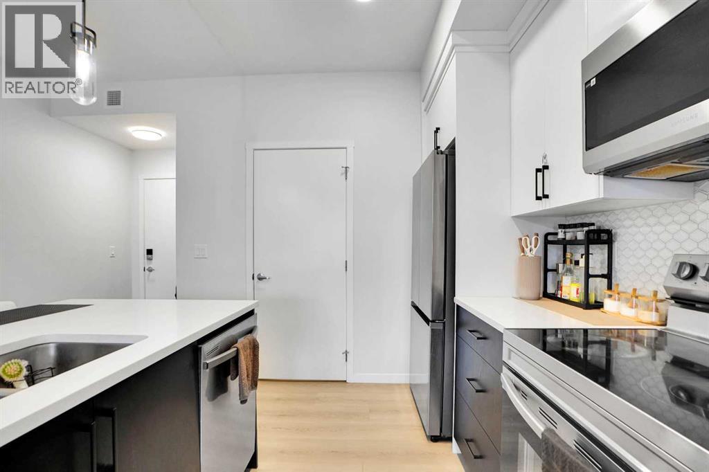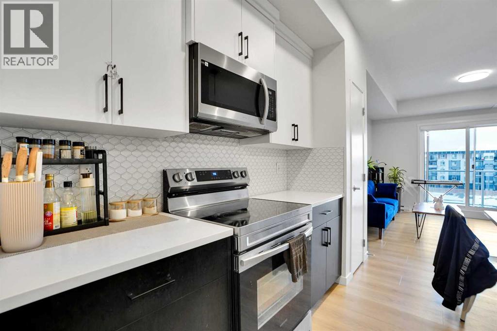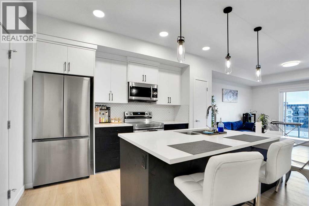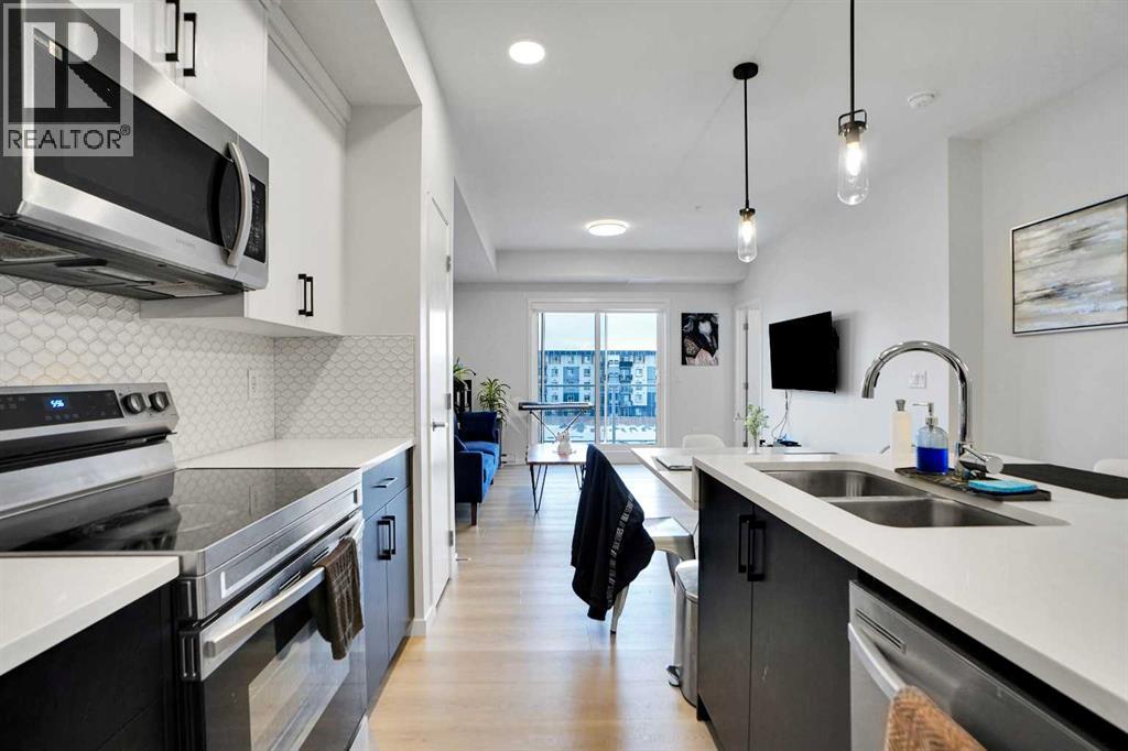 Welcome to Unit 4407 at 550 Belmont Street SW, located in the vibrant and growing community of Belmont. This well-designed condominium offers a modern layout with thoughtful finishes, ideal for first-time buyers, downsizers, or investors.The unit features an open-concept living space with a bright and functional layout, seamlessly connecting the kitchen, dining, and living areas. The kitchen is equipped with contemporary cabinetry, quality appliances, and ample counter space, making it both practical and stylish for everyday use.Large windows allow for plenty of natural light, creating a comfortable and inviting atmosphere throughout. The bedrooms are well-proportioned, and the unit is complemented by two full bathrooms designed with clean, modern finishes.Additional features include in-suite laundry, private balcony, and assigned parking, adding to the overall convenience and appeal.Situated close to parks, pathways, shopping, and major roadways, this home offers easy access to everything you need while being part of a growing southwest Calgary community.An excellent opportunity to own a low-maintenance home in a desirable location. (id:63190)