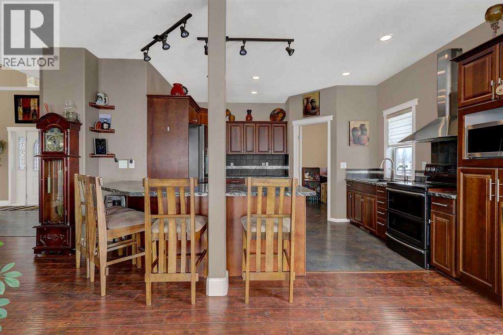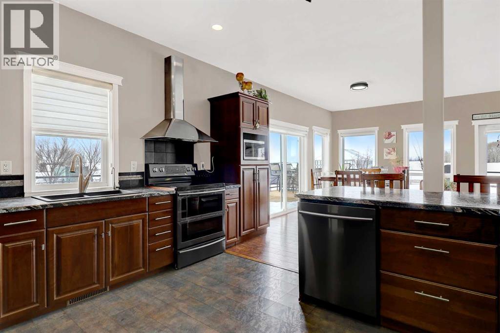 Just minutes west of Bear Creek Golf Course and only five minutes from Costco, this stunning 4 acre property offers the perfect blend of convenience, privacy, and lifestyle. For those needing a serious workspace, the 42x48 shop features 16-foot walls, a 14’ O/H door, 2 pc bath, wash sink, full tin interior, in-floor heat, 220-volt power, and sumps. Walls of workbenches are included, making it a highly functional and ready-to-use space. This impressive 2-storey residence spans 2,769 sq. ft. with a grand entry that welcomes you. Nearby den is versatile and can easily function as a home office or a 4th bedroom. A convenient 2-piece bath is also located just off the entry. A thoughtfully designed open floor plan flows seamlessly throughout. The spacious kitchen is both functional and elegant, offering rich dark solid wood soft-close cabinetry with a fully tiled backsplash, high-end appliances, reverse osmosis at sink + fridge and a large breakfast bar with seating for four. A practical walk-through pantry connects directly from the garage to the kitchen. The dining area fits a large table and flows into the living room, where several windows provide plenty of natural light & views of some of the best sunsets. Step out to the wraparound deck with a gas line for BBQ and a hot tub, perfect for relaxing or hosting. The main floor also offers a stunning primary bedroom, where a coffered ceiling adds a refined touch of elegance and the generous layout easily accommodates a king-sized bed. The space is complemented by a large walk-in closet and a beautifully appointed 5-piece ensuite featuring a jetted tub, separate shower, and dual vanities. Laundry is conveniently located nearby for added ease. Upstairs, a versatile bonus room provides excellent additional living space, along with a 4-piece bathroom, and two generously sized bedrooms, one with a large walk-in closet. An ideal space for family or guests seeking their own private area. The basement remains unfinished, offerin g a blank canvas for future development and includes a cold room. The heated 28x26 attached garage is finished and equipped with a floor drain, along with the added bonus of a washer and dryer suited for outdoor and work gear. Outside, the property continues to impress, surrounded by hundreds of mature trees along the perimeter. The setting is peaceful and beautifully established, creating a true acreage retreat with exceptional curb appeal. Outbuildings include a shed, greenhouse, hen house with run, and a shelter with two sea cans. Serviced by a healthy water well, tank & mound septic, along with RCRSA zoning, allows a small-scale home business. Book your viewing now! (id:63190)