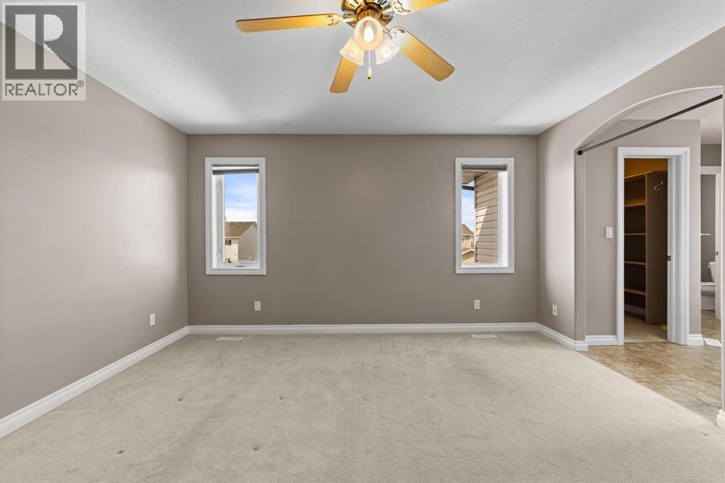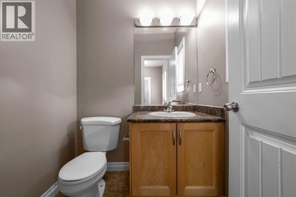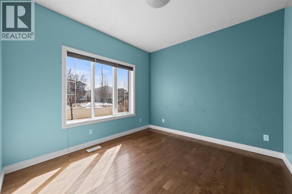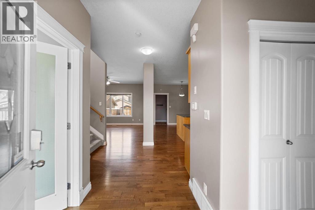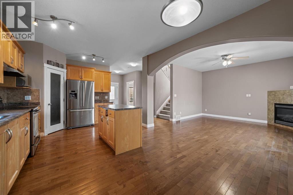 Welcome to this beautifully designed two-storey family home in the highly desirable Valleyview East. Perfectly situated near walking paths, playgrounds, and schools, this home offers an exceptional lifestyle for growing families. Step onto the inviting front porch and into a bright, open-concept main floor featuring a spacious kitchen and dining area with an abundance of counter space and a convenient pantry and island—ideal for everyday living and entertaining. The large family room is warm and welcoming, highlighted by a cozy gas fireplace. A front office or den provides the perfect work-from-home space, while a convenient two-piece bathroom completes the main level. The back entry is thoughtfully designed, offering access to an extra-large heated garage with back alley entry, or step outside onto the deck with durable vinyl railing overlooking the fully fenced backyard and a handy storage shed. Upstairs, you’ll find a generous primary bedroom retreat complete with a walk-in closet and five-piece ensuite featuring a corner jetted tub and separate shower. Two additional bedrooms, convenient upper-level laundry, and extra storage closets make this level as functional as it is comfortable. The fully developed lower level adds even more living space, offering a large open recreation room, an additional bedroom, and a full bathroom with heated floors —perfect for guests or teenagers. Additional features include air conditioning and beautiful hardwood floors throughout. With its unbeatable location and thoughtful layout, this home truly has it all. (id:63190)