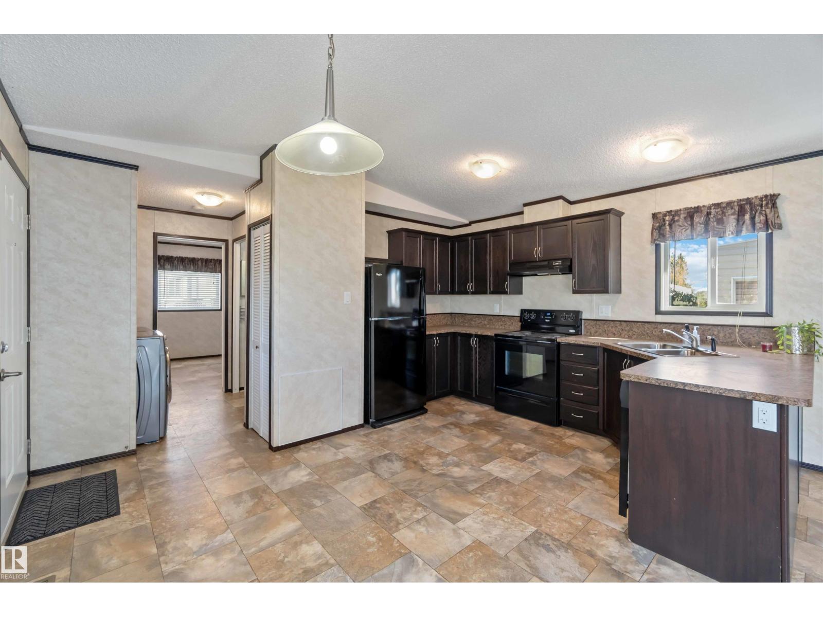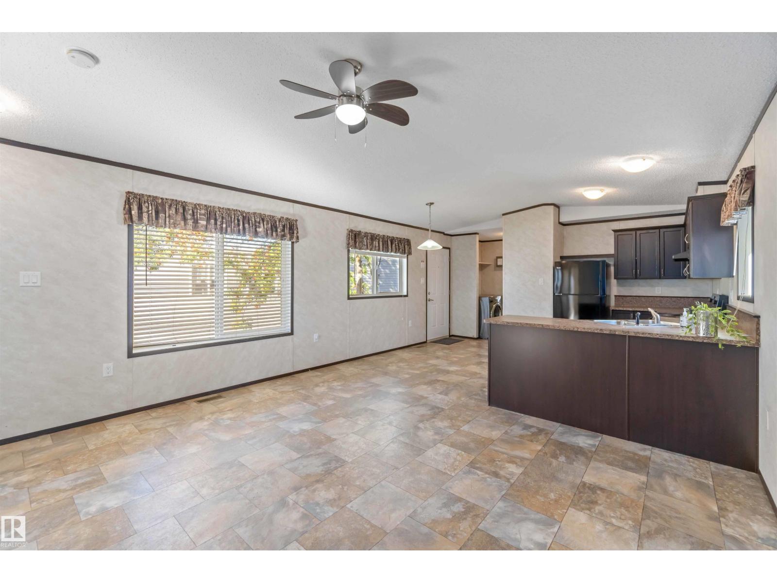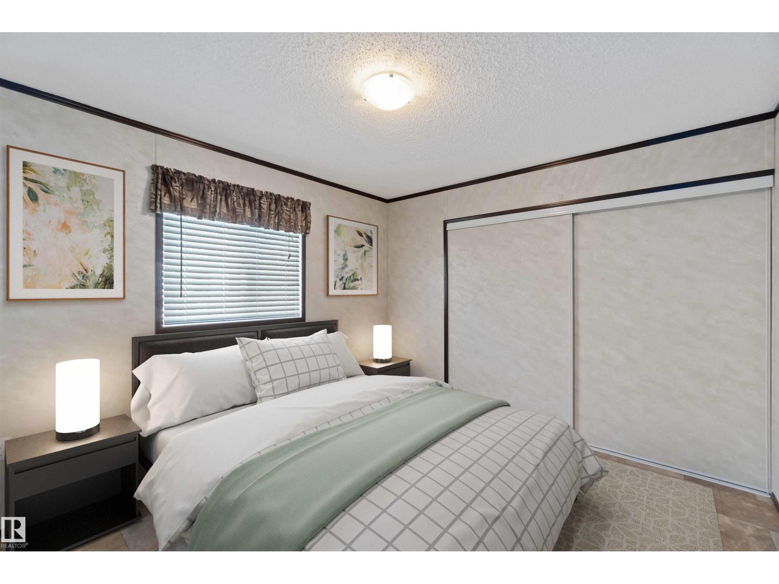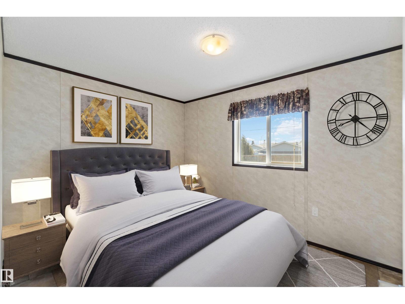 Located in the quiet community of Gibbons, this stunning 2013 16-foot wide mobile home offers 844 sq. ft. of comfortable living space, featuring 2 bedrooms and 1 bath. Better than new, this home comes with vaulted ceilings for an open, airy feel. Recent upgrades include a brand-new side skirt, new heat trace, and two newly installed staircases. Move-in ready—nothing needs to be done! Conveniently close to schools and Main Street, this home is perfect for first-time buyers or those looking to downsize. Some Picture have been virtually Stage . (id:63190)