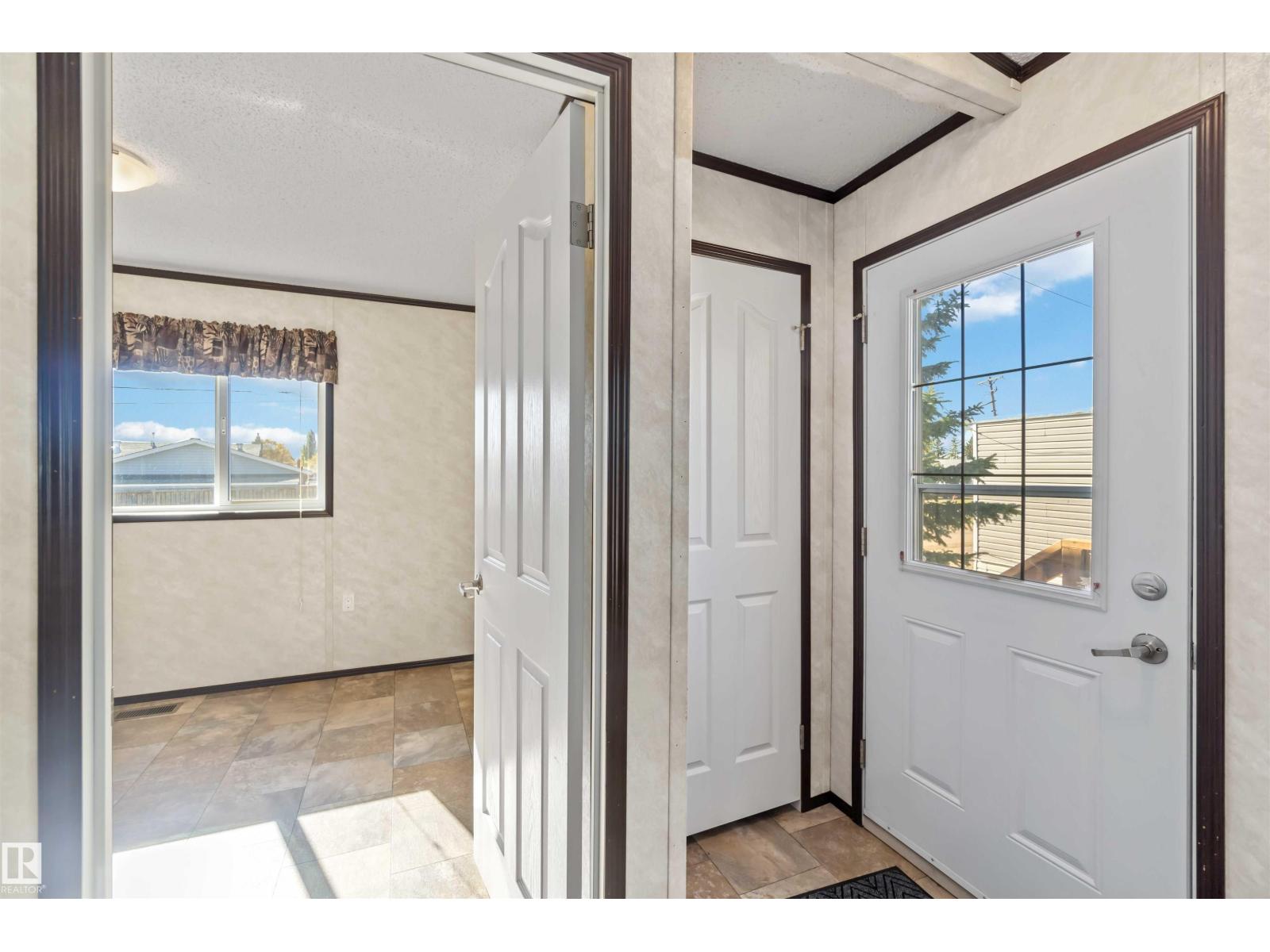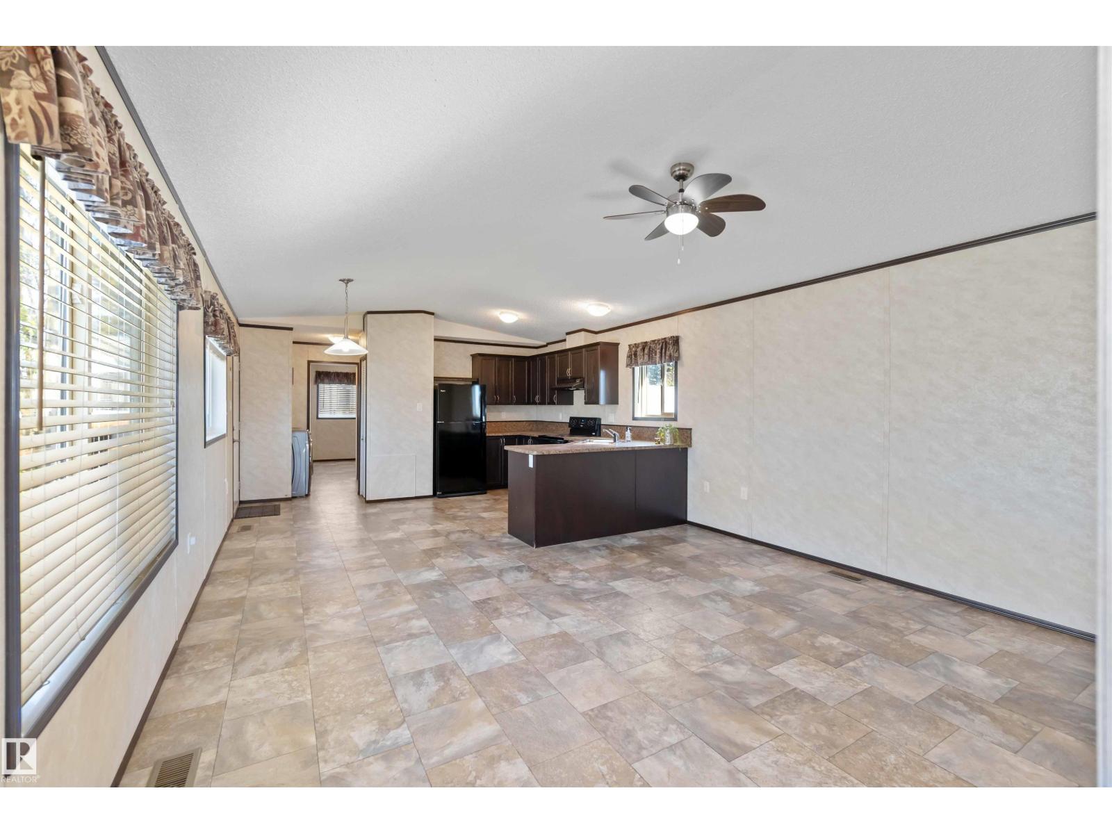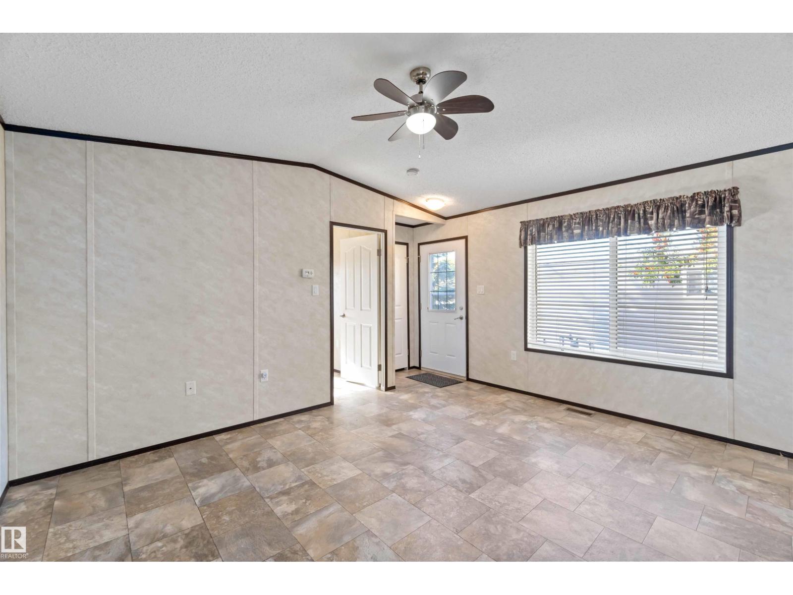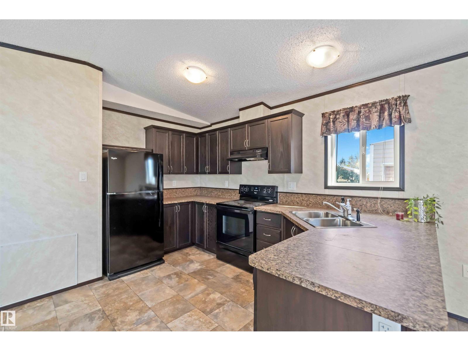 Located in the quiet community of Gibbons, this stunning 2013 16-foot wide mobile home offers 844 sq. ft. of comfortable living space, featuring 2 bedrooms and 1 bath. Better than new, this home comes with vaulted ceilings for an open, airy feel. Recent upgrades include a brand-new side skirt, new heat trace, and two newly installed staircases. Move-in ready—nothing needs to be done! Conveniently close to schools and Main Street, this home is perfect for first-time buyers or those looking to downsize. Some Picture have been virtually Stage . (id:63190)