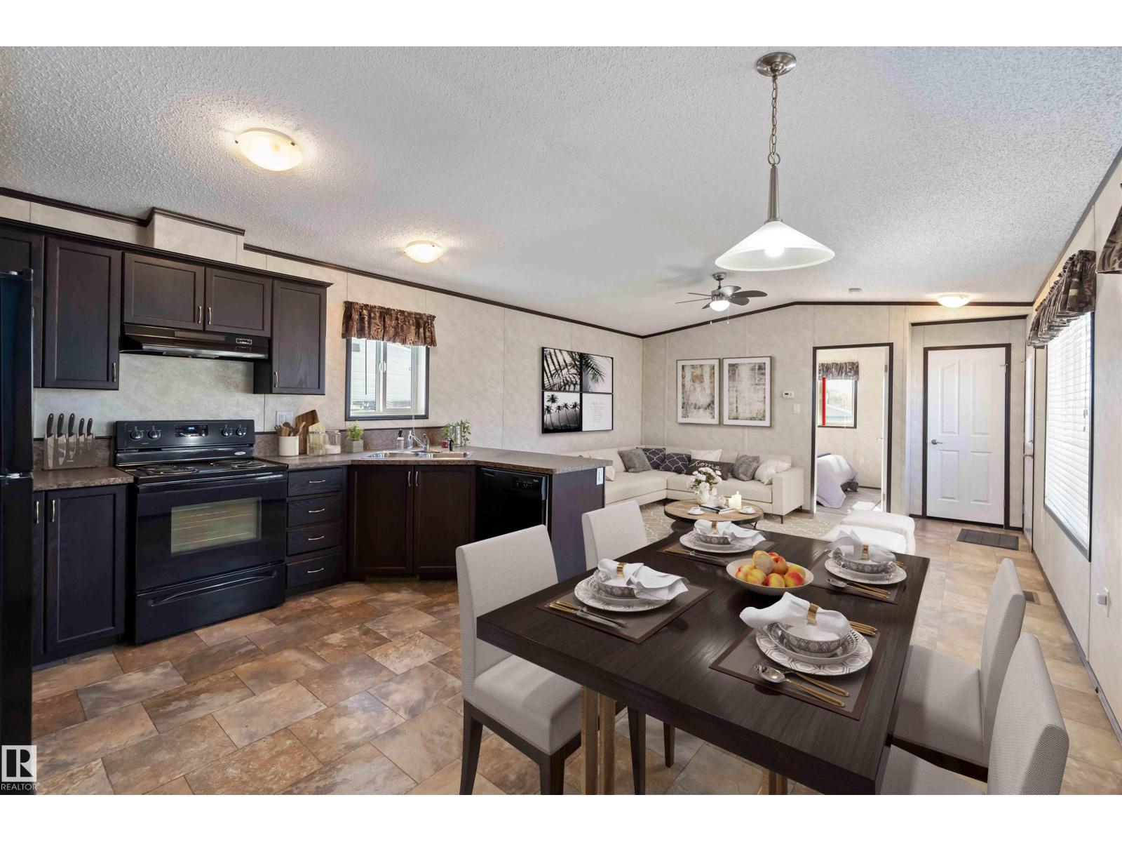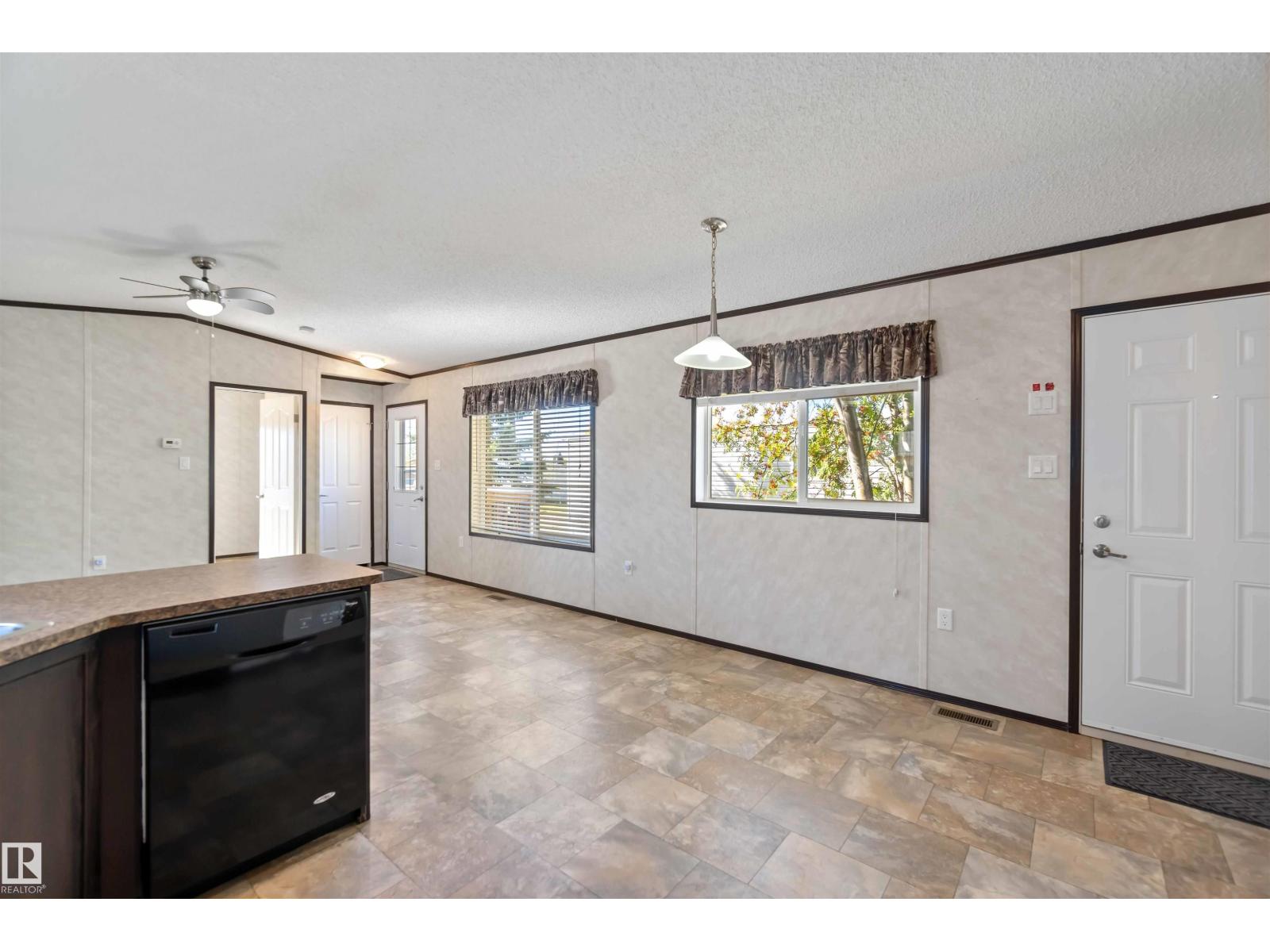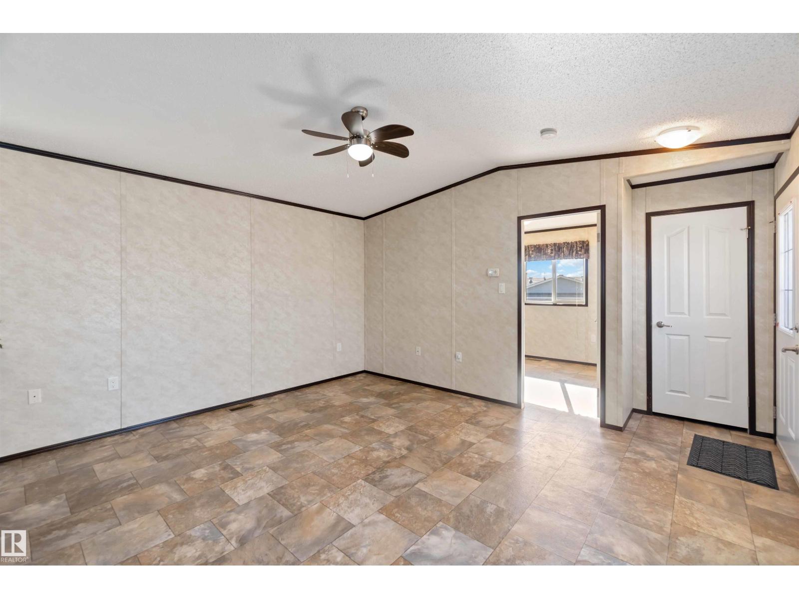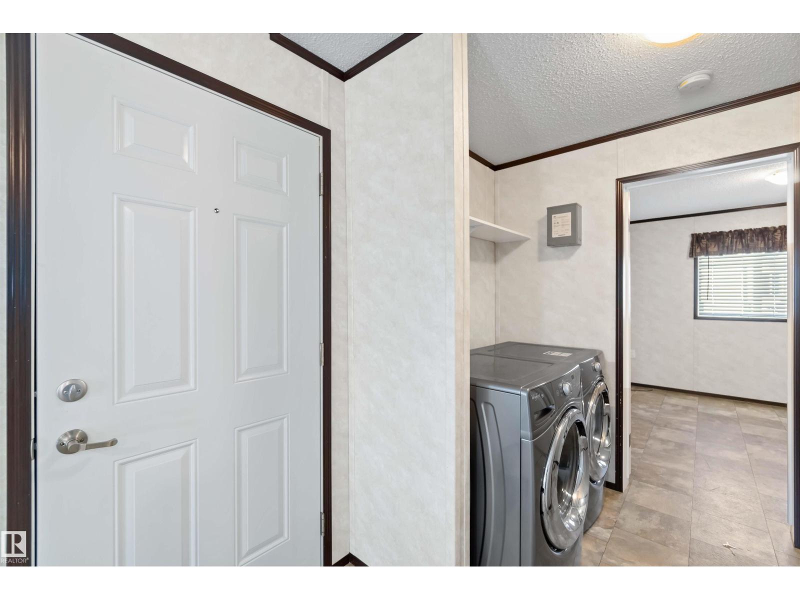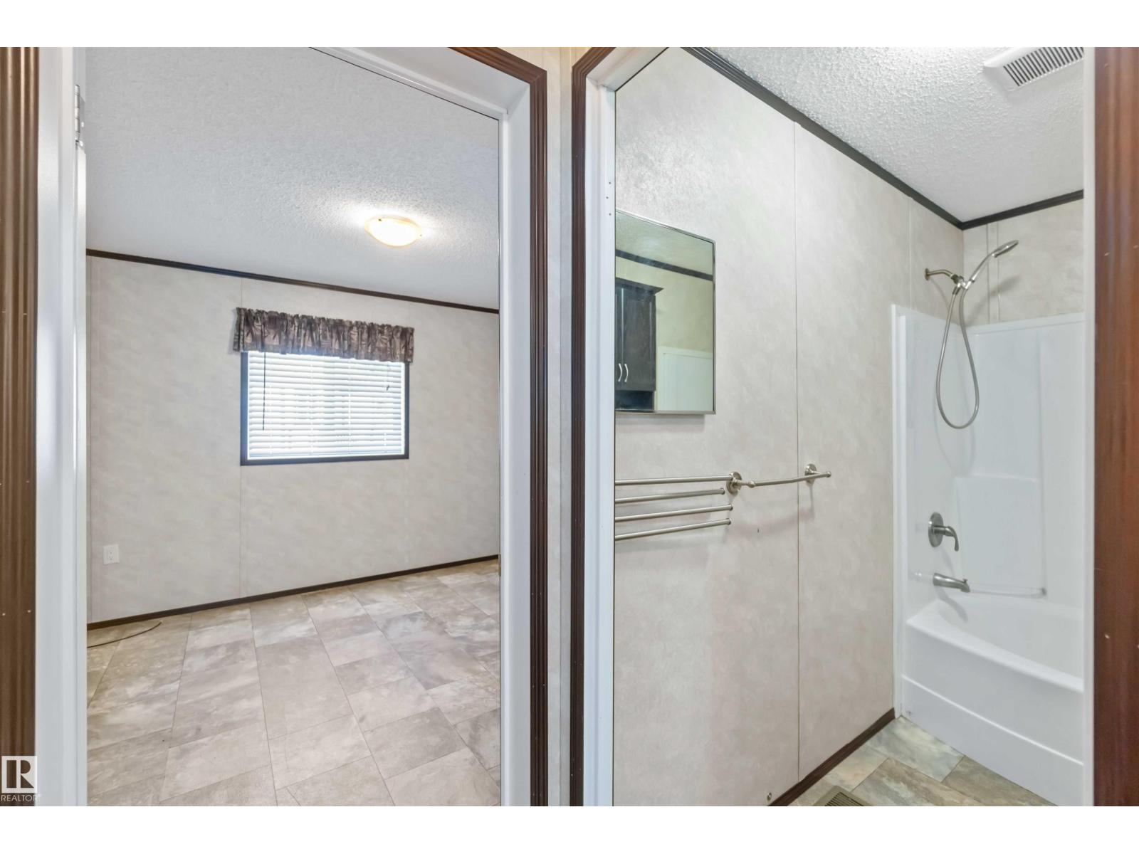 Located in the quiet community of Gibbons, this stunning 2013 16-foot wide mobile home offers 844 sq. ft. of comfortable living space, featuring 2 bedrooms and 1 bath. Better than new, this home comes with vaulted ceilings for an open, airy feel. Recent upgrades include a brand-new side skirt, new heat trace, and two newly installed staircases. Move-in ready—nothing needs to be done! Conveniently close to schools and Main Street, this home is perfect for first-time buyers or those looking to downsize. Some Picture have been virtually Stage . (id:63190)