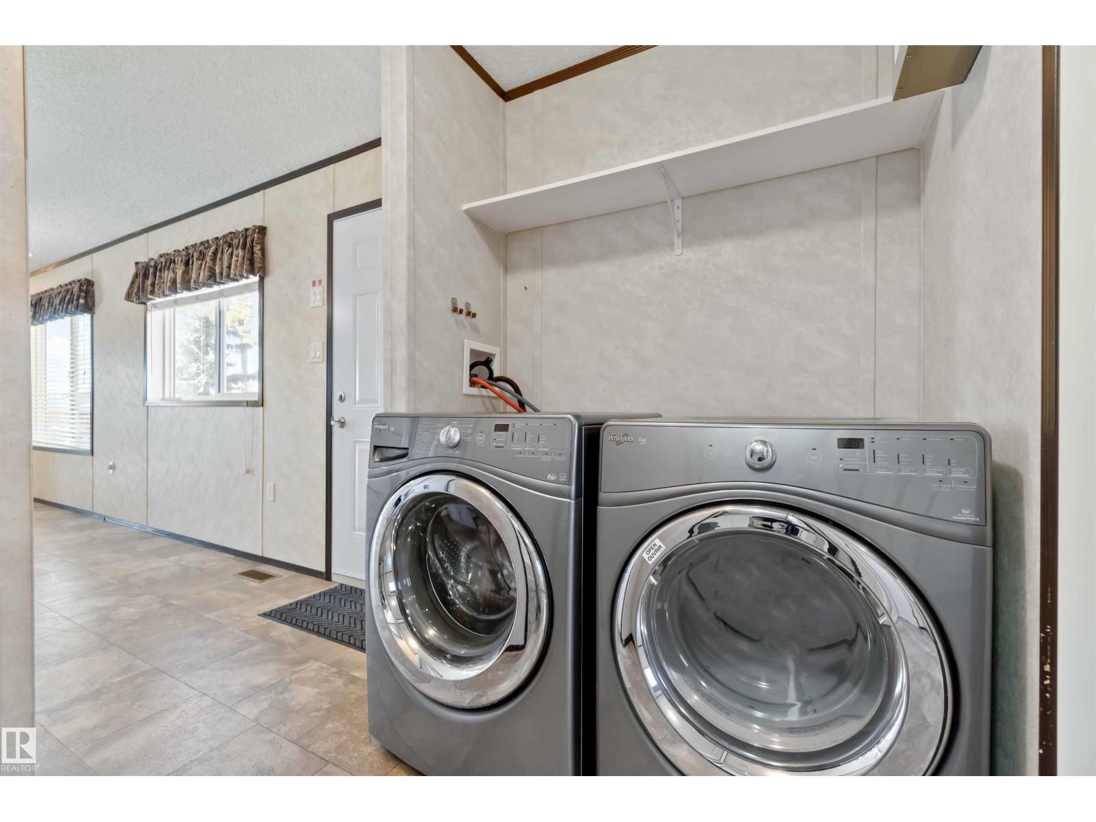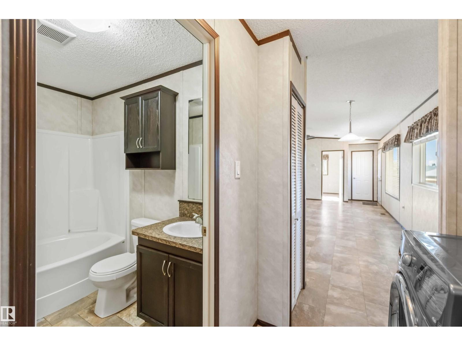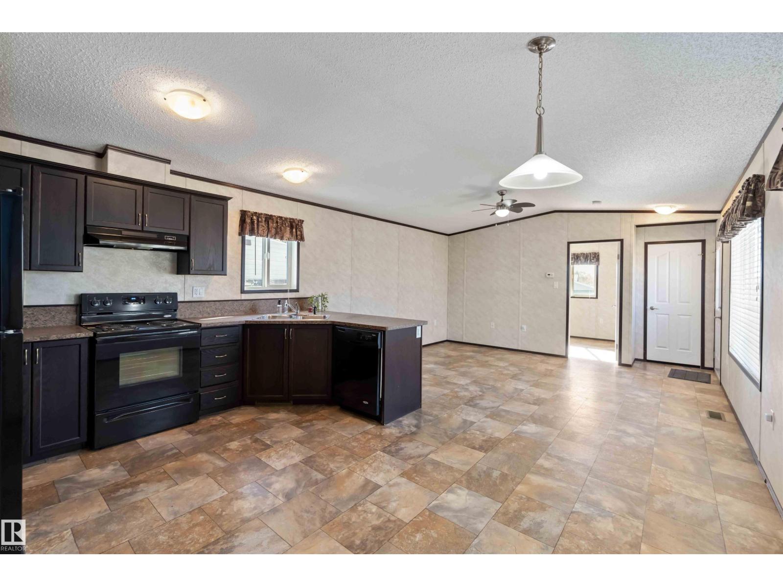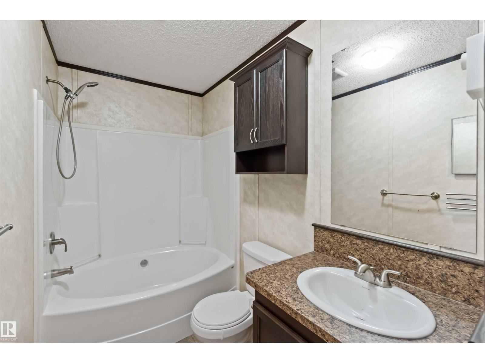 Located in the quiet community of Gibbons, this stunning 2013 16-foot wide mobile home offers 844 sq. ft. of comfortable living space, featuring 2 bedrooms and 1 bath. Better than new, this home comes with vaulted ceilings for an open, airy feel. Recent upgrades include a brand-new side skirt, new heat trace, and two newly installed staircases. Move-in ready—nothing needs to be done! Conveniently close to schools and Main Street, this home is perfect for first-time buyers or those looking to downsize. Some Picture have been virtually Stage . (id:63190)