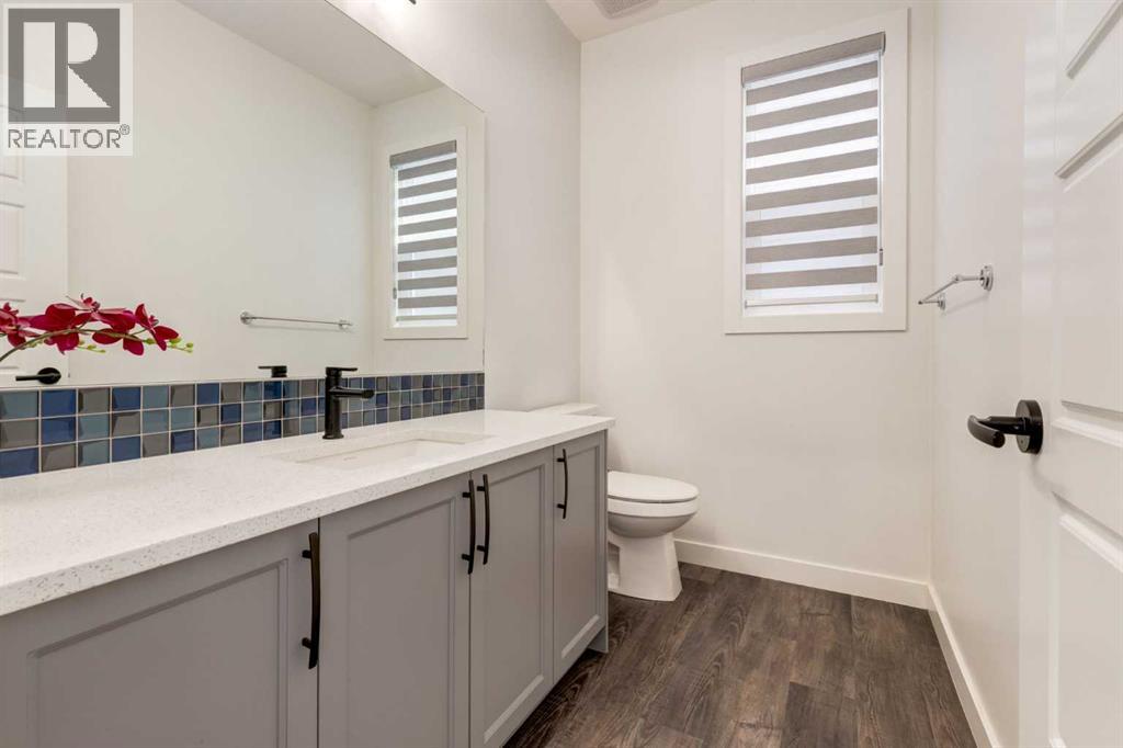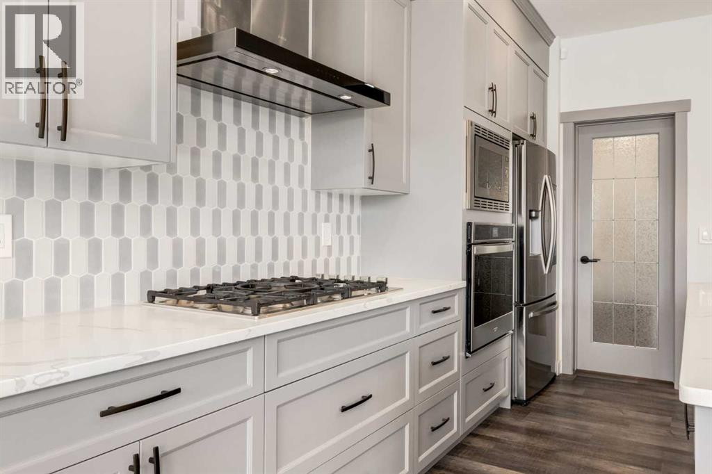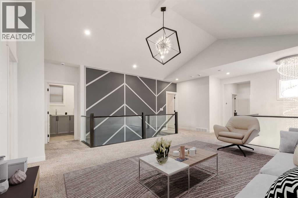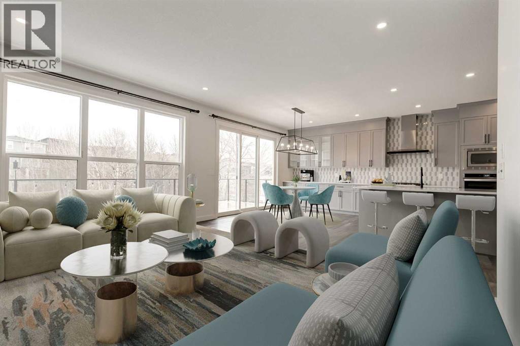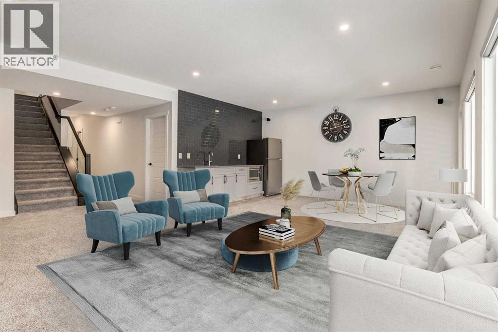 Welcome to your dream home in the heart of Cranston's Riverstone backing onto a forested green belt and pathway leading to the Tree Park. Offering 3,653 SF of developed living space with 3+1 bedroom, 3.5 bathrooms, a walk-out basement and a rare over-sized double garage (20'x25'). Enter into a large foyer with soaring 2 storey height ceilings where the main floor is flooded with natural light from the wall to wall windows. The chef's kitchen features high end stainless steel appliances (including a gas cooktop and a smart refridgerator), large center island with eat bar, quartz countertops, cabinetry extended into dining area and a walk-through pantry. Designer lighting and green space views highlight the dining space with patio sliders that lead to the expansive 28'x12' maintenance free deck encouraging an easy indoor/outdoor lifestyle. The living room also enjoys backyard views and a cozy gas fireplace. A home office, powder room and mud room complete this space. Upstairs you will find a grand vaulted bonus room, conveniently located laundry room and a primary bedroom with walk-in closet and a spa-like ensuite boasting dual vanities, a deep soaker tub and an oversized shower. Both addition bedrooms have walk-in closets and share the 5-piece bathroom. Gather, entertain and unwind in the developed basement with a full service wet bar, family room with a second fireplace and walkout access to the paved and covered 28'x12' patio, 4th bedroom and a 4 piece bathroom. You will LOVE summer entertaining in your maintenance free backyard with artificial turf and dedicated firepit area. Upgrades not be overlooked include central AC, sound proof furnace room with 2 furnaces for dual stage, 5.1 channel home theater wiring, wide internet socket in every room, high-end under lay in basement carpet and painted walls in the garage. Outdoor enthusiasts will love this prime location with miles of riverside pathways, world renowned fishing in the Bow River and community HOA gives ac cess to a private clubhouse with sports courts, spray park, skating rink and playground. Mere minutes to an array of restaurants, shopping, YMCA and Seton Hospital...do not miss this opportunity and book your showing today! (id:63190)