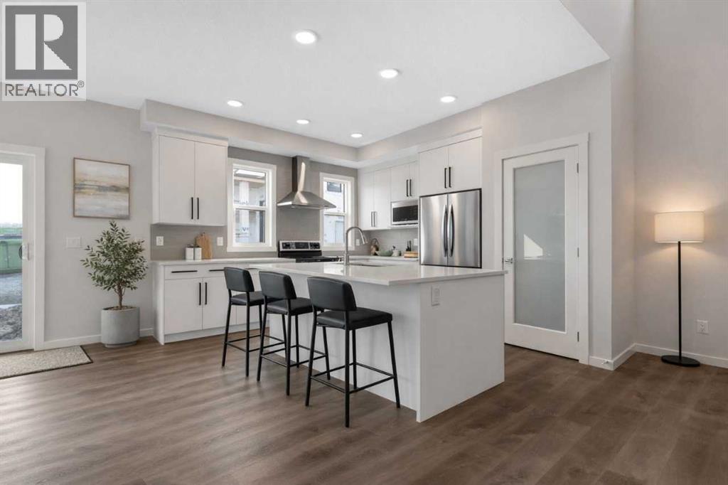 OPEN-TO-ABOVE GREAT ROOM | MAIN FLOOR FLEX | 2-STORY FIREPLACE BOXOUT | 5-PC ENSUITE | ENJOY ENVIRONMENTAL RESERVE LAND. Welcome to the Kiera F — a stunning 2,234 sq ft, 3-bed, 2.5-bath home on a premium CORNER LOT in West Hawk, Cochrane's newest community. Soaring OPEN-TO-ABOVE VAULTED ceilings and extra windows flood every level with natural light. The main floor features 9' ceilings, a 50" electric fireplace, FLEX ROOM, and a chef-inspired kitchen with large island, ceiling-height cabinetry, and soft-close finishes. Upgrades are evident at every turn. Upstairs, a beautiful architectural BRIDGE connects the primary bedroom to the central bonus room. The lavish 5-PC ENSUITE boasts a SOAKER TUB, TILED SHOWER, and DUAL VANITY. SIDE ENTRY, 9' basement foundation, and rough-in bath offer excellent potential future development. Smart Home Technology and high-efficiency mechanical included in the home. Enjoy West Hawk's DOG PARK, PLAYGROUND, and ENVIRONMENTAL RESERVE — all surrounded by stunning mountain scenery. (id:63190)