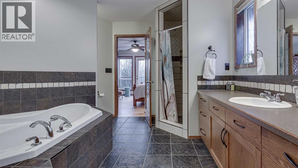 33 Parkside Crescent is a beautifully located and well-constructed walk-out bungalow backing onto a green space. The trail behind the property takes you on a peaceful walk around the pond and to the nearby playground. Recent big-ticket upgrades to the home include new shingles (2023), hardwood on the main floor and stairs (2023), and air conditioning (2024). The welcoming floor plan greets you with a conveniently wide front entrance. The bedroom nearest the entrance has a built in wall-bed. This room can also function perfectly as an inspiring den/workspace with its west-facing window. The kitchen is spacious and loaded with storage space. It includes good-looking stainless steel appliances and a large island/eating bar. The living room, with its gas fireplace, forms the heart of the main floor. The dining area and deck provide pleasing views to the East/Northeast. The primary bedroom is very spacious, as is the 4 piece ensuite (soaker tub and tiled shower) and walk-in closet. A private deck can be accessed from this room as well. A main floor laundry and a 2 piece guest bathroom complete the upper level. The walk-out basement features a sizable family room with space for a ping pong table or, in this current configuration, a sewing and crafts area, a full bathroom, and two large bedrooms. The next owners will undoubtably find a useful function for the third room (no closet) as well. The utility room is well organized and offers additional storage space. Enjoy the stamped concrete patio and fenced, zero maintenance backyard with stone, trees, artificial grass, garden shed, and a small dog run. It's good to have a cozy little covered sitting area at the front of the home as well as the private backyard with gorgeous views. Another special feature of this home is the oversized, heated (in-floor) garage -- big enough to easily park a full size pickup truck and another full sized vehicle. (id:63190)