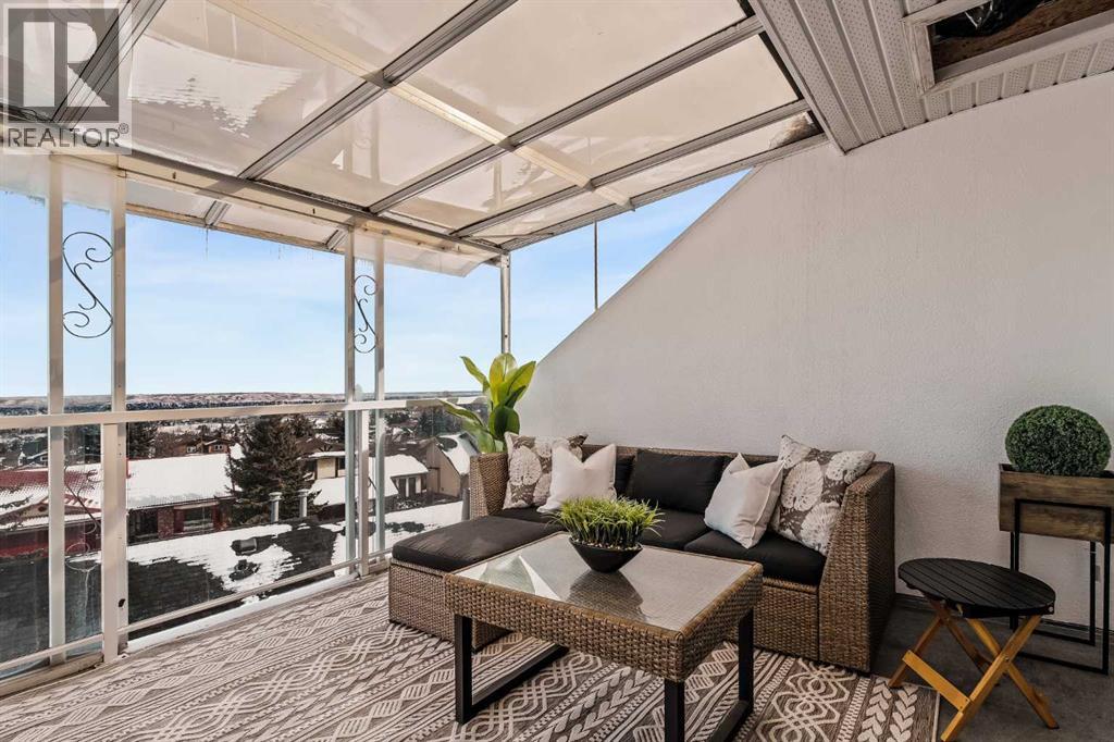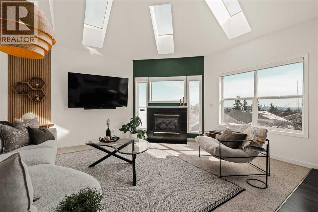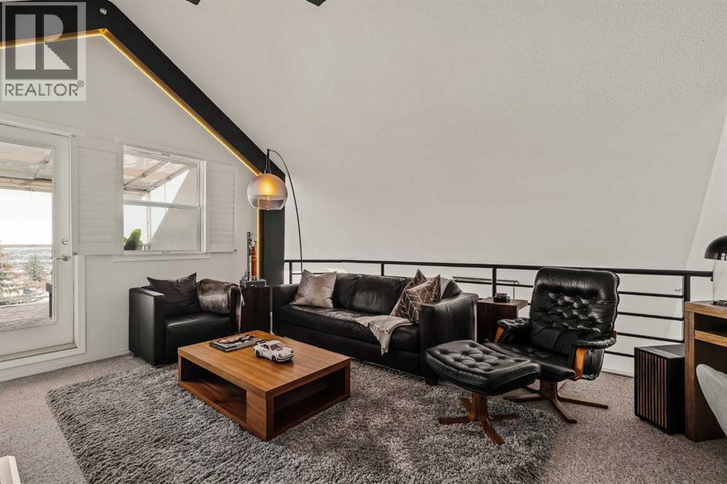 Step inside this Patterson Loft and you can immediately feel the difference. Vaulted ceilings and skylights pull natural light through the entire space, creating an elevated atmosphere that’s hard to replicate. The open concept layout flows effortlessly, anchored by a cozy gas fireplace that adds warmth and intention to the living space. The large dining room allows for a huge table, which makes hosting an easy option for the holidays or game nights. This end-unit penthouse delivers a rare combination of space, light, and uninterrupted city views that genuinely stop you mid-sentence. From sunrise to the evening skyline, this home frames Calgary like a living piece of art—whether you're in the main living area or unwinding in the sunroom, the view is always the main event. With 2 bedrooms, 2 full bathrooms and in suite laundry there’s nothing this condo doesn’t offer! Then there’s the feature that really sets this home apart:A loft space overlooking the main floor—perfect as a home office, creative studio, guest zone, or elevated lounge. It adds that architectural edge and character that can be difficult to find. ?There are two separate entrances one on each level which is an extremely practical solution for moving furniture or hosting guests who can’t do stairs! Off of your loft is a large storage/utility room, and the enclosed sunroom extends your living space (professionally approved and the ONLY one in the building). Morning coffee, evening wine, or even watching fireworks over the city… it’s all better from here. Plus, you have a BBQ gas hookup, making it as functional as it is inviting. With 2 Titled underground parking spots, Visitor parking and the ability to rent a spot outside, it is easy to have guests. And location? Patterson is one of Calgary’s best-kept secrets—quiet, elevated, and just minutes to downtown via Old Banff Coach Road, giving you the perfect balance of convenience and escape. (id:63190)