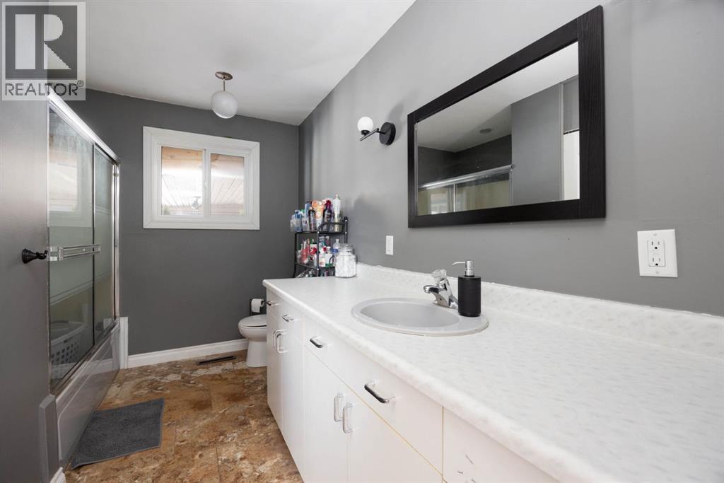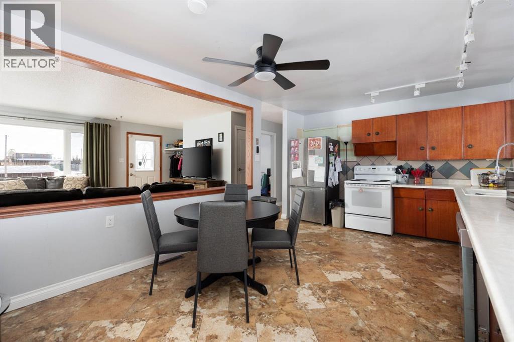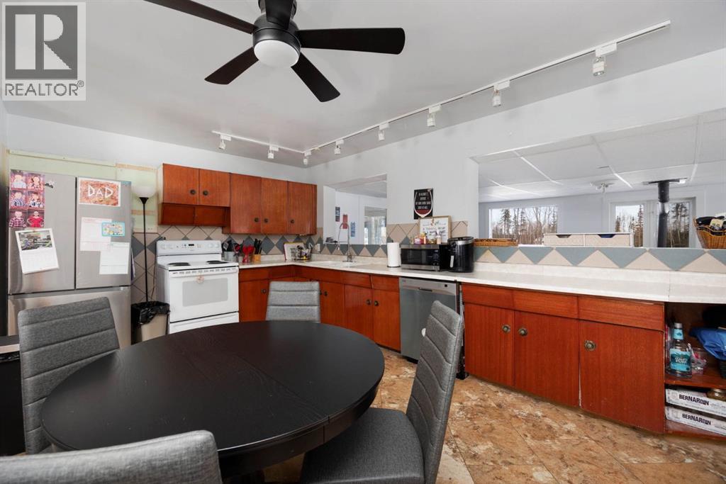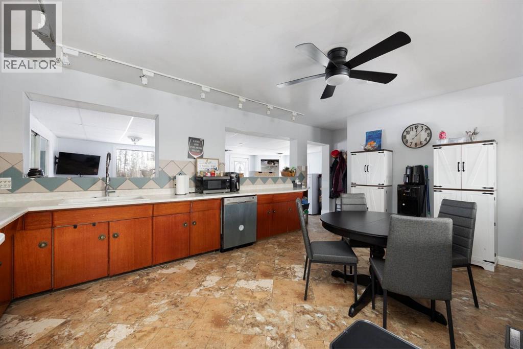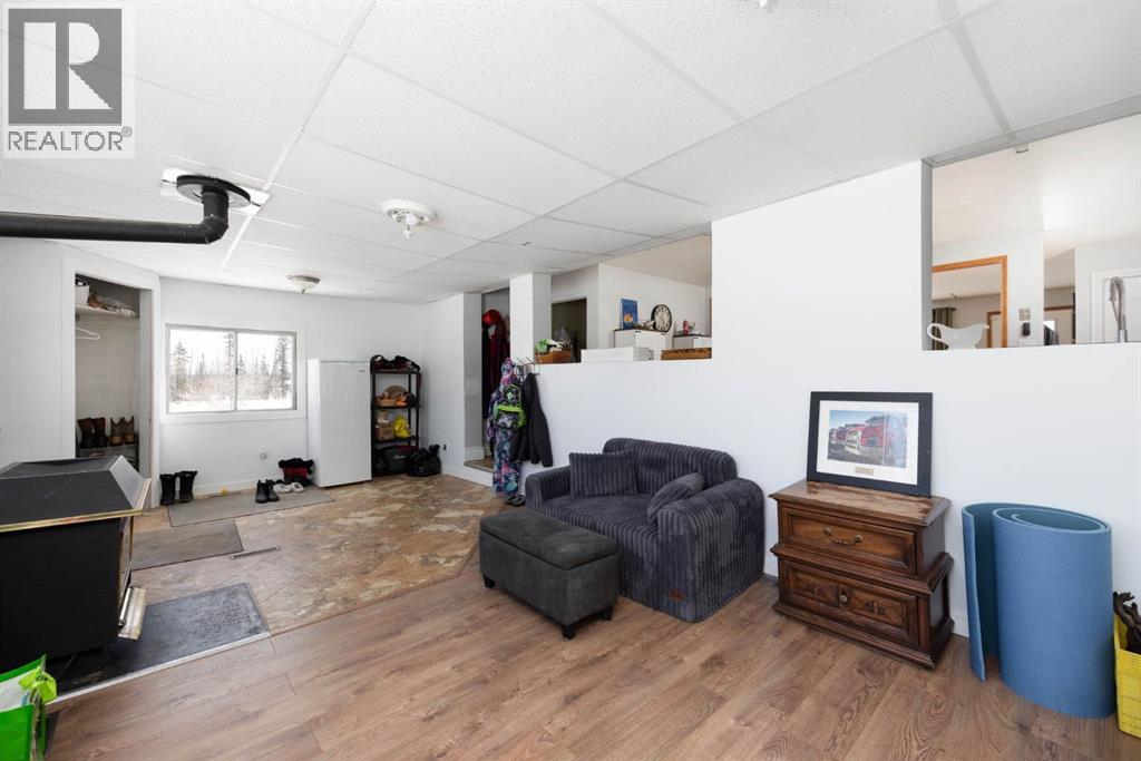 Welcome to this charming and versatile bungalow situated on 1.1 acres in the heart of Anzac! Set on a desirable corner lot, this property offers a massive driveway and a triple detached heated garage -perfect for vehicles, toys, and workshop space. Inside, you’ll find 4 bedrooms and 2 full bathrooms, making it an ideal home for families. The spacious eat-in kitchen provides plenty of room for gathering and everyday living, while the living room is filled with bright natural light and complemented by beautiful hardwood flooring. The layout also includes a bonus area featuring a cozy gas stove, currently used as a playroom, which flows seamlessly into a sunroom complete with a hot tub - your own private retreat year-round. Step outside to enjoy the large deck, perfect for entertaining or relaxing while taking in the surrounding space and privacy. The basement is partially finished with a bedroom and 3pc bathroom started, ready for you to finish with your creative ideas. Recent updates provide peace of mind and modern comfort, including new flooring in the playroom and bedrooms, a new dishwasher (2024), new fridge (2025), and a newer furnace installed within the last few years. The home features durable metal roofing, while the garage has asphalt shingles replaced in 2024. Windows were updated in 2010. The garage is also roughed in for in-floor heat. Located within walking distance to local amenities and the school, this property offers the perfect blend of space, functionality, and convenience. Schedule your private showing today! (id:63190)