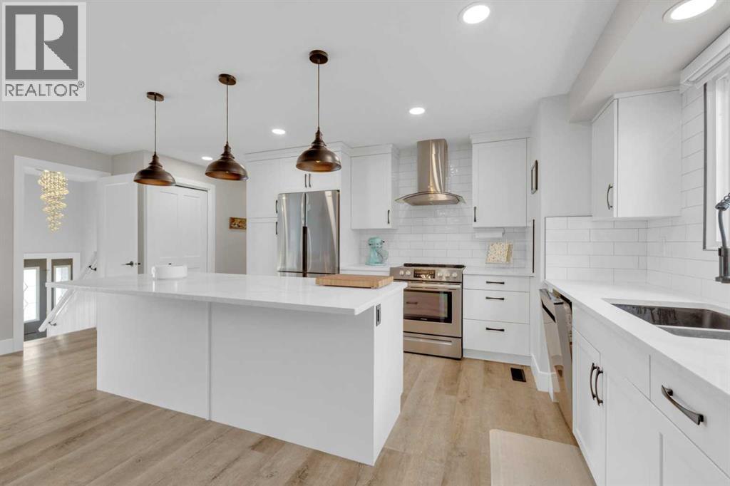 Six bedrooms. Two full levels of living. A stunning renovated kitchen. And a heated garage that serious buyers will actually get excited about. That's the short version. Here's why it matters. Renovated in 2021 with real intention, this Clearview home delivers the kind of layout that almost never comes together in one package. The main floor is bright and welcoming, with luxury vinyl plank, soft pot lighting, and a custom kitchen that anchors the whole space. Quartz countertops, a black granite sink, stainless steel appliances, and a subway tile backsplash come together in a room that's as functional as it is good-looking. This will be the heart of the home. Garden doors lead to a generous deck with a gas hookup, perfect for every season. Three bedrooms upstairs including a primary retreat with its own 3-piece ensuite. The main full bathroom is stylish and bright. Downstairs, the fully finished basement runs its own program entirely: three additional bedrooms, a second full bathroom, a spacious family room, fully functional second kitchen or entertainment area, its own laundry, and a layout that functions for family or guests to have their own zone. The flexibility here is genuinely rare, but then add an oversized, 28x24, heated garage with floor drain, air hose and expansive built-in workspace. In Red Deer, a garage like this is a selling feature all on its own. Outside, an Augusta-like golf course groomed yard with room for RV parking, mature landscaping, and a neighbourhood close to parks, trails, schools, and everyday amenities that has been earning its reputation for decades. This is the one buyers regret missing out on for so book your showing before it's someone else's story to tell. (id:63190)